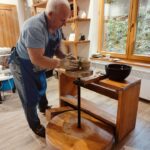 W Chacie Garncarza gości powitała Pani Teresa Badowska – Z-ca Dyrektora Samorządowego Centrum Kultury i Biblioteki w Morawicy. Na początek została wyświetlona prezentacja dot. powstania i działalności Ośrodka Tradycji Garncarstwa oraz film archiwalny z Muzeum Etnograficznego w Warszawie nagrany w latach 70-tych ubiegłego wieku w ówczesnych warsztatach garncarskich w Chałupkach. Po prezentacji i słodkim poczęstunku odbył się pokaz tradycyjnego toczenia na kole, a następnie pod okiem instruktora – Pana Mariana Kozłowskiego goście mogli spróbować swoich sił przy kole garncarskim. Następnie delegacja udała się do Muzeum Garncarstwa, gdzie Kustosz – Pan Michał Bochenek zaprezentował wnętrze autentycznego warsztatu garncarskiego oraz opowiedział o zgromadzonych eksponatach i tradycjach garncarskich regionu. Na pamiątkę wizyty w Chałupkach uczestnicy warsztatów otrzymali pamiątkowe magnesy wykonane własnoręcznie przez pracowników Centrum Kultury w Morawicy.