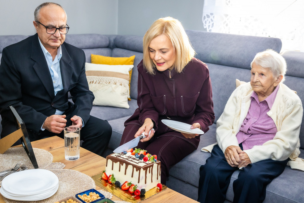 Podczas serdecznego spotkania marszałek złożyła Jubilatce najpiękniejsze życzenia zdrowia, spokoju i kolejnych lat przeżytych w gronie najbliższych. Na pamiątkę tego wyjątkowego dnia przekazała okolicznościowy upominek oraz urodzinowy tort, podkreślając rangę pięknego jubileuszu. Spotkanie upłynęło w ciepłej, rodzinnej atmosferze, pełnej wzruszeń i uśmiechów. Tak niezwykłe jubileusze są nie tylko powodem do dumy dla rodziny, ale także symbolem szacunku dla długiego życia, doświadczenia i historii, które budują wspólnotę.