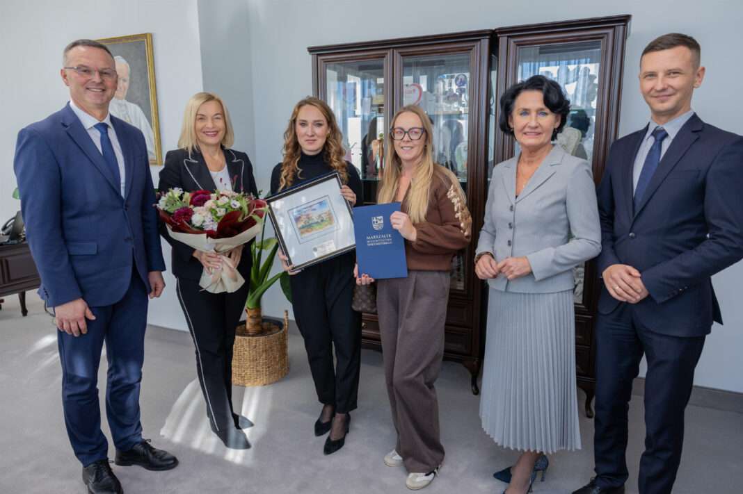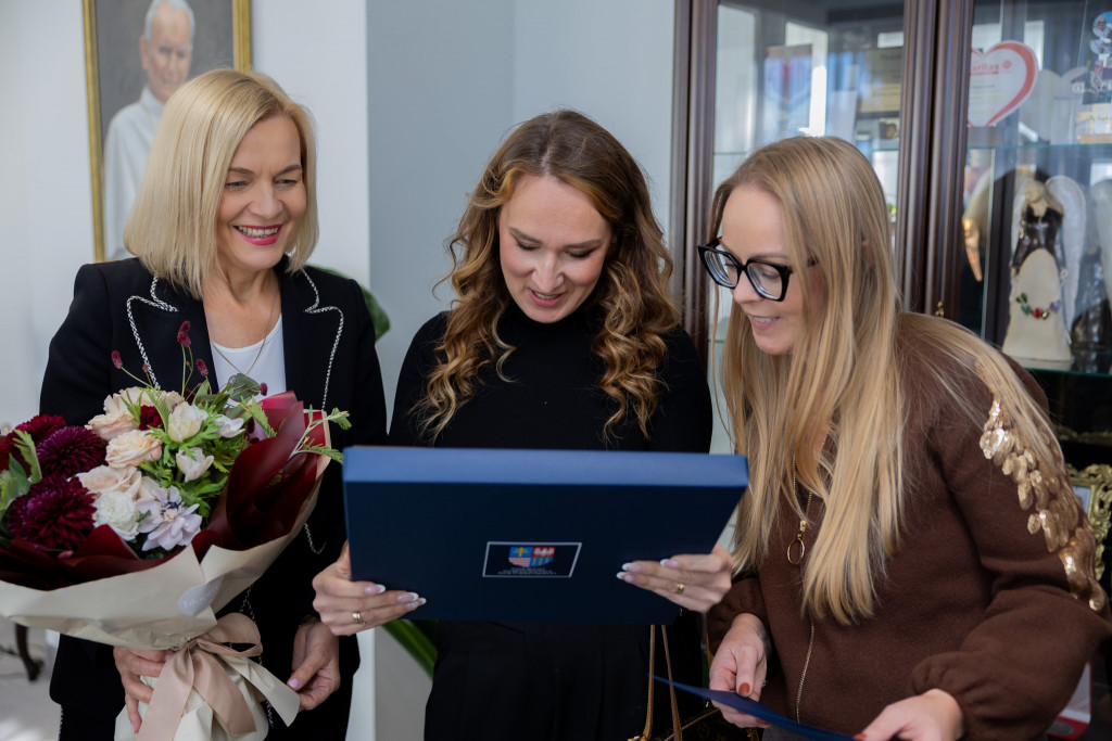 Podczas rozmowy Marszałek pogratulowała Pani Prezes wyboru na funkcję Prezesa Zarządu Głównego Krajowego Towarzystwa Autyzmu, podkreślając ogromne znaczenie działań podejmowanych przez KTA na rzecz osób ze spektrum autyzmu. Z tej okazji wręczyła także symboliczny upominek – wyraz uznania dla wieloletniej pracy, poświęcenia i serca wkładanego w tworzenie przestrzeni wsparcia dla dzieci, młodzieży i dorosłych.