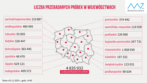 Ciągle rośnie liczba przebadanych próbek na koronawirusa. Z danych Ministerstwa Zdrowia z 2 października 2020 roku wynika, że województwie świętokrzyskim wykonano 123 031 testów. Niekwestionowanym liderem w liczbie przebadanych próbek w regionie jest laboratorium w Regionalnym Centrum Naukowo-Technologicznym w Podzamczu.