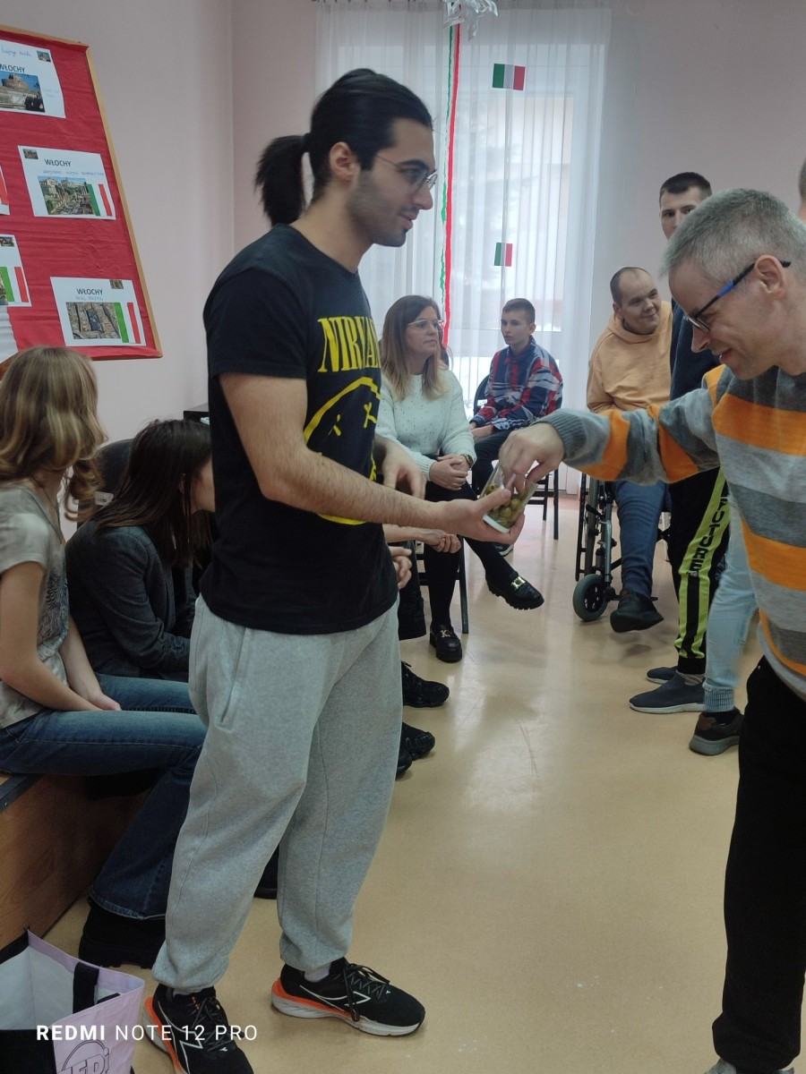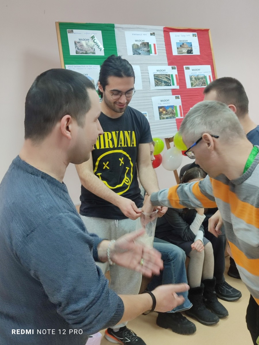 Ubiegły tydzień, w DPS Zgórsko upłynął we włoskim klimacie. To był dzień pełen muzyki, radości i fantastycznej zabawy. Placówkę odwiedzili przedstawiciele Samorządu Uczniowskiego ze Szkoły Podstawowej w Kowali, a gościem specjalnym był Francesco – Włoch, który przebywa w Polsce jako wolontariusz. Wszyscy próbowali wspaniałej pizzy, tradycyjnej babki panettone, a degustacji towarzyszyło mnóstwo uśmiechu. Francesco opowiadał o słonecznej Italii i uczył podstawowych zwrotów w swoim języku.