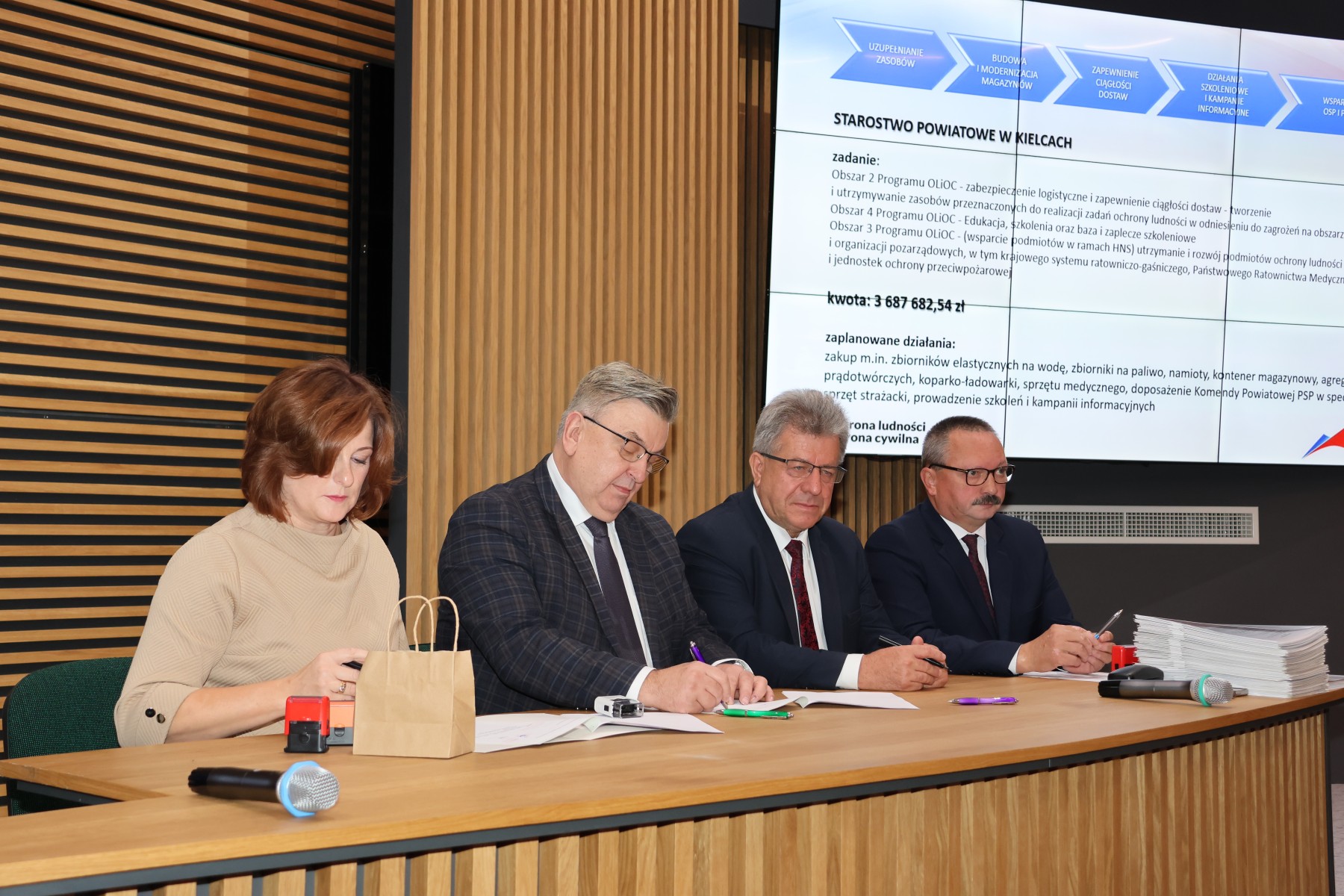 Prawie 3,7 mln złotych trafi do powiatu Kieleckiego na działania związane z realizacją ustawy o ochronie ludności i obronie cywilnej. Starosta Kielecki Tomasz Pleban i Skarbnik Powiatu Edyta Drążkiewicz podpisali dziś z wojewodą Józefem Brykiem umowę na przekazanie dofinansowania.