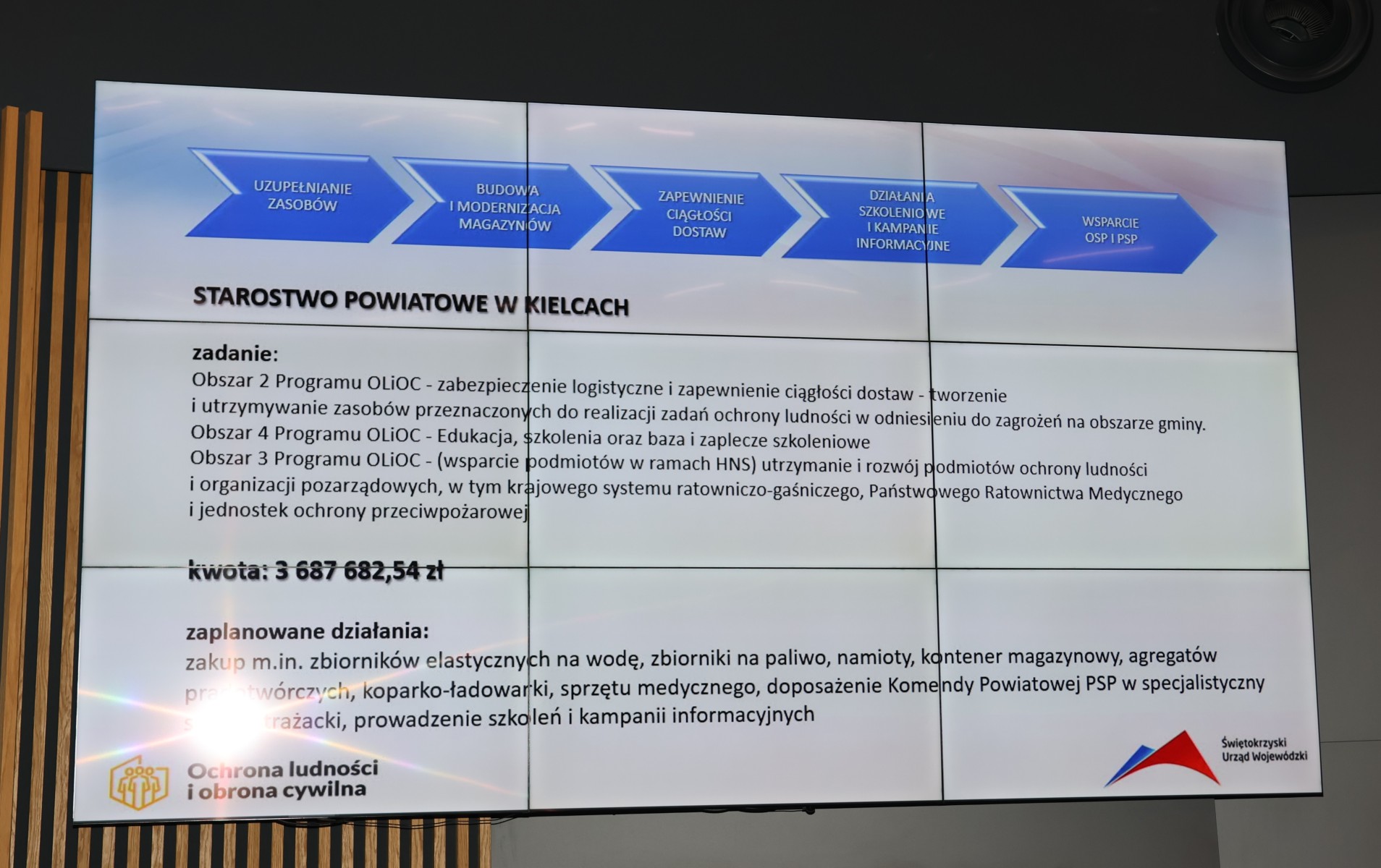Pieniądze zostaną przeznaczone na zakupy sprzętu, służącego wsparciu mieszkańców w czasie sytuacji kryzysowych i szkolenia dla pracowników Obrony Cywilnej.