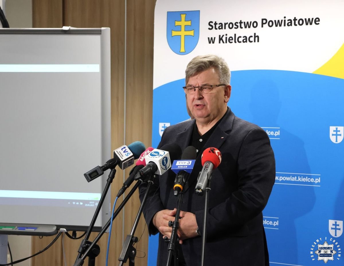Dzisiaj w Starostwie Powiatowym w Kielcach odbyła się konferencja prasowa inaugurująca nowy spot profilaktyczny dotyczący bezpiecznego korzystania z hulajnóg elektrycznych. W wydarzeniu udział wzięli Starosta Powiatu Kieleckiego Pan Tomasz Pleban oraz Zastępca Komendanta Miejskiego Policji w Kielcach – mł. insp. Grzegorz Lotko.