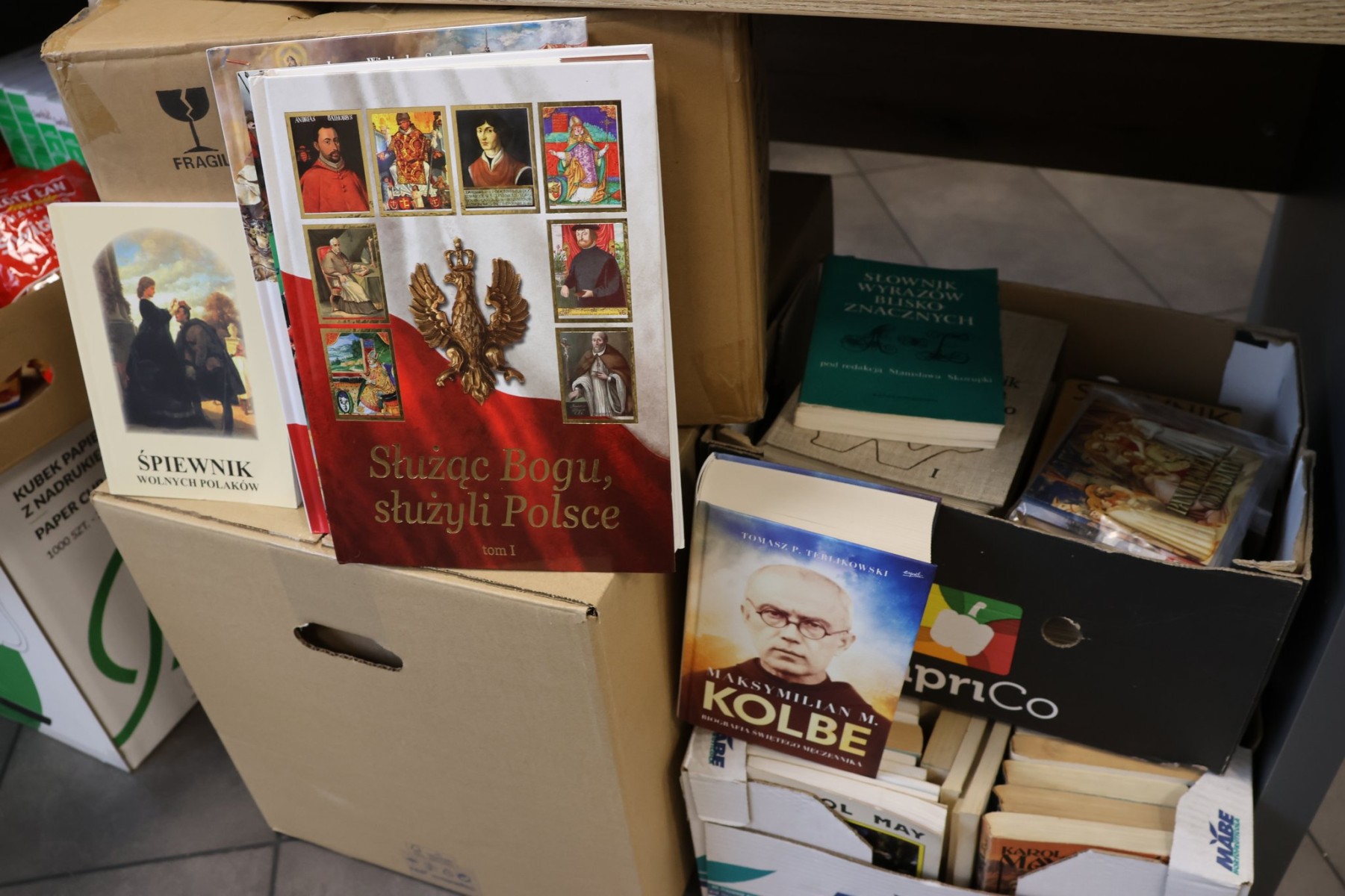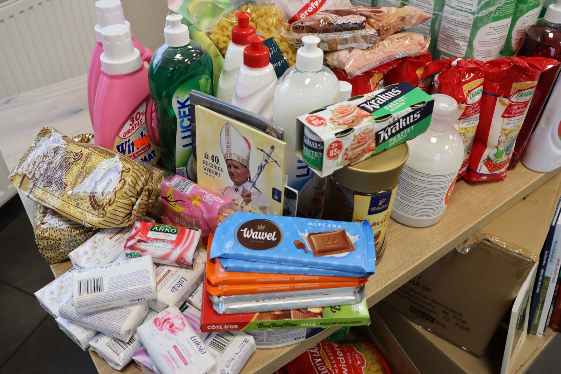 Dziękujemy za dary: artykuły spożywcze, artykuły chemiczne oraz książki, które w imieniu Zarządu Powiatu w Kielcach przyjął Mirosław Gębski.