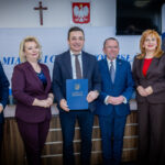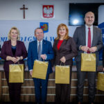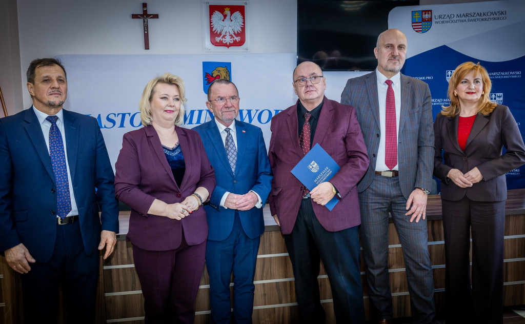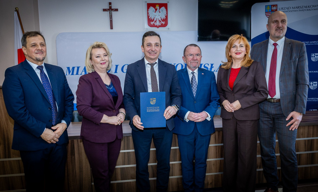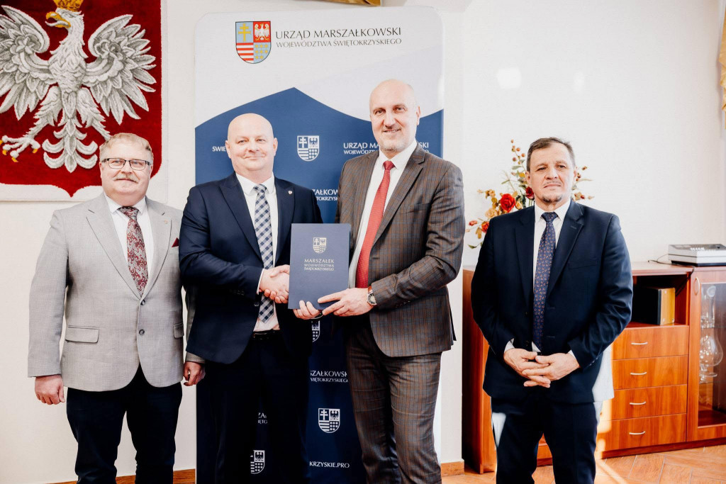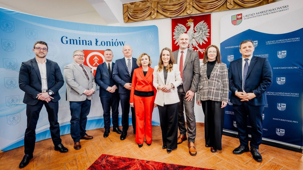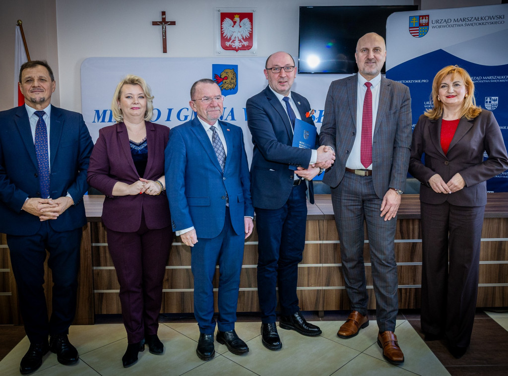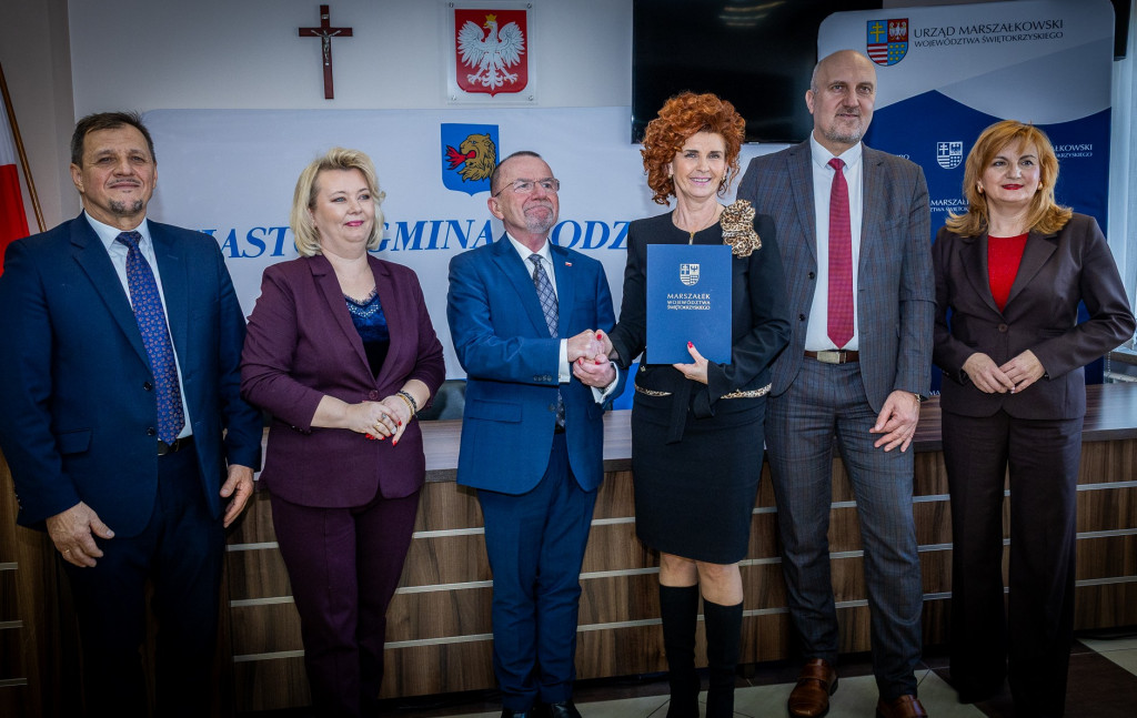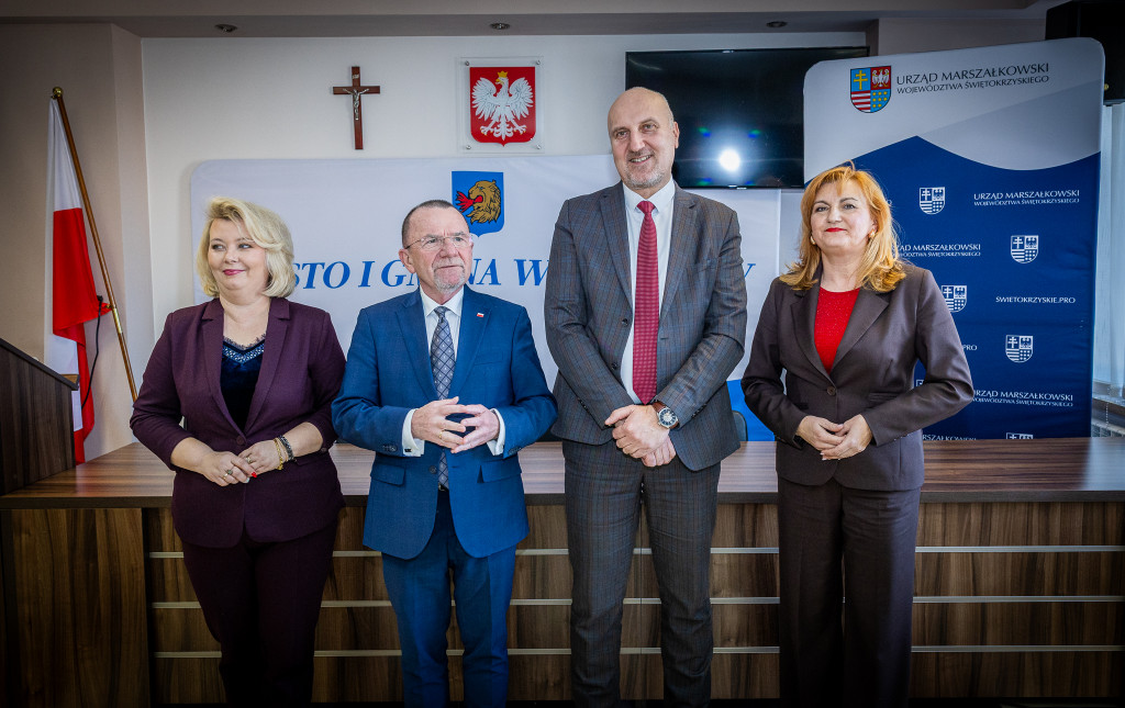 Inwestycje w nowoczesną infrastrukturę wodno-ściekową w regionie nabierają tempa. Wicemarszałek Grzegorz Socha, wicemarszałek Marek Bogusławski, członek Zarządu Anita Koniusz oraz radna Sejmiku Małgorzata Krzywda przekazali w Wodzisławiu umowy na dofinansowanie projektów inwestycyjnych. To efekt zwiększenia puli środków dla województwa świętokrzyskiego w ramach wsparcia dla terenów wiejskich, dzięki któremu siedem gmin zrealizuje kluczowe zadania wodociągowe i kanalizacyjne (Inwestycja B3.1.1 KPO „Inwestycje w zrównoważoną gospodarkę wodno-ściekową na terenach wiejskich”). Wicemarszałek Grzegorz Socha i radny Sejmiku Paweł Krakowiak w Łoniowie przekazali także umowy włodarzom kolejnych gmin.