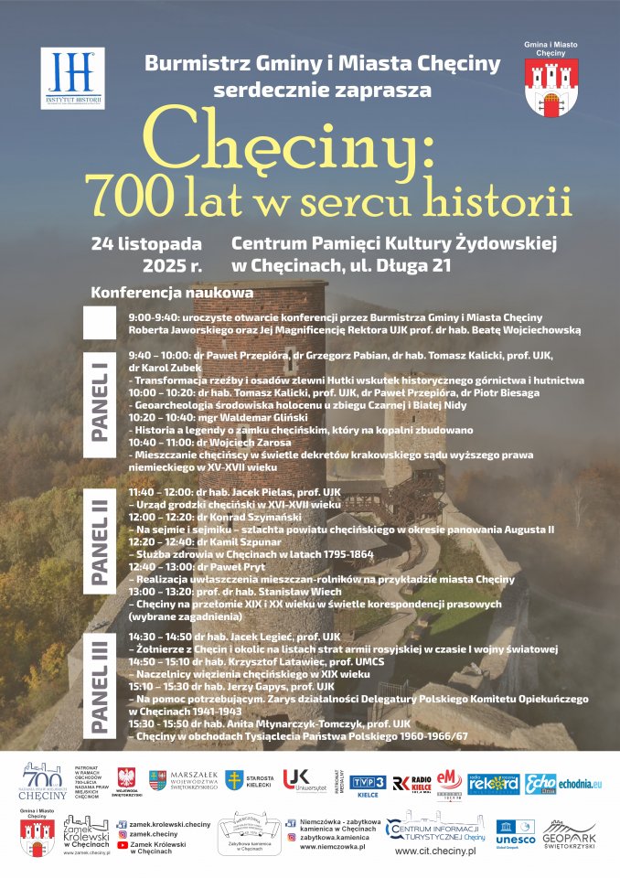 Już 24 listopada 2025 r. w Centrum Pamięci Kultury Żydowskiej w Chęcinach odbędzie się konferencja naukowa „Chęciny: 700 lat w sercu historii”. To całodniowe spotkanie z pasjonującą przeszłością miasta, które od wieków inspiruje badaczy, podróżników i miłośników dziejów.