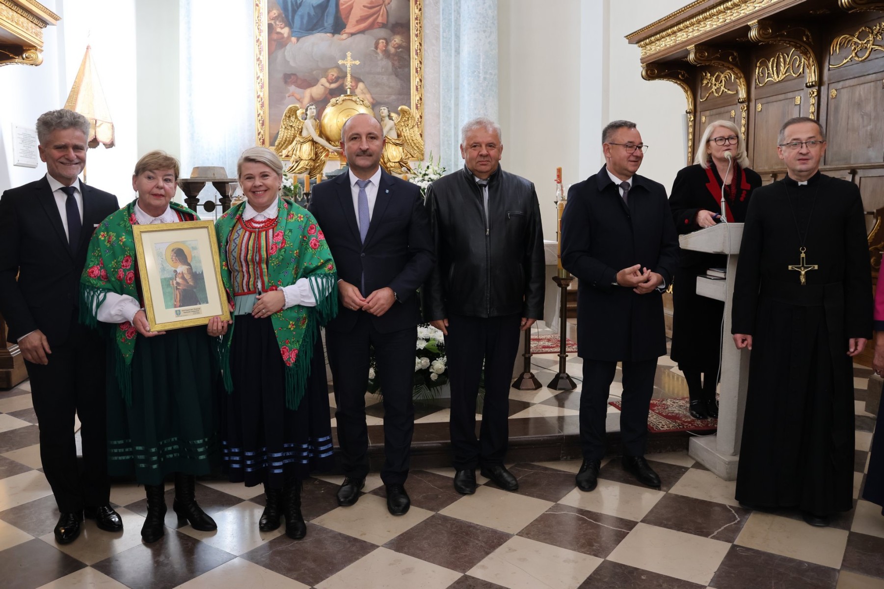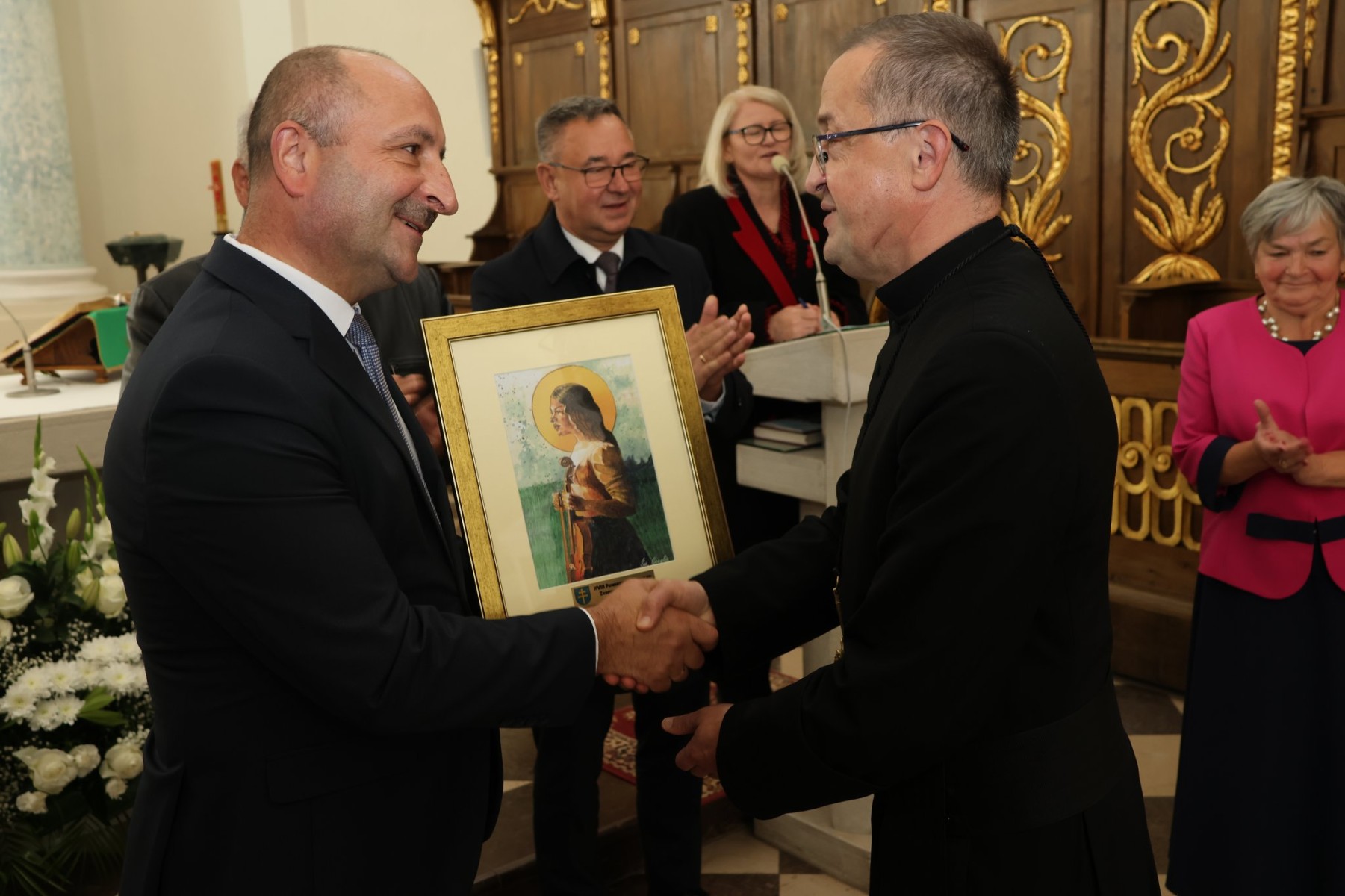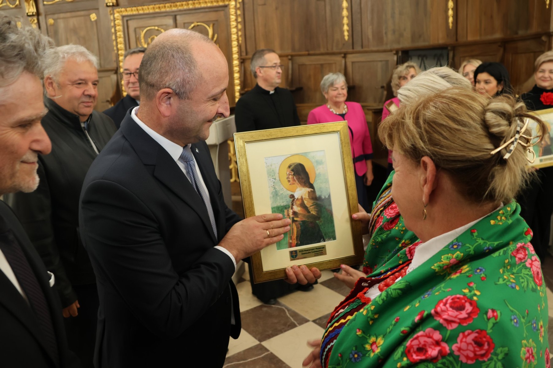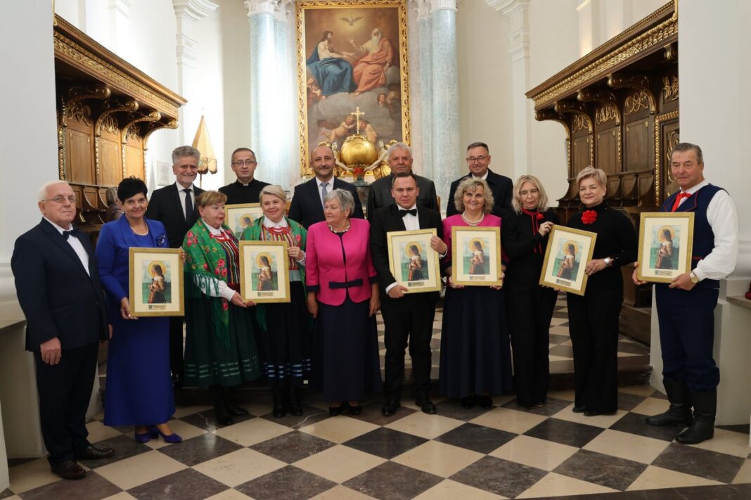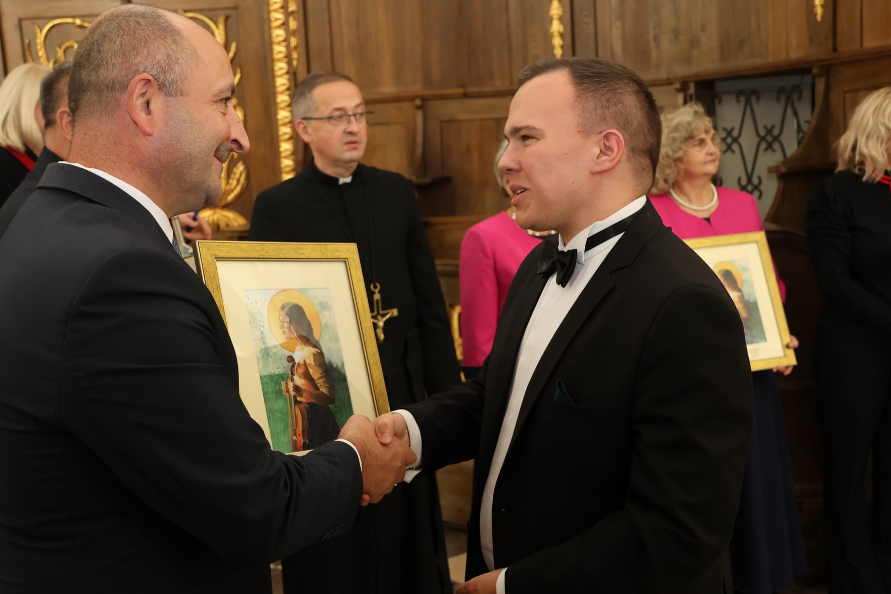 Na zakończenie przeglądu Mariusz Ściana, Senator Krzysztof Słoń, o. Józef Wcisło OMI, radny powiatowy Bogdan Gierada oraz wójt Sławomir Kopacz wręczyli wszystkim uczestnikom obrazy Świętej Cecylii, patronki muzyki kościelnej i chóralnej.