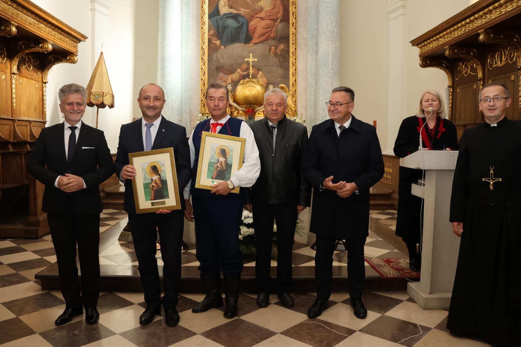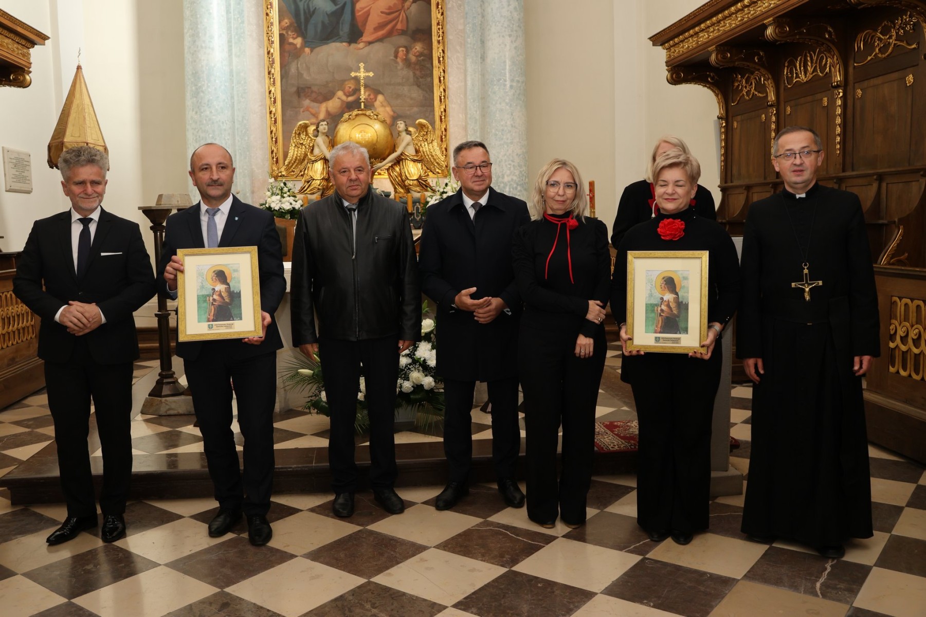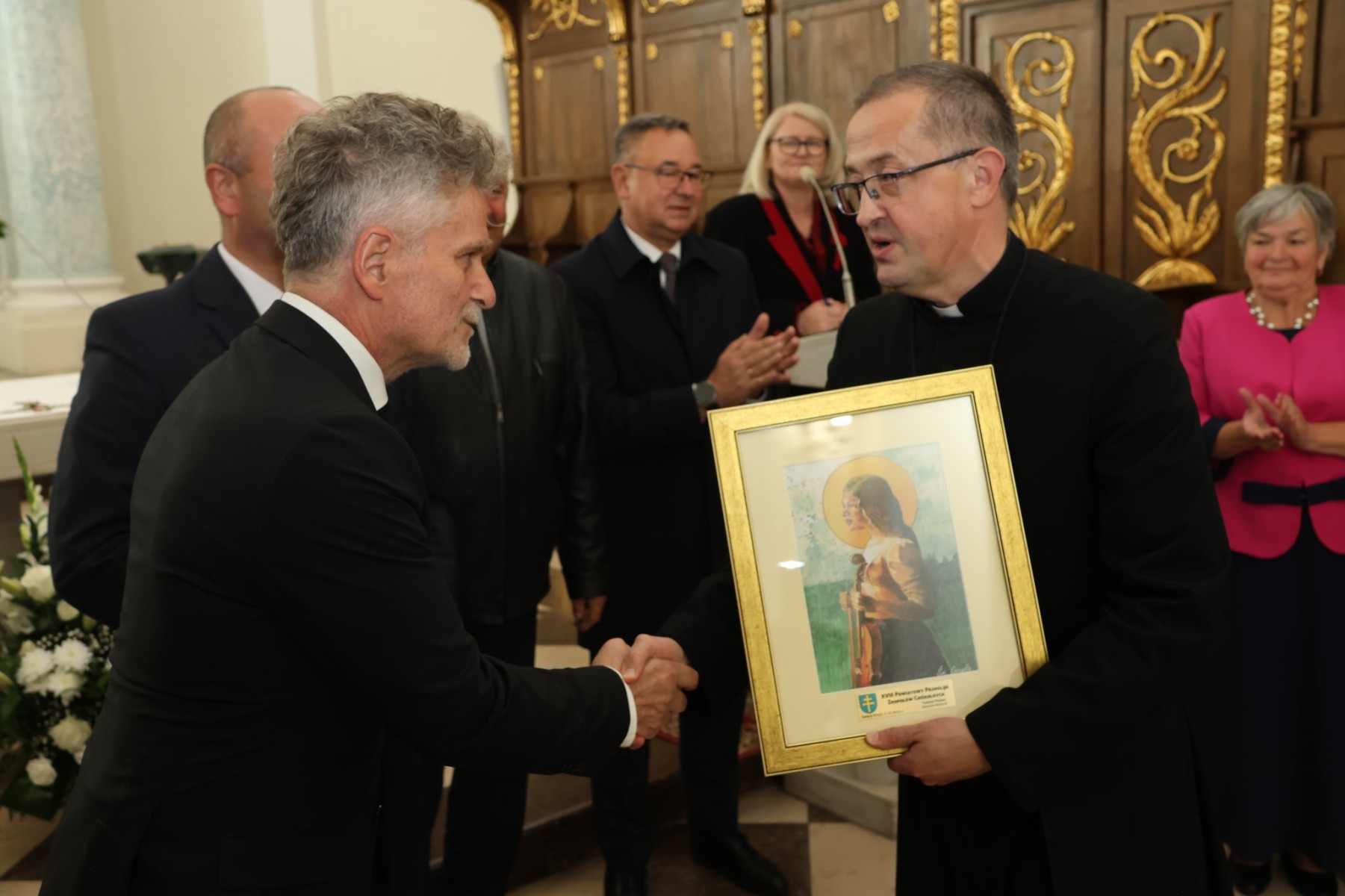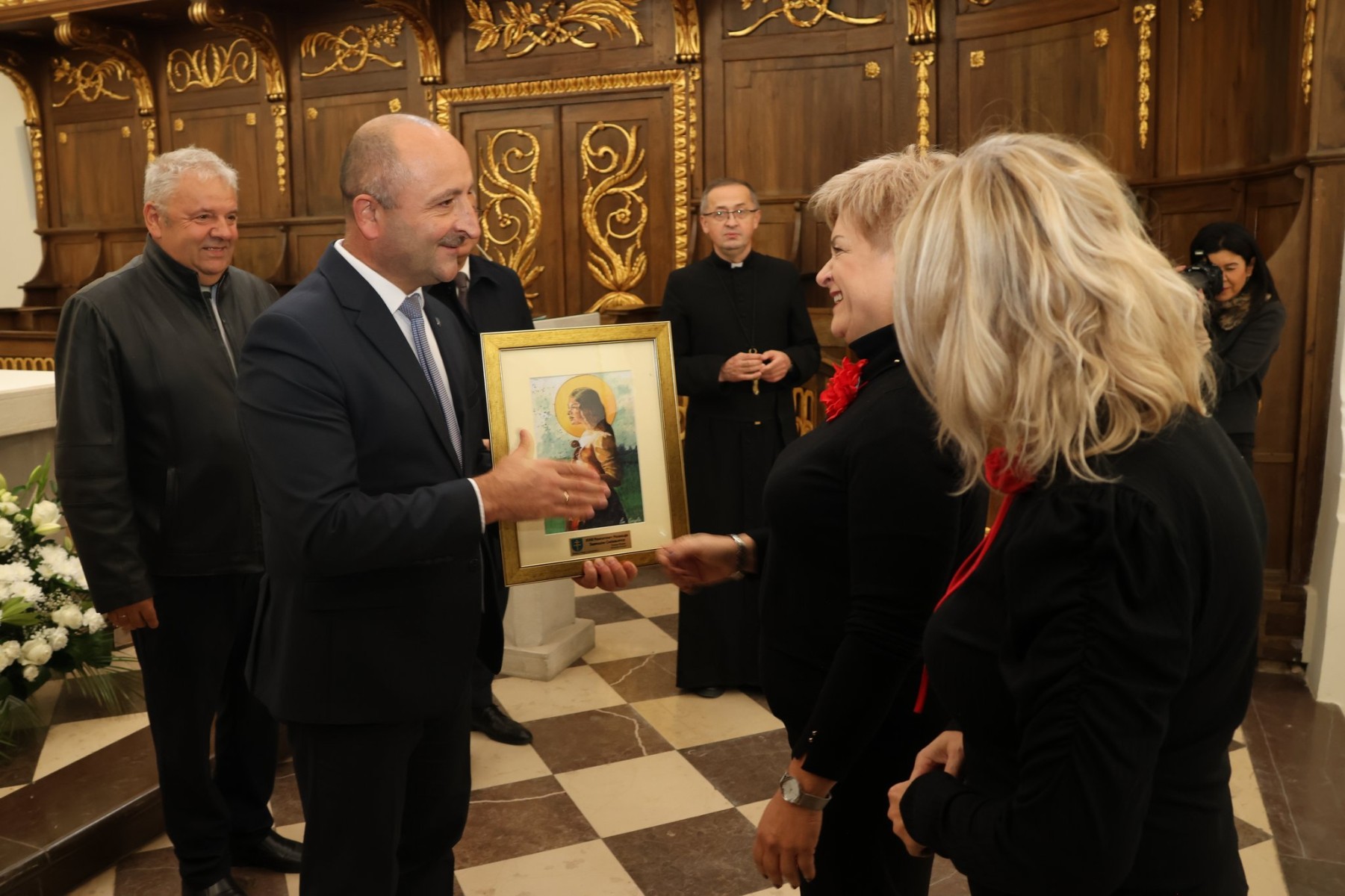 Na zakończenie przeglądu Mariusz Ściana, Senator Krzysztof Słoń, o. Józef Wcisło OMI, radny powiatowy Bogdan Gierada oraz wójt Sławomir Kopacz wręczyli wszystkim uczestnikom obrazy Świętej Cecylii, patronki muzyki kościelnej i chóralnej.