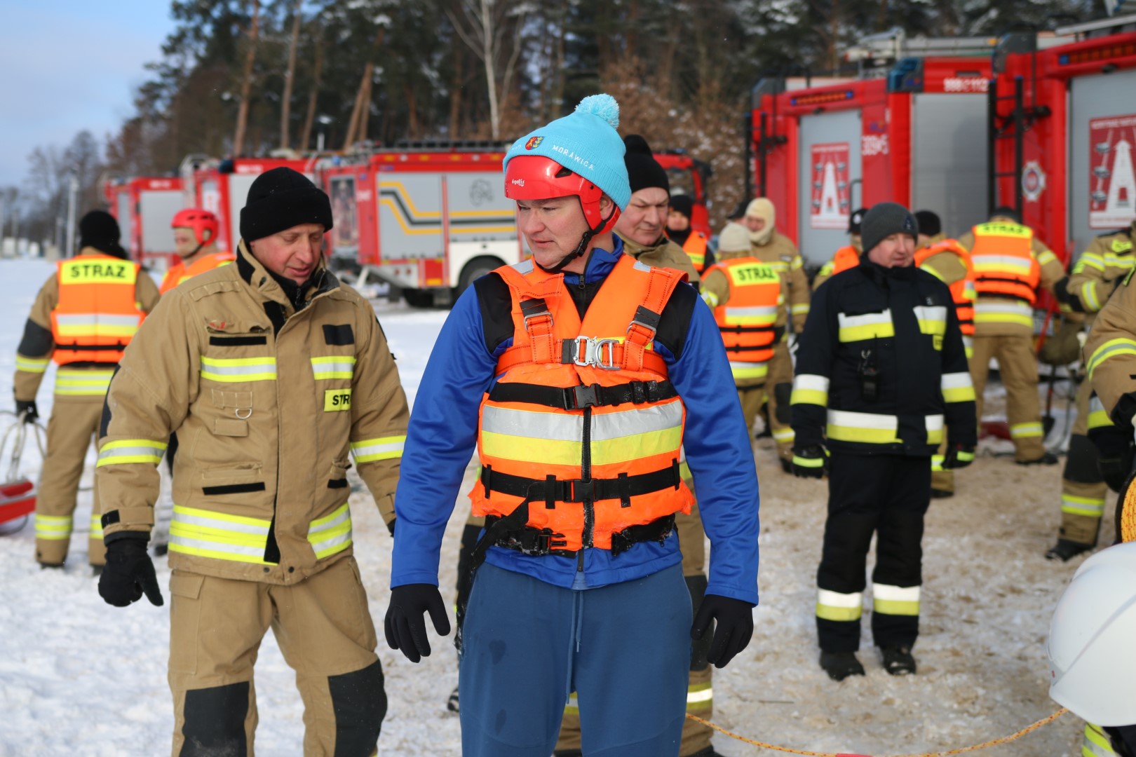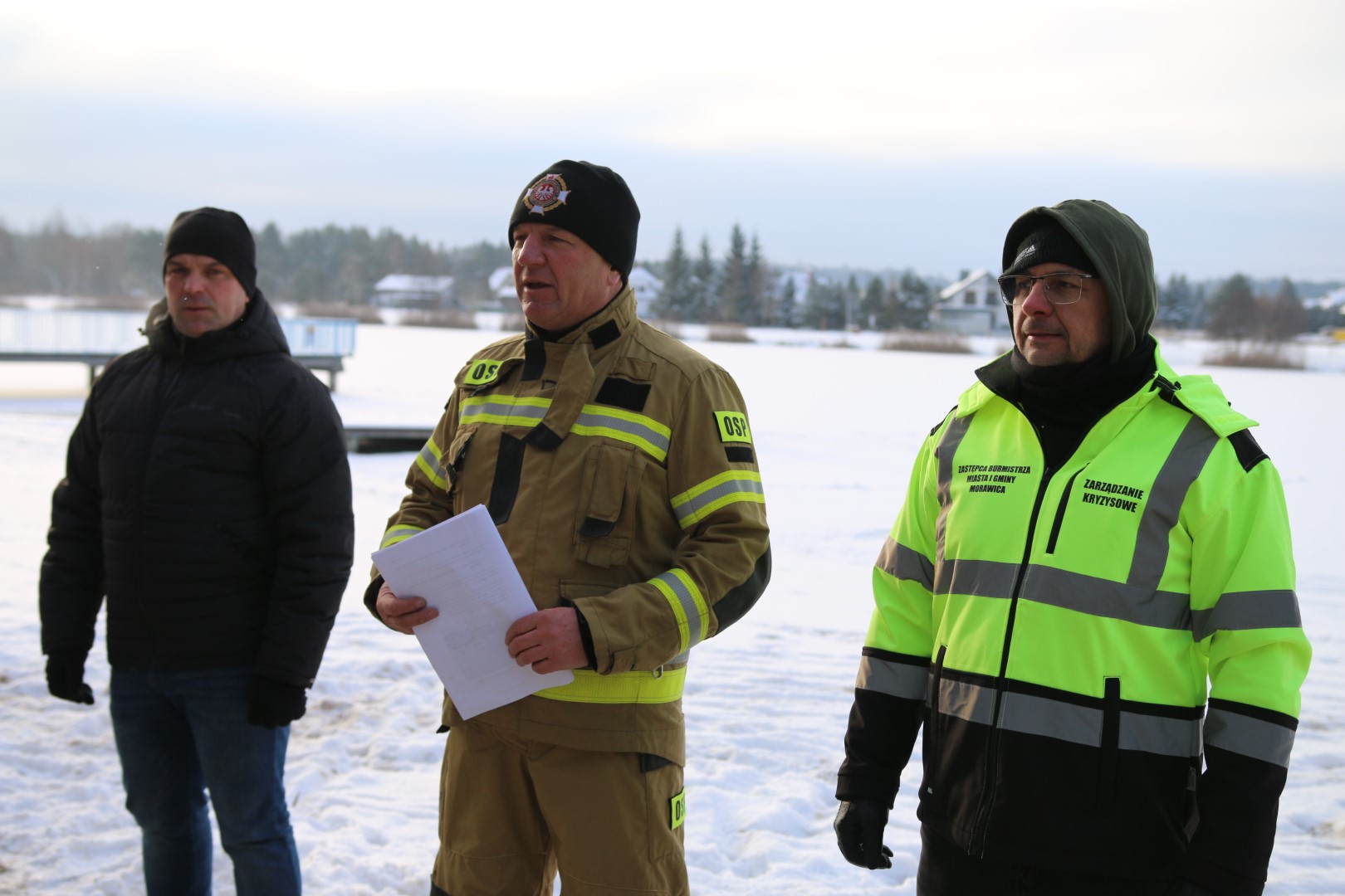 Dziś nad zalewem w Morawicy odbyły się ćwiczenia jednostek Ochotniczych Straży Pożarnych z terenu Miasta i Gminy Morawica. Druhowie doskonalili umiejętności z zakresu ratowania człowieka z lodowatej wody na zamarzniętym zbiorniku.