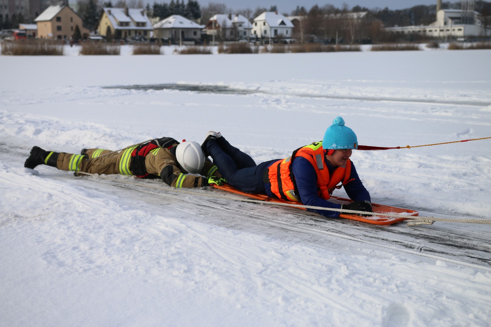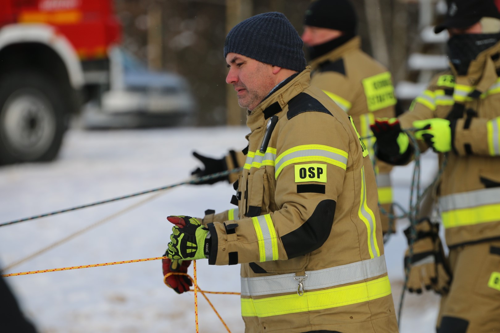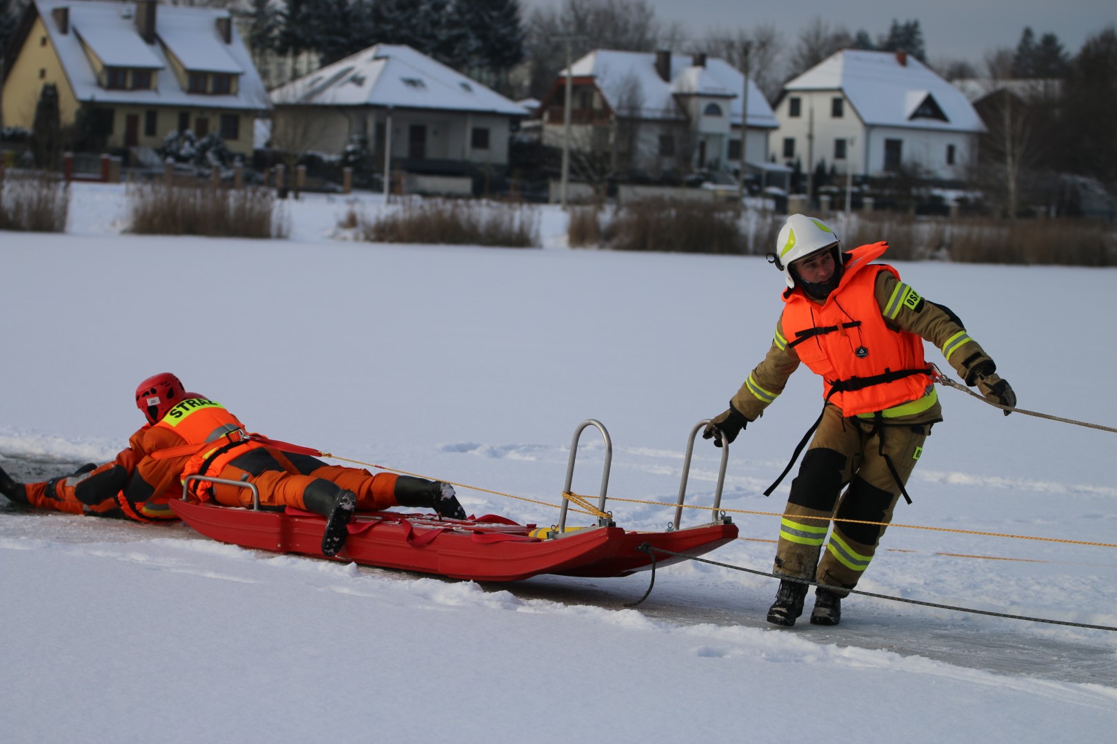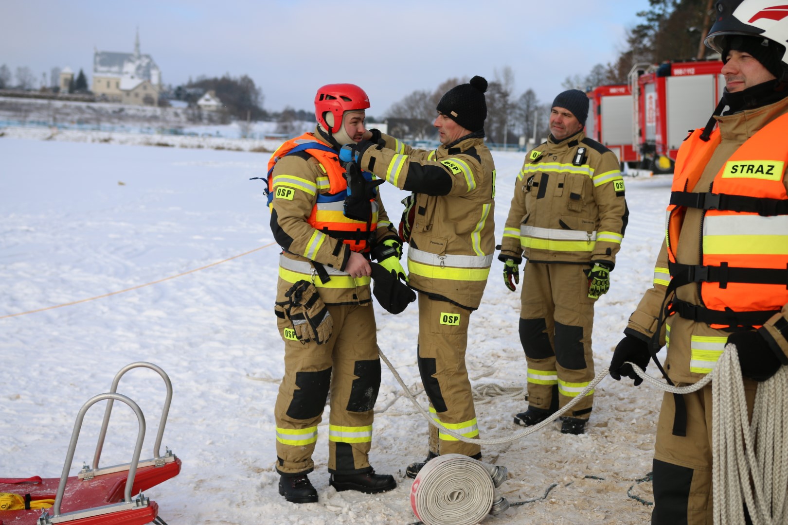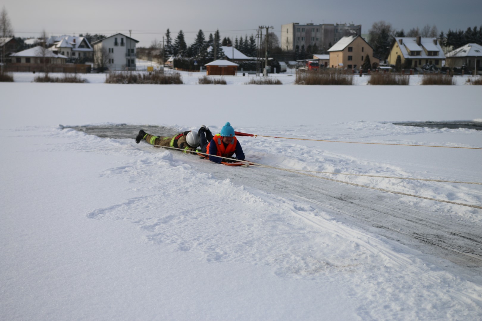Strażacy prowadzili działania ratownicze z wykorzystaniem różnych technik i sprzętu, m.in. sanek, drabiny oraz węża strażackiego. Ćwiczenia miały na celu nie tylko podniesienie poziomu wyszkolenia, ale również rozwijanie współpracy pomiędzy jednostkami w trudnych, zimowych warunkach.