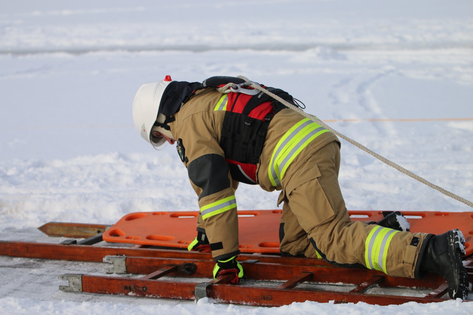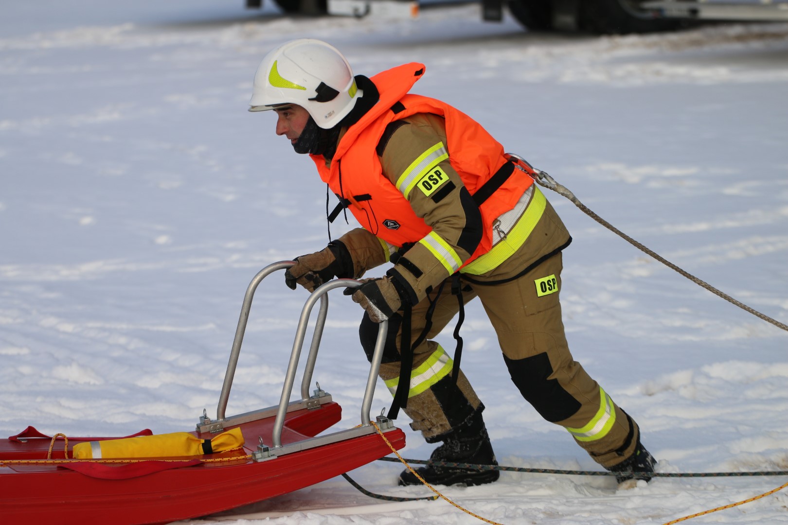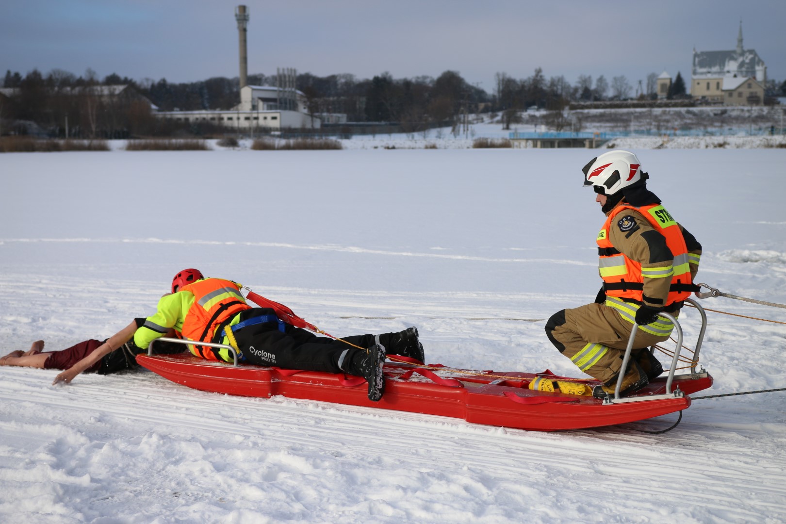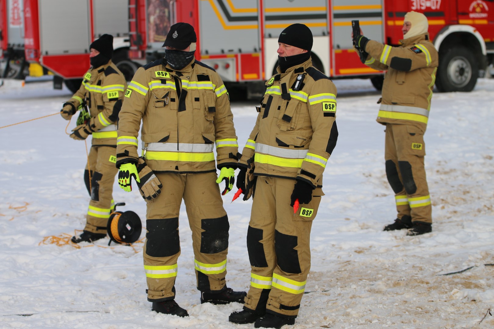 Strażacy prowadzili działania ratownicze z wykorzystaniem różnych technik i sprzętu, m.in. sanek, drabiny oraz węża strażackiego. Ćwiczenia miały na celu nie tylko podniesienie poziomu wyszkolenia, ale również rozwijanie współpracy pomiędzy jednostkami w trudnych, zimowych warunkach.