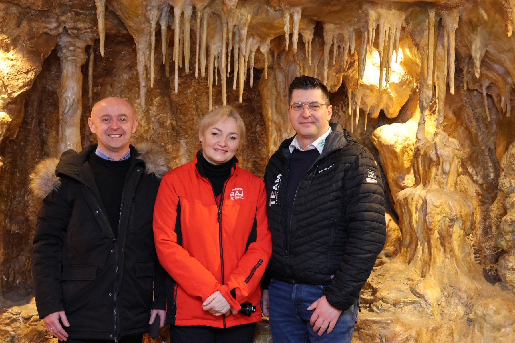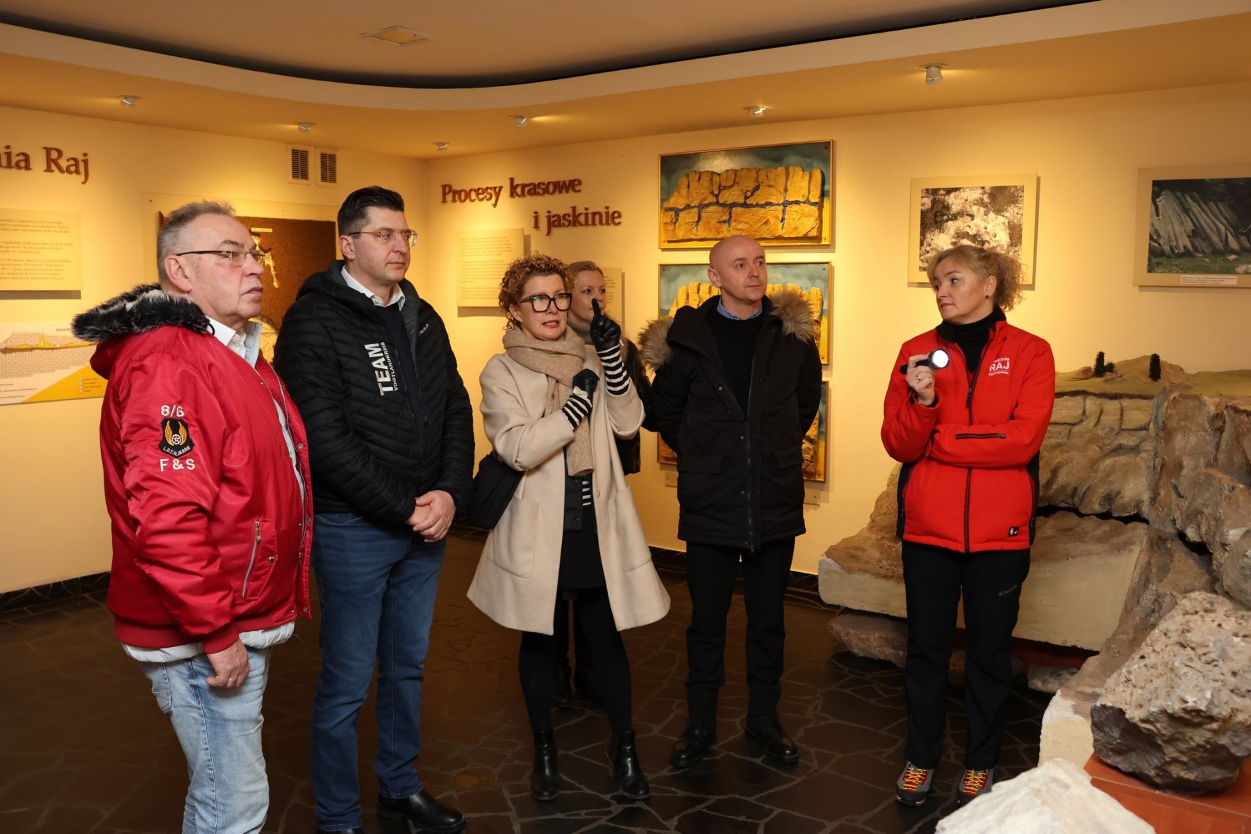 Wizytę rozpoczęliśmy w Powiatowym Zespole Szkół w Chęcinach, gdzie Halina Kołodziejczyk zaprezentowała zrealizowane inwestycje oraz plany rozbudowy kompleksu sportowego. Następnie delegacja zwiedziła Jaskinię Raj — jedną z największych atrakcji turystycznych regionu, która niezmiennie zachwyca odwiedzających.