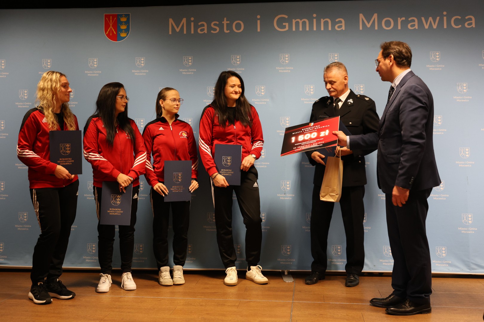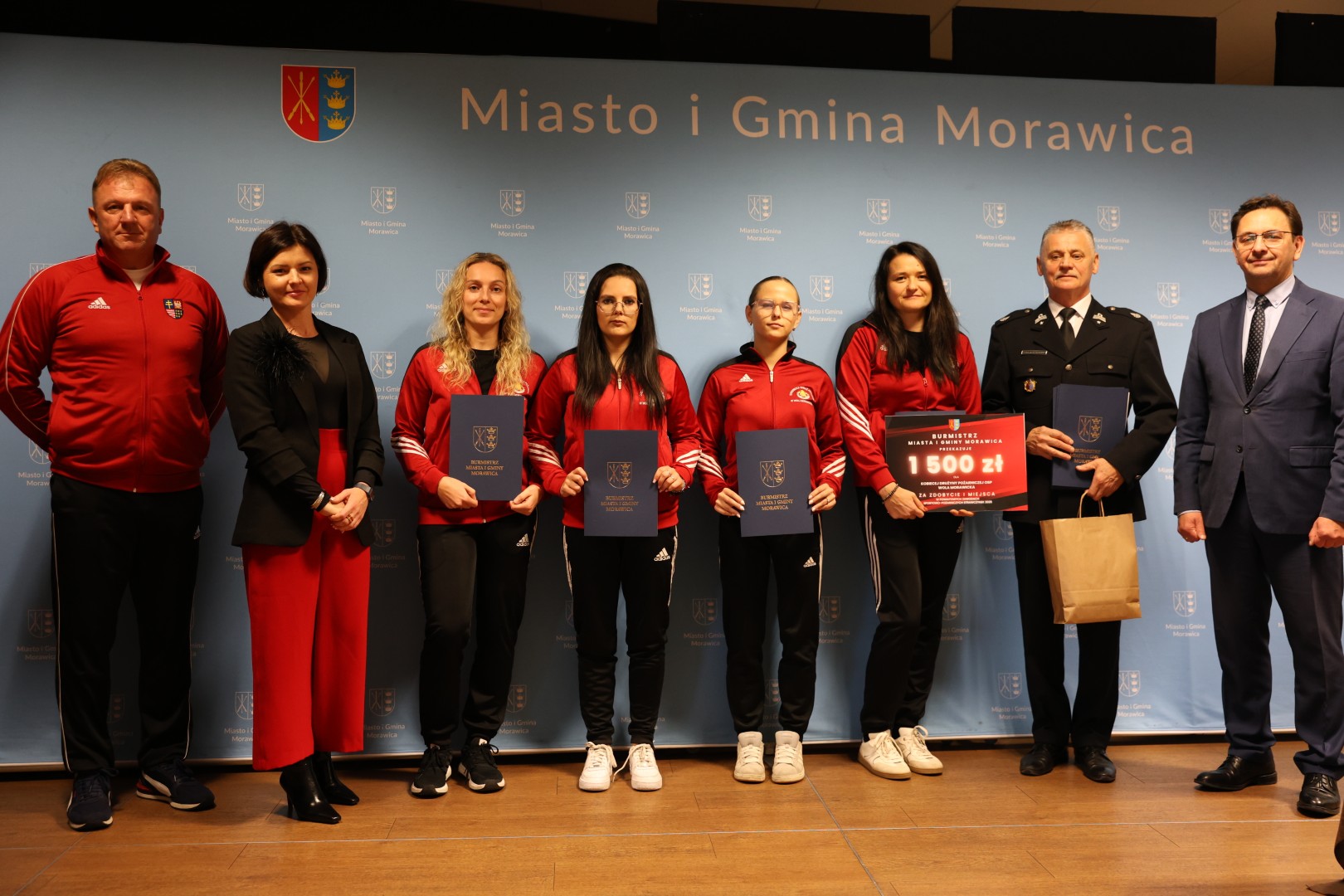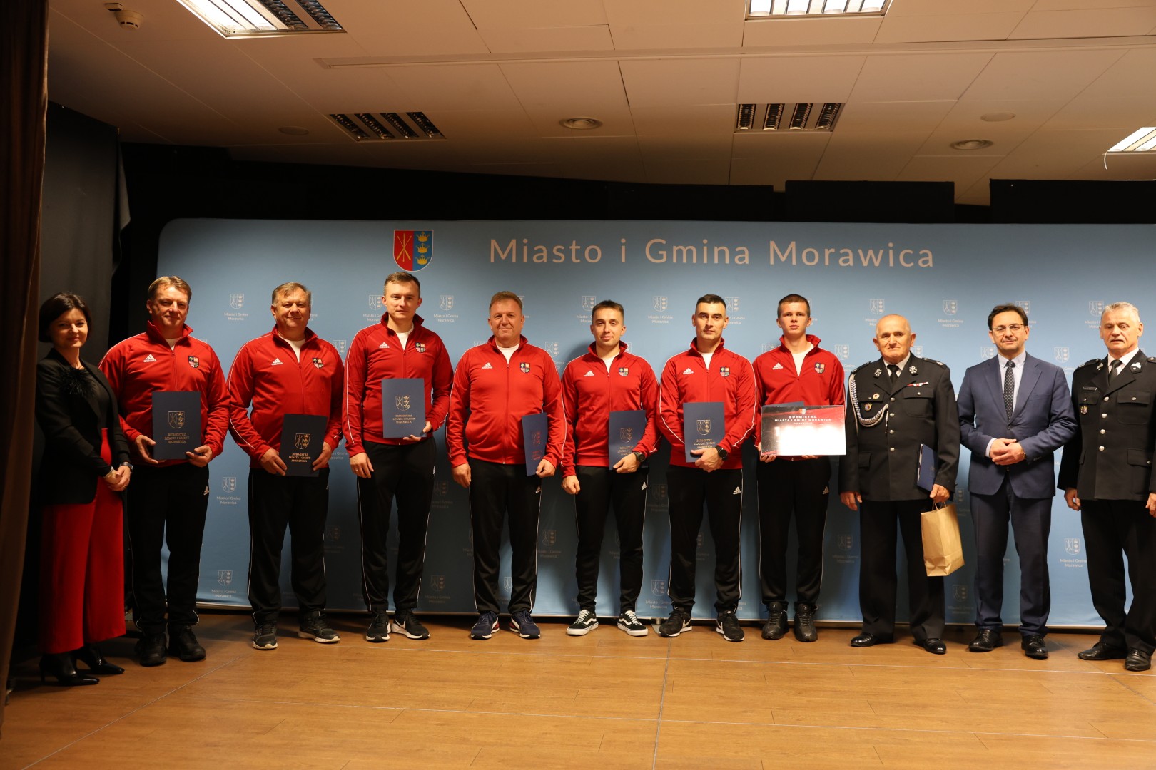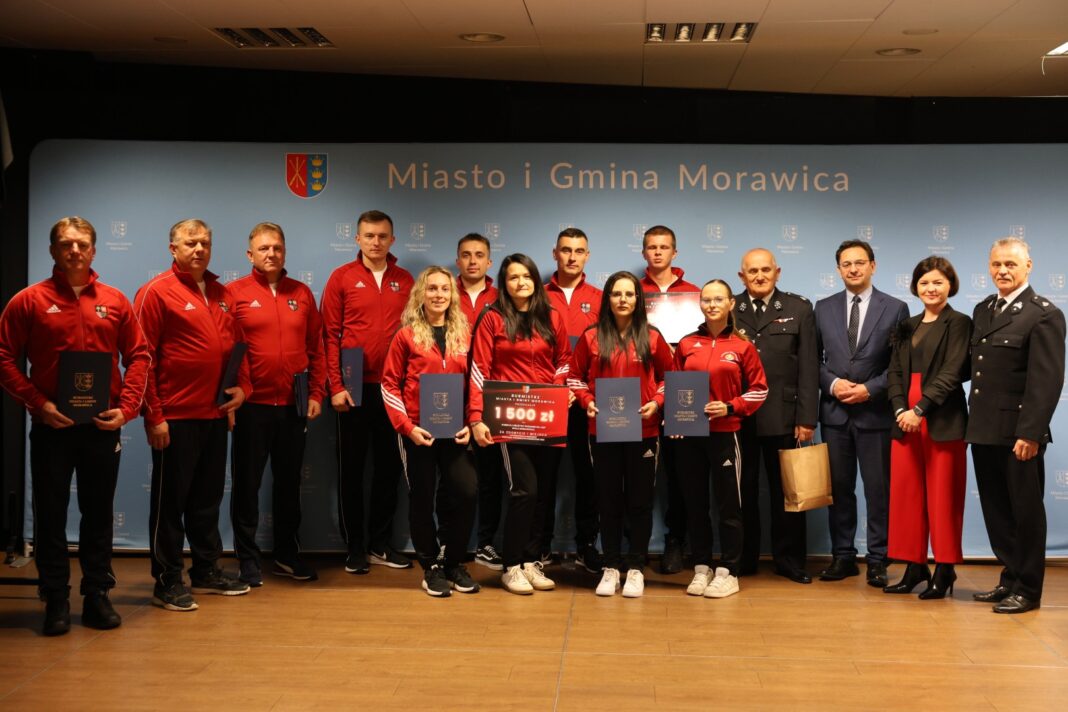 „Dziękując za wspaniałą postawę oraz promocję Miasta i Gminy Morawica, gratuluję osiągniętych sukcesów, które są dowodem doskonałego przygotowania i zaangażowania jednostki. Życzę Państwu zdrowia, wytrwałości w rozwijaniu sportowych pasji oraz wielu kolejnych, równie imponujących osiągnięć. Podczas nadchodzących zawodów życzę jedynie odrobiny szczęścia – bo wszystkie inne atuty już posiadacie.” – mówił Zastępca Burmistrza Marcin Dziewięcki wręczając druhnom i druhom pamiątkowe listy gratulacyjne. Zwycięskie jednostki otrzymały także w nagrodę vouchery o wartości 1500 zł. Gratulacje dla druhen i druhów złożył także wiceprezes miejsko-gminnego ZOSP RP Stanisław Pietrzykowski, który podkreślił, że gmina Morawica słynie ze świetnie wyszkolonych strażaków.