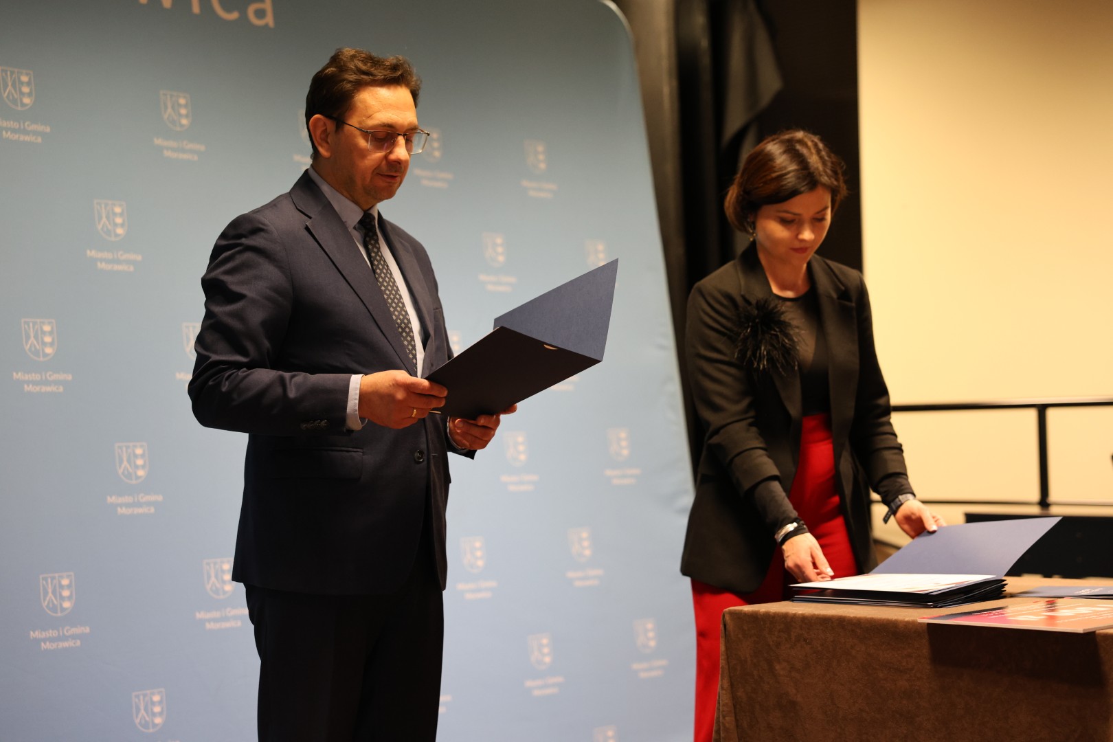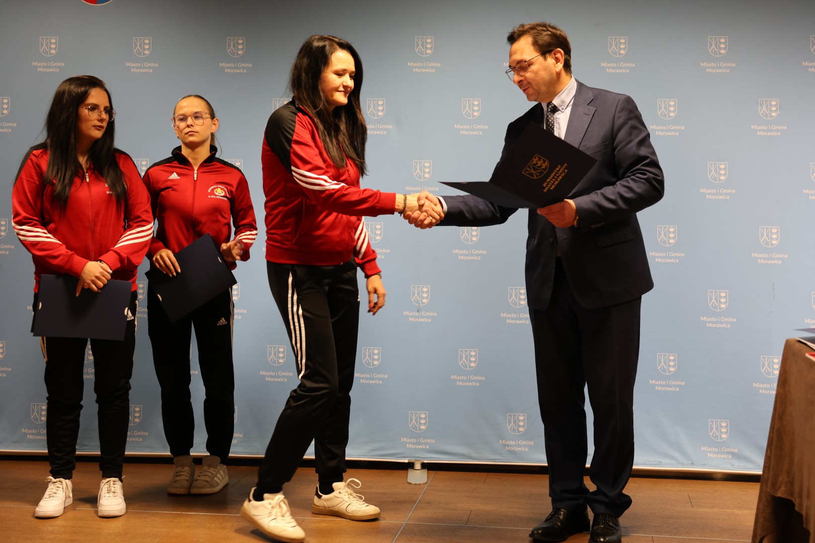 Dziś w Samorządowym Centrum Kultury w Morawicy odbyło się spotkanie, podczas którego Zastępca Burmistrza Marcin Dziewięcki pogratulował druhnom z Woli Morawickiej oraz druhom z Brudzowa zwycięstwa na powiatowych zawodach sportowo-pożarniczych.