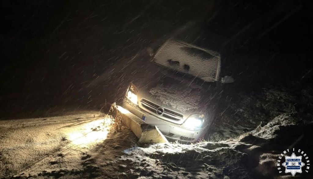 Do drugiego zdarzenia doszło następnego dnia, krótko po godzinie 18 w miejscowości Skalbmierz. Mundurowi znajdując się w miejscu prowadzenia czynności kontrolnych zauważyli opla, który na ich oczach wjechał do przydrożnego rowu. Policjanci niezwłocznie ruszyli z pomocą. Kierującemu 45 – latkowi nic się stało, jednakże w toku dalszych czynności stróże prawa poddali mężczyznę badaniu trzeźwości. Urządzenie wykazało blisko 2,5 promila alkoholu w jego organizmie. Ponadto mężczyzna posiadał sądowy zakaz prowadzenia pojazdów, a samochód którym kierował nie posiadał aktualnych badań technicznych oraz obowiązkowego ubezpieczenia.