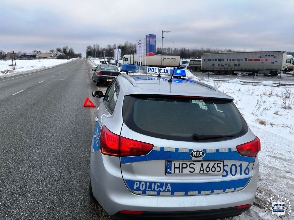 Około godzinę później dyżurny Komendy Miejskiej Policji w Kielcach otrzymał zgłoszenie dotyczące zdarzenia drogowego w podkieleckim Kajetanowie z udziałem osobowego Opla. Z relacji zgłaszającego wynikało, że pojazd mógł wcześniej uczestniczyć w kolizji ze zwierzęciem leśnym.