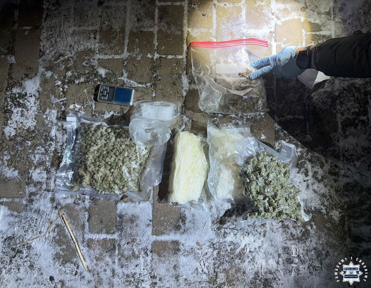 Buscy kryminalni w poniedziałek ustalili, że 22-letni mieszkaniec gminy może posiadać narkotyki. W związku z tym wyruszyli na poszukiwania mężczyzny. Po południu, na trasie Wiślica – Busko wypatrzyli Opla, w którym podróżował 22-latek. Auto zostało zatrzymane do kontroli drogowej. Kiedy policjanci wyjaśnili powód zatrzymania, pasażer przyznał, że ma w odzieży ukryte narkotyki. Funkcjonariusze podczas przeszukania znaleźli i zabezpieczyli 50 gramów środka odurzającego 3-CMC oraz dwie porcje marihuany. Mężczyzna trafił do policyjnej celi. W wyniku czynności wykrywaczach policjanci ustalili, że narkotyki może posiadać także jego znajomy, 26-letni mieszkaniec powiatu pińczowskiego. Śledczy pojechali do jego miejsca zamieszkania. Tam zabezpieczyli środek odurzający w postaci substancji 3-CMC o wadze ponad 1,1 kilograma, susz konopi innych niż włókniste o wadze ponad 700 gramów oraz 1 gram amfetaminy. Funkcjonariusze ujawnili także pieniądze w łącznej kwocie 102 000 złotych. Także ten mężczyzna został zatrzymany.