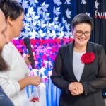 W duchu patriotyzmu aktywnie uczestniczyli w dyktandzie także m.in. Wójt Gminy Miedziana Góra Damian Sławski, Senator RP Krzysztof Słoń.