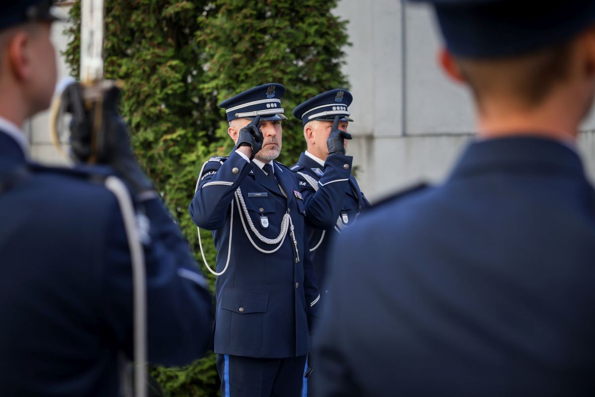 Prostokąt o proporcjach 5:8, podzielony na dwa poziome pasy – biały u góry i czerwony na dole. Dla nas to jednak coś więcej niż płat tkaniny o sformalizowanych wymiarach i barwach, wywieszany przy odpowiednich okazjach. Flaga państwowa to historia narodu, który od wieków zamieszkuje przepiękny kraj nad Wisłą. I chociaż historia ta jest zawiła, Polska znikała przecież z map administracyjnych, to nigdy nie zniknęła z mapy serca Narodu, który odzyskał niepodległość i zachował swoją tożsamość. Dziś, dumni świętujemy obchody Dnia Flagi Rzeczypospolitej Polskiej. Szef świętokrzyskich policjantów inspektor Zbigniew Nowak uczestniczył w podniesieniu Flagi przy Komendzie Wojewódzkiej Policji w Kielcach, a w samo południe wraz mł. insp. Wojciechem Królem wziął udział w oficjalnych obchodach.