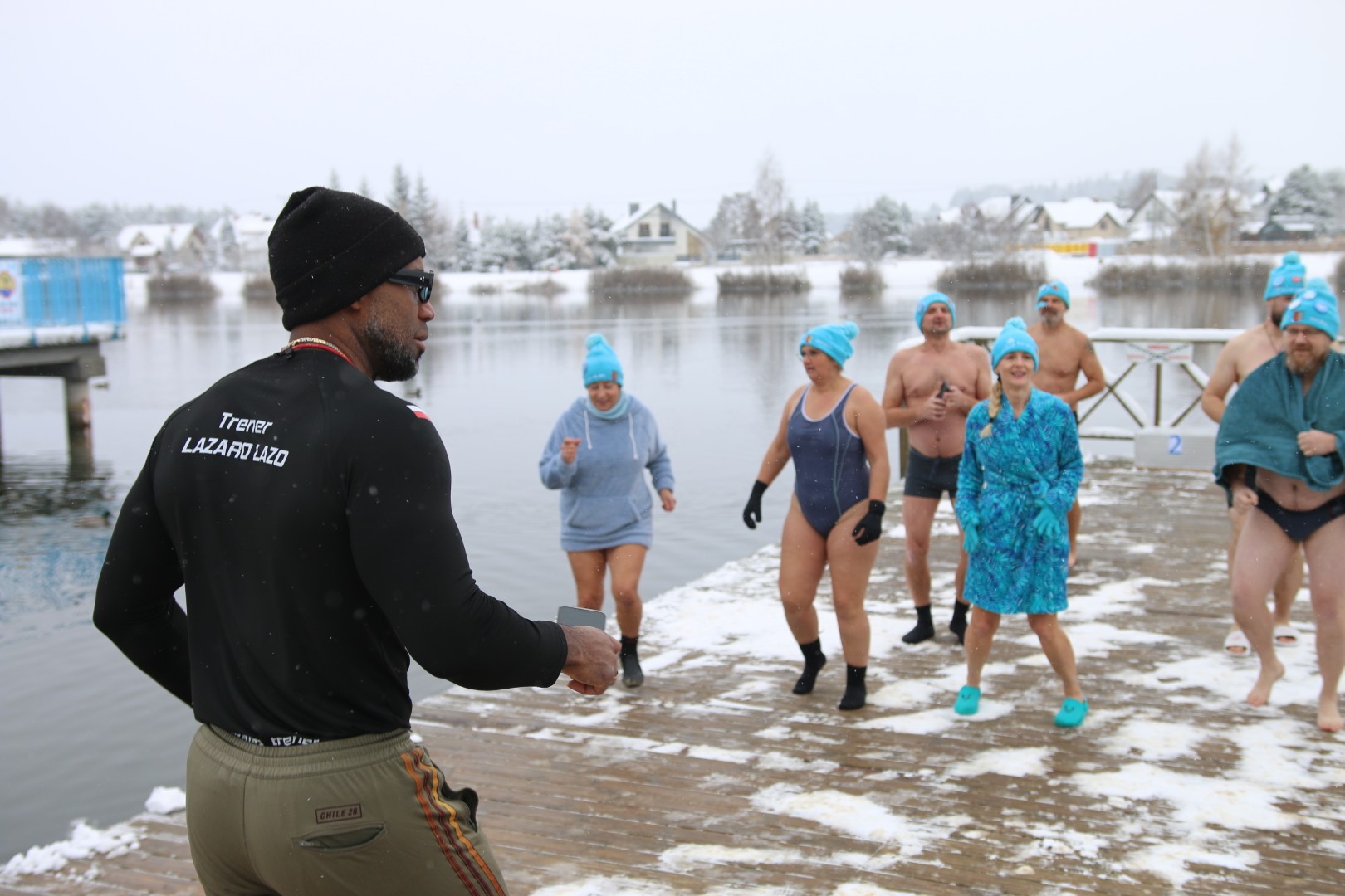 Sportowe zmagania zwieńczyło wielkie, wspólne morsowanie, poprzedzone rozgrzewką prowadzoną przez trenera Lazaro Lazo.