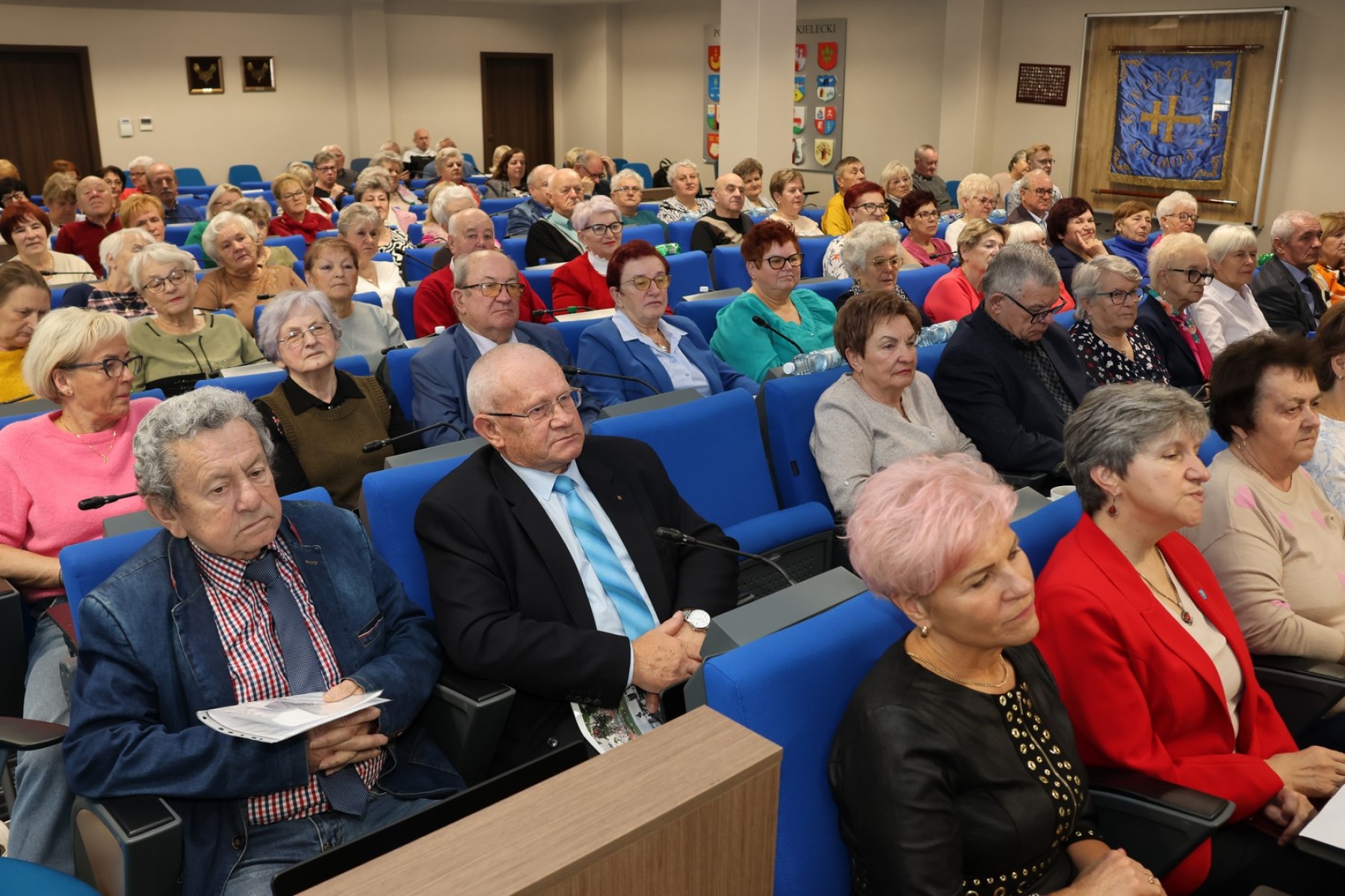 Uroczyste spotkanie z seniorami odbyło się podczas posiedzenia Rady Seniorów Powiatu Kieleckiego. Sala audytoryjna kieleckiego starostwa wypełniła się po brzegi seniorami z gmin powiatu kieleckiego. Obecni byli m.in. przedstawiciele Chęcińskiego UTW, Łagowskiego UTW, UTW w Łopusznie UTW w Piekoszowie, UTW w Bodzentynie, Klubów Seniora w Sukowie, Krajnie, Masłowie, Klubu Seniora Złote Lata z Miedzianej Góry, Klubu Seniora Zawsze Młodzi z Morawicy, Klubu Seniora Młodzi Duchem z Bęczkowa, Klubu Seniora Ostoja, klubów seniora z: Samsonowa, Strawczyna, Oblęgora, Pierzchnicy.