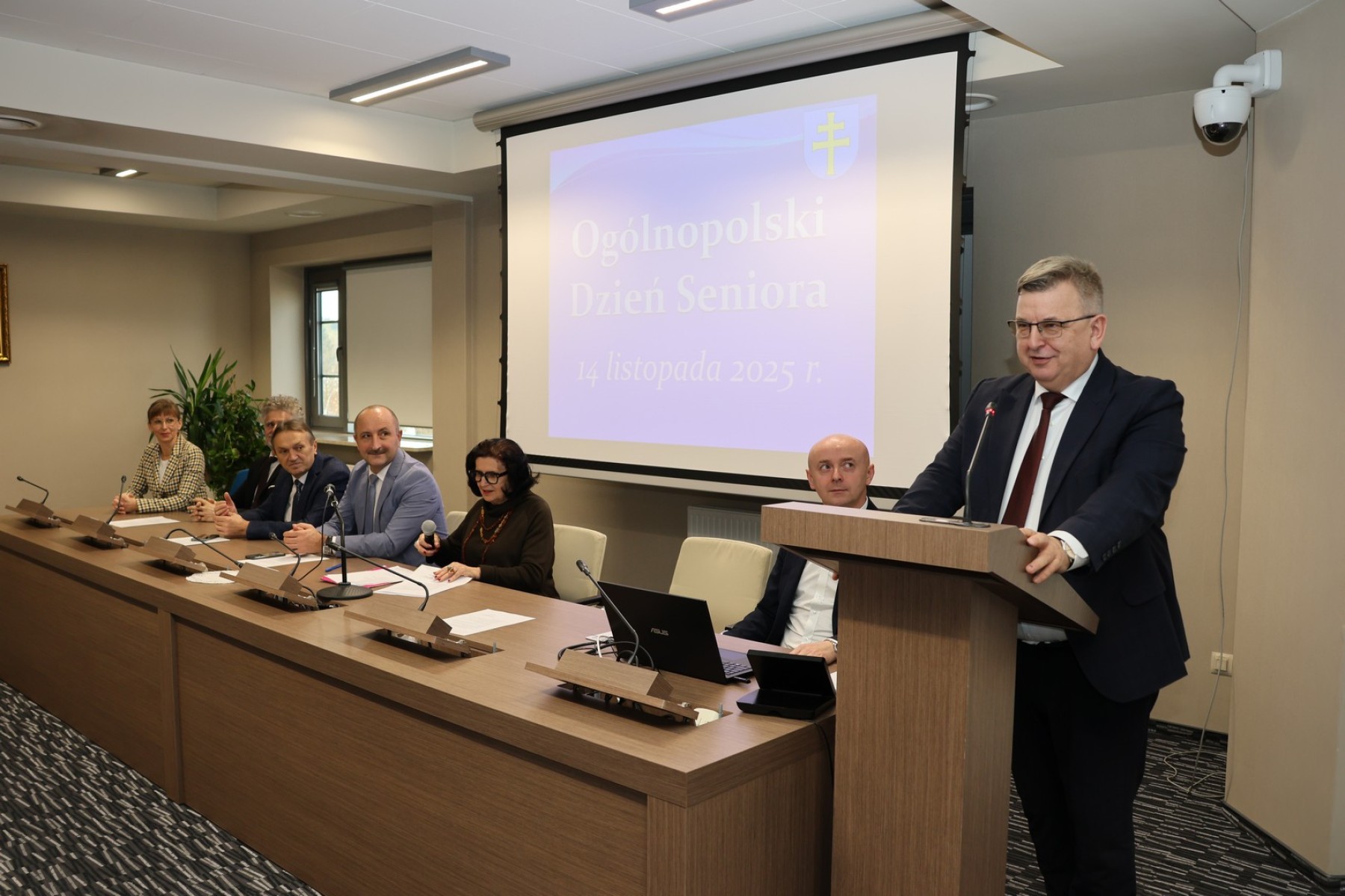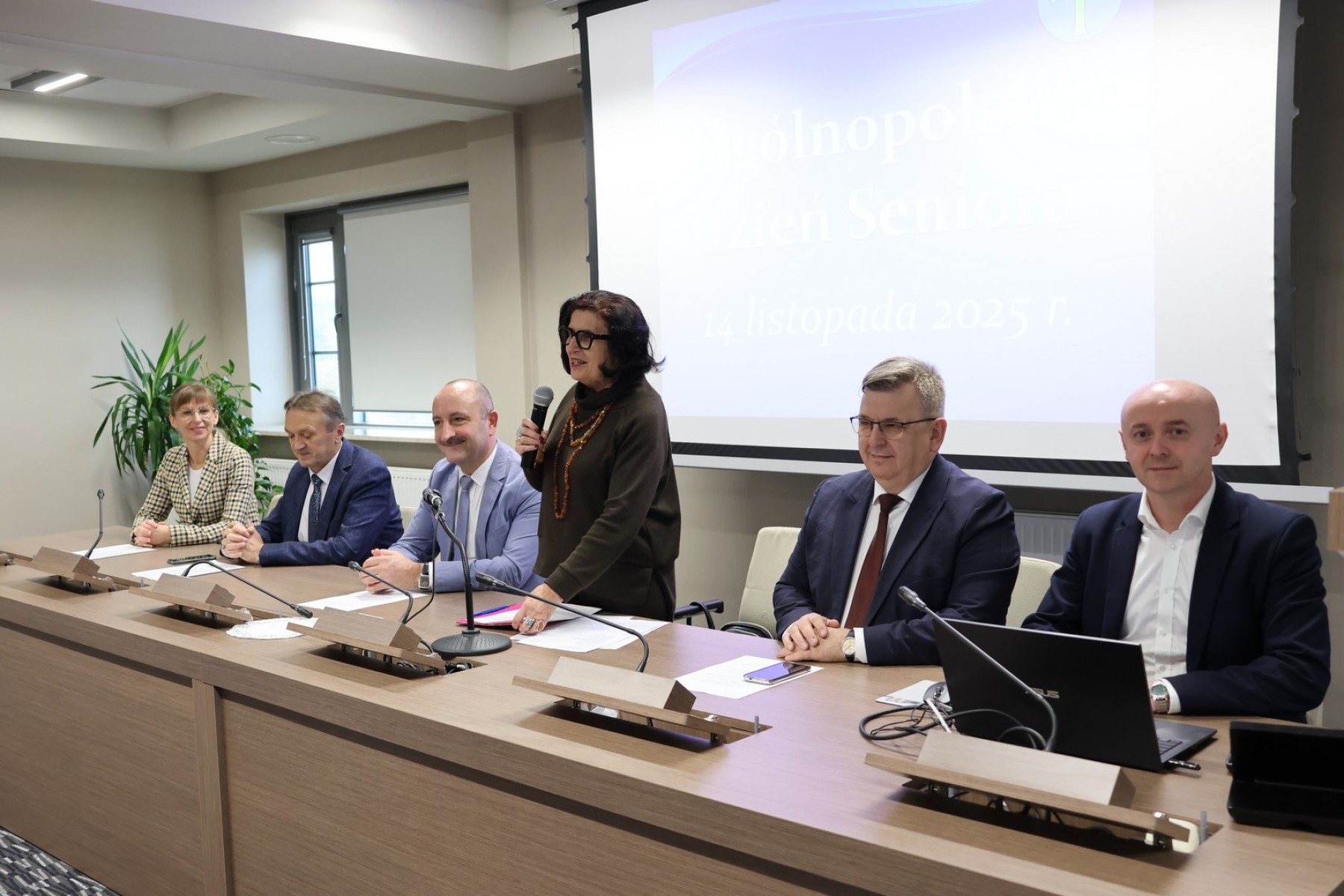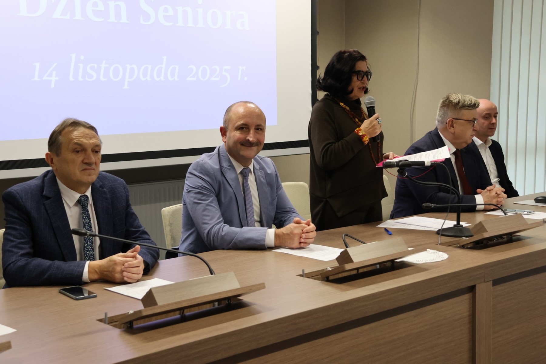 Zebranych powitali: Przewodnicząca Rady Seniorów Powiatu Kieleckiego Zofia Puchała, starosta kielecki Tomasz Pleban, wicestarosta Tomasz Dulny, członkowie Zarządu Powiatu w Kielcach – Mariusz Ściana, Cezary Majcher, Mirosław Gębski.