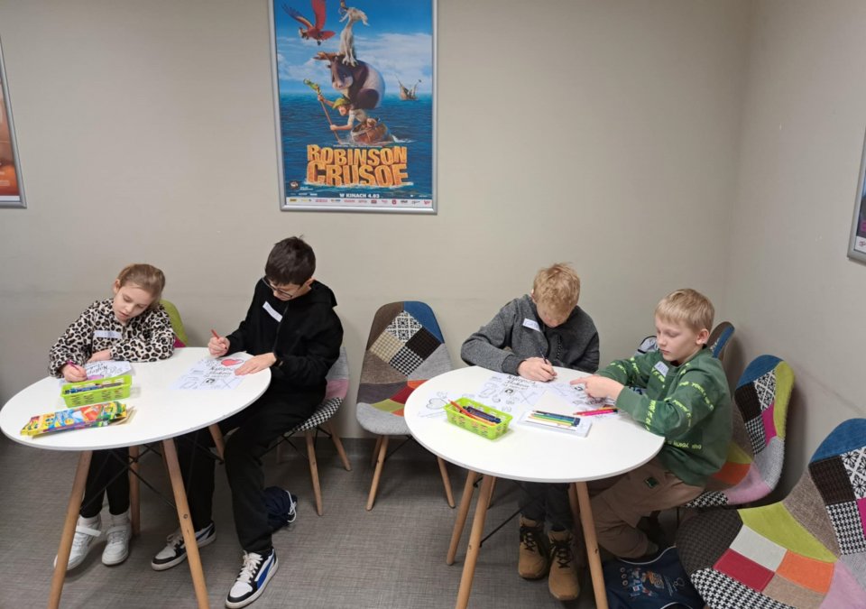 Na zakończenie dnia mali feriowicze zasiedli w Kinie za Rogiem, gdzie obejrzeli bajkę pt. „Klara Mu”, przenosząc się na chwilę do świata wyobraźni i filmowych przygód. Zachęcamy do obejrzenia zdjęć z pierwszego dnia ferii – pełnych uśmiechów, kolorów i prawdziwej zimowej magii.