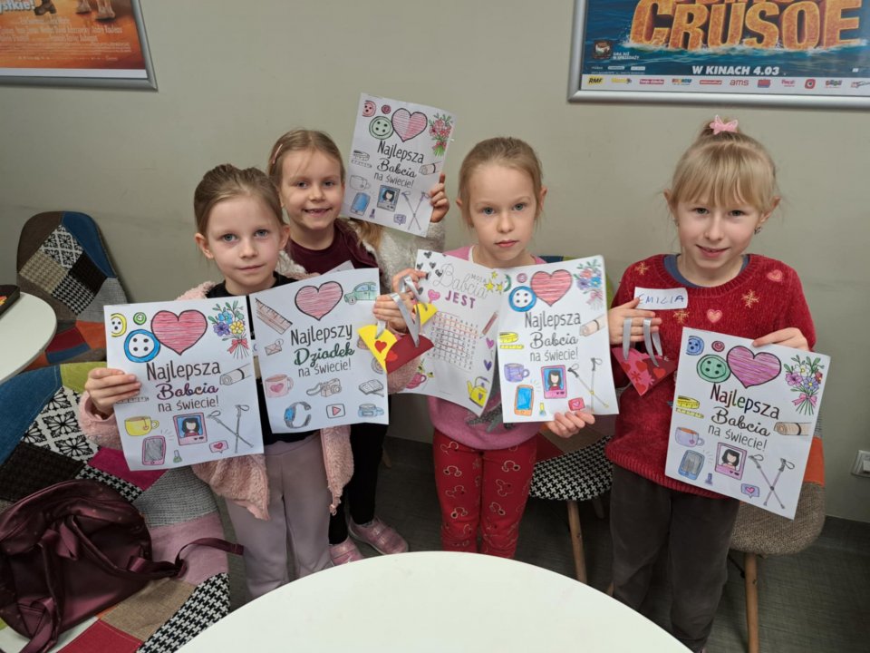 Tego dnia rozpoczęły się również przygotowania do wyjątkowego święta – Dnia Babci i Dziadka. Dzieci z wielkim sercem tworzyły barwne laurki, wypełnione ciepłymi życzeniami i miłością. Powstały także zakreślanki pełne pozytywnych cech ukochanych Dziadków – bo przecież są oni prawdziwymi bohaterami codzienności.