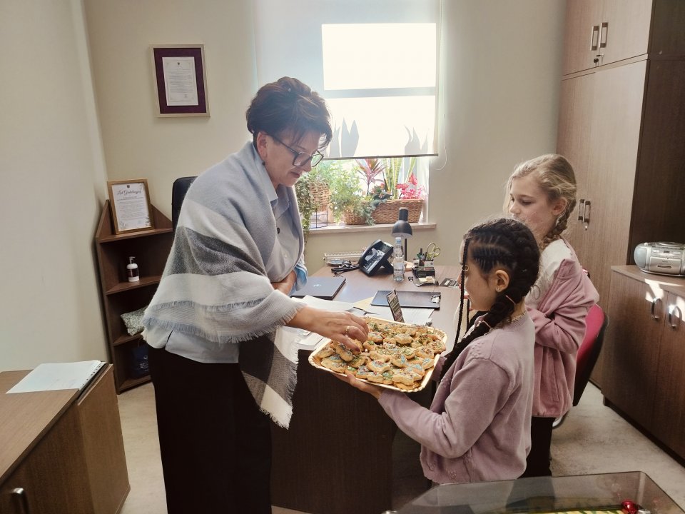 Z pachnącymi wypiekami dzieci odwiedziły zastępcę burmistrza, pana Marcina Dziewięckiego, panią sekretarz Miasta i Gminy Morawica – Annę Kowalską, a także panią dyrektor Samorządowego Centrum Kultury i Biblioteki w Morawicy – Hannę Kuta, obdarowując ich uśmiechem i słodkim gestem.