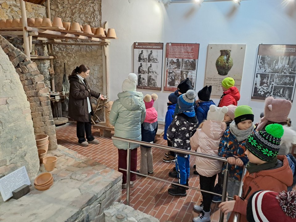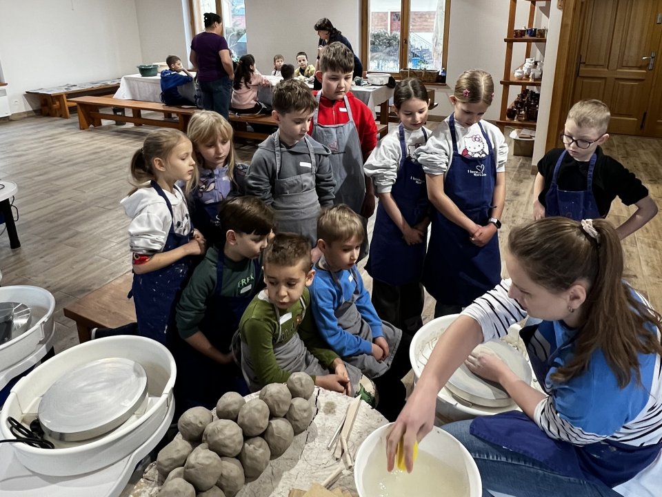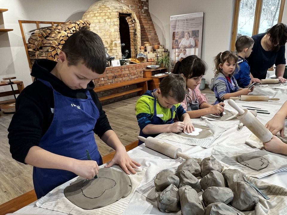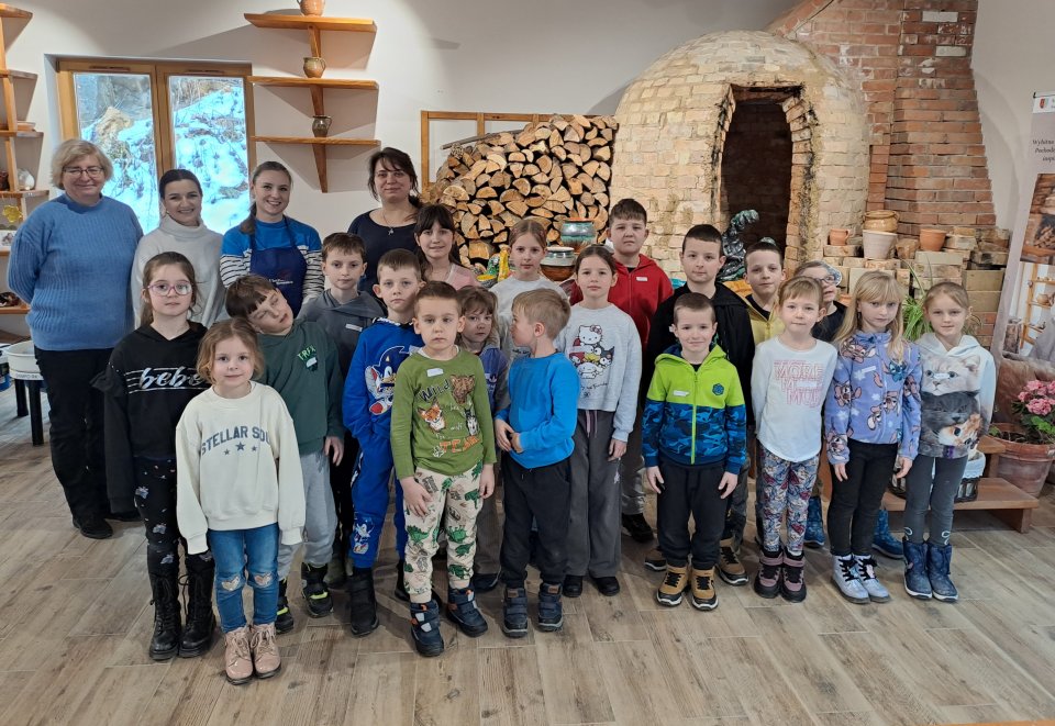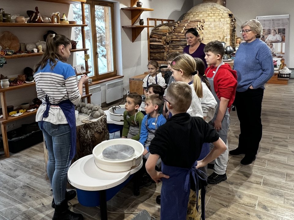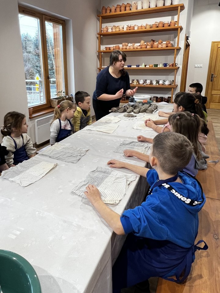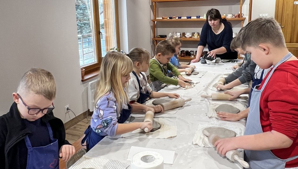 Dzieci uczęszczające na zajęcia feryjne organizowane przez Samorządowe Centrum Kultury spędziły ostatni dzień zajęć w Ośrodku Tradycji Garncarstwa w Chałupkach.