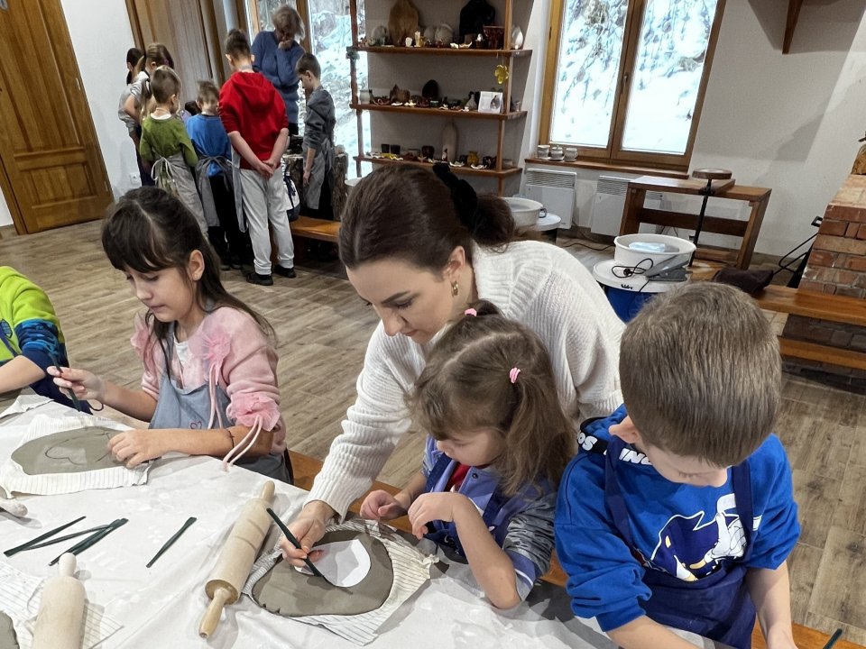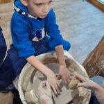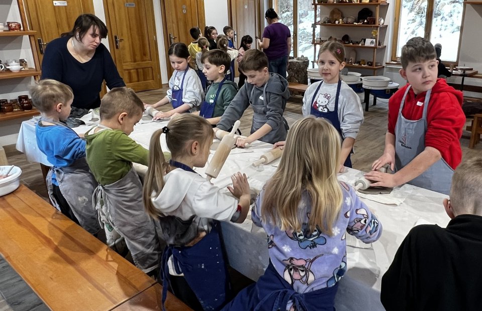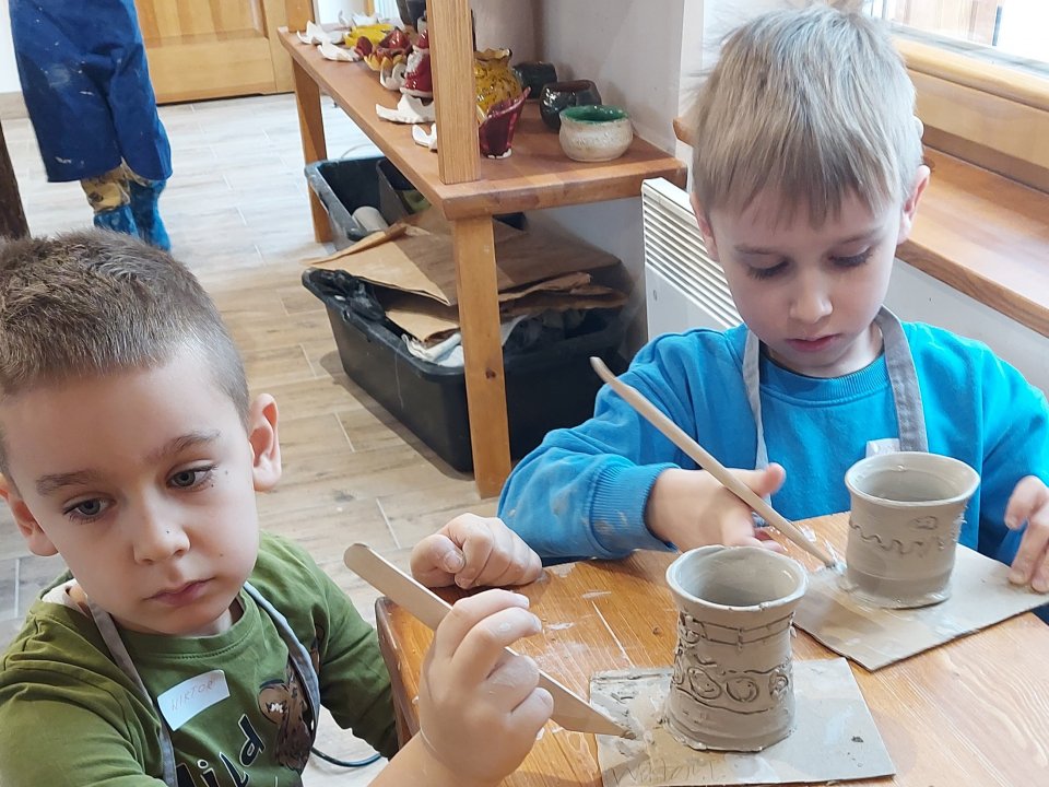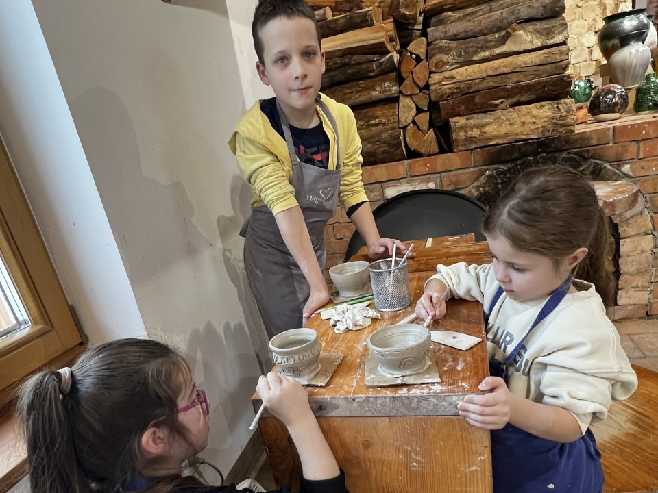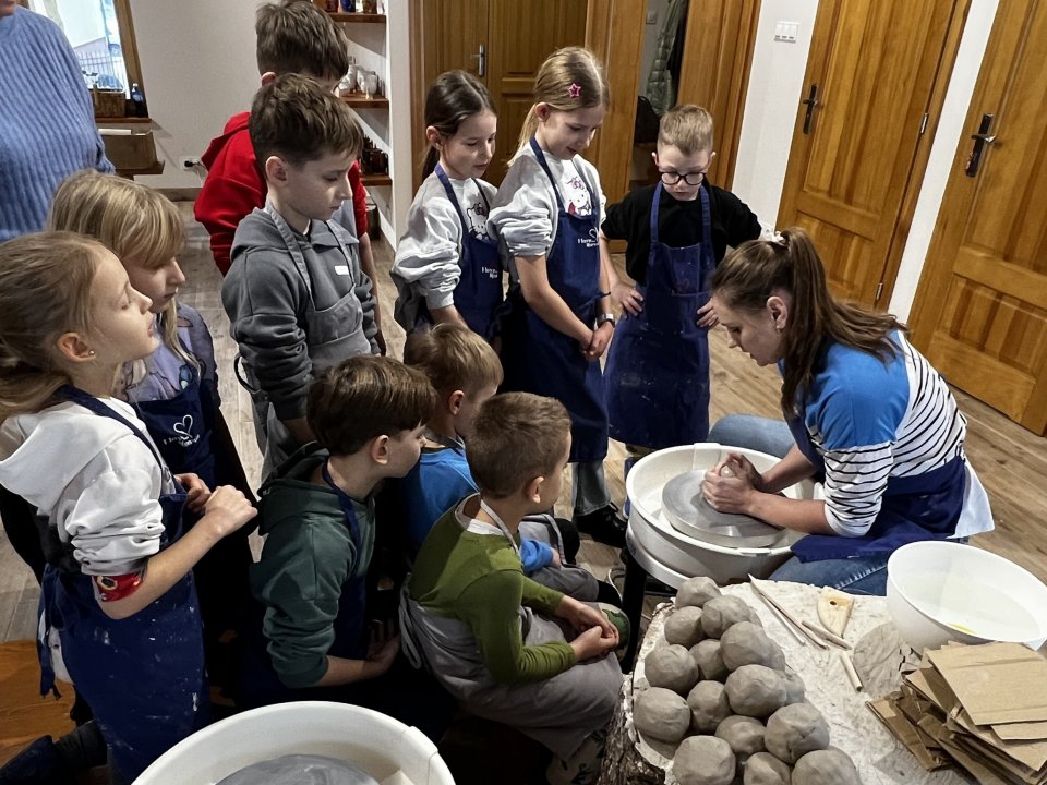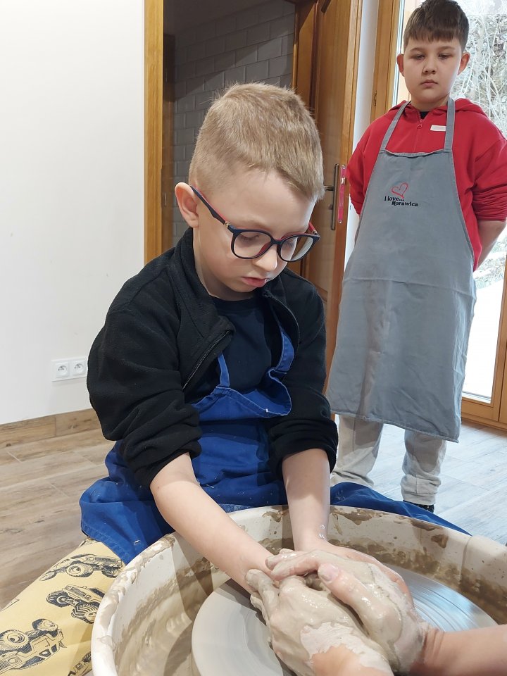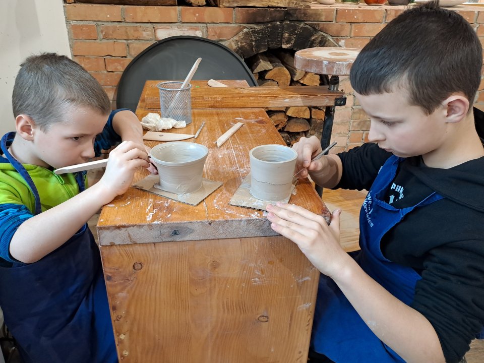 Dzieci uczęszczające na zajęcia feryjne organizowane przez Samorządowe Centrum Kultury spędziły ostatni dzień zajęć w Ośrodku Tradycji Garncarstwa w Chałupkach.