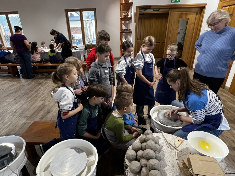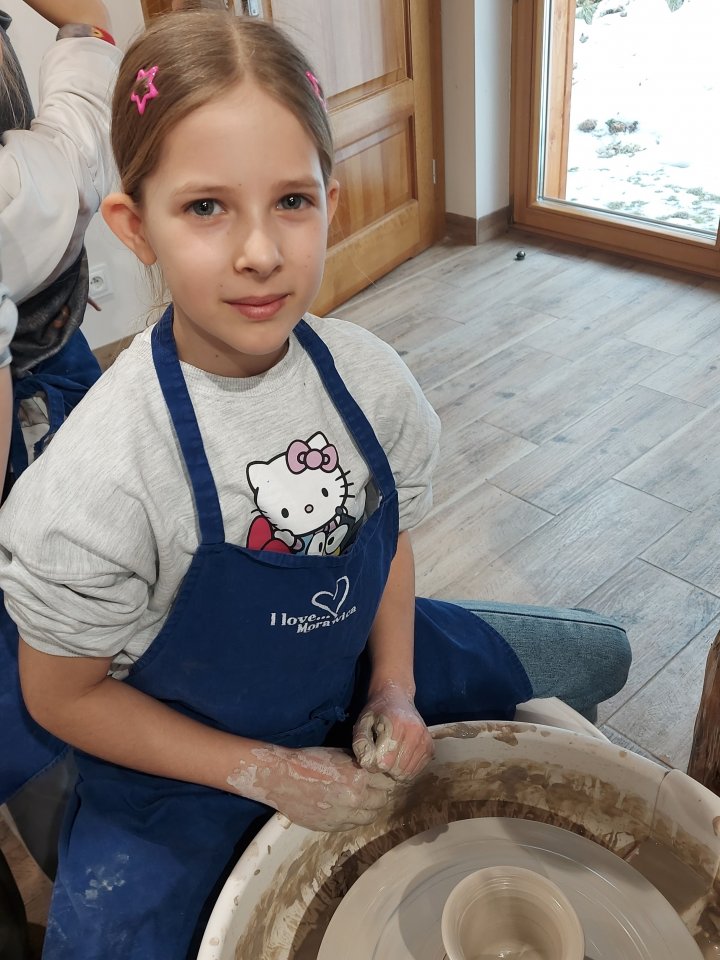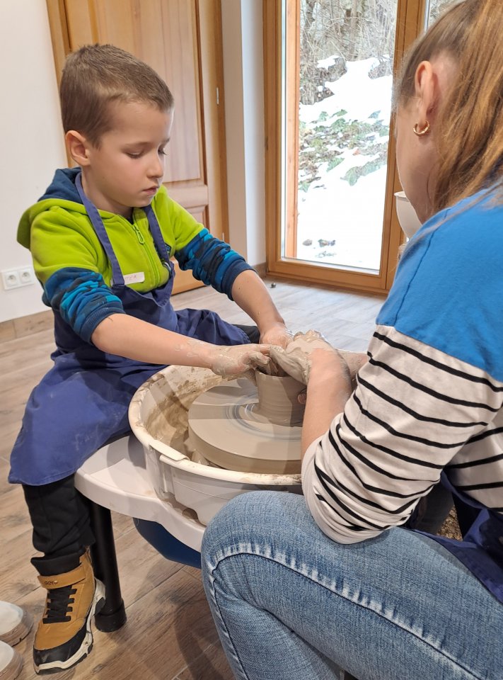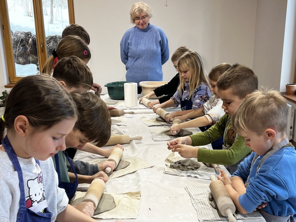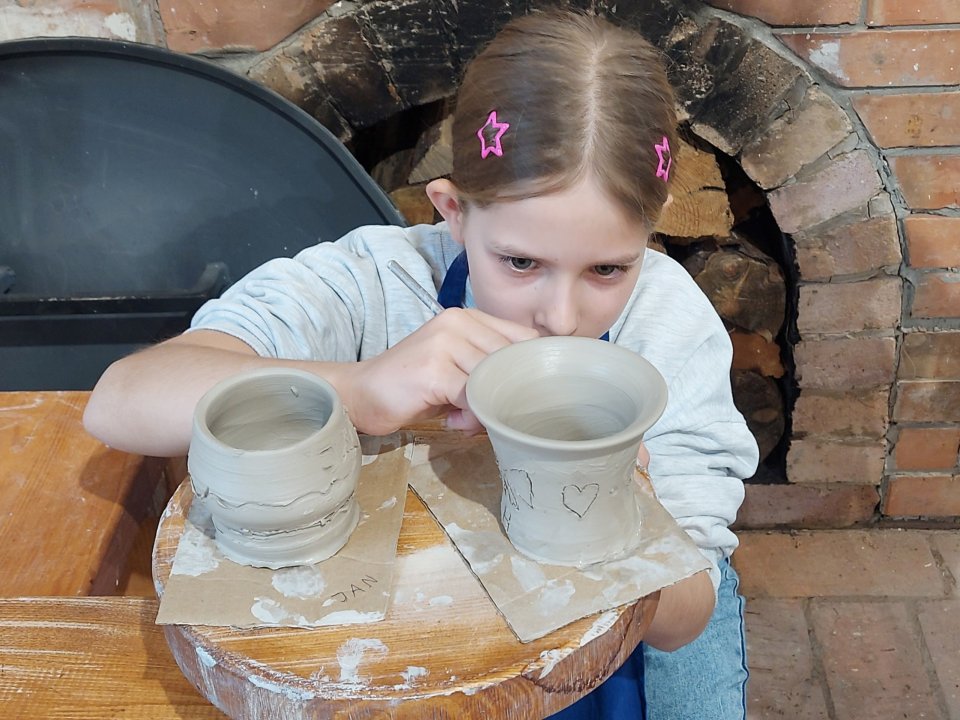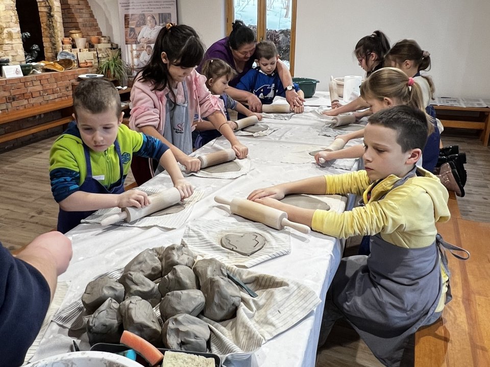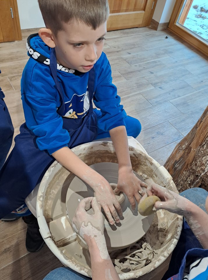 Dzieci uczęszczające na zajęcia feryjne organizowane przez Samorządowe Centrum Kultury spędziły ostatni dzień zajęć w Ośrodku Tradycji Garncarstwa w Chałupkach.