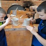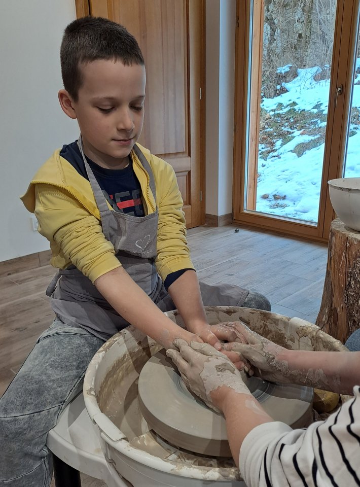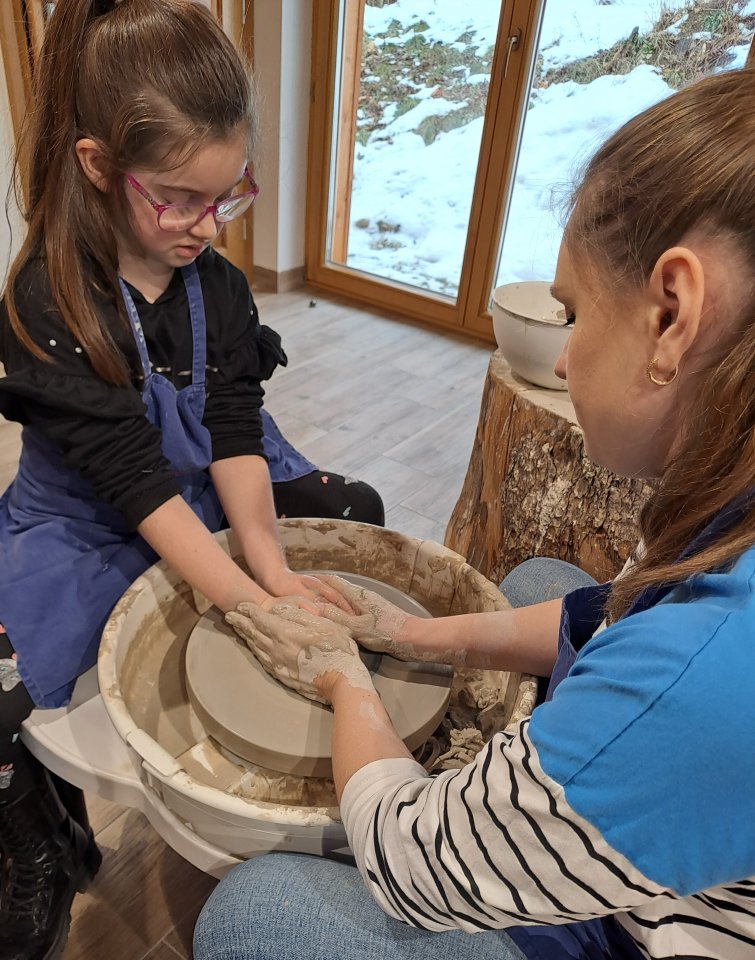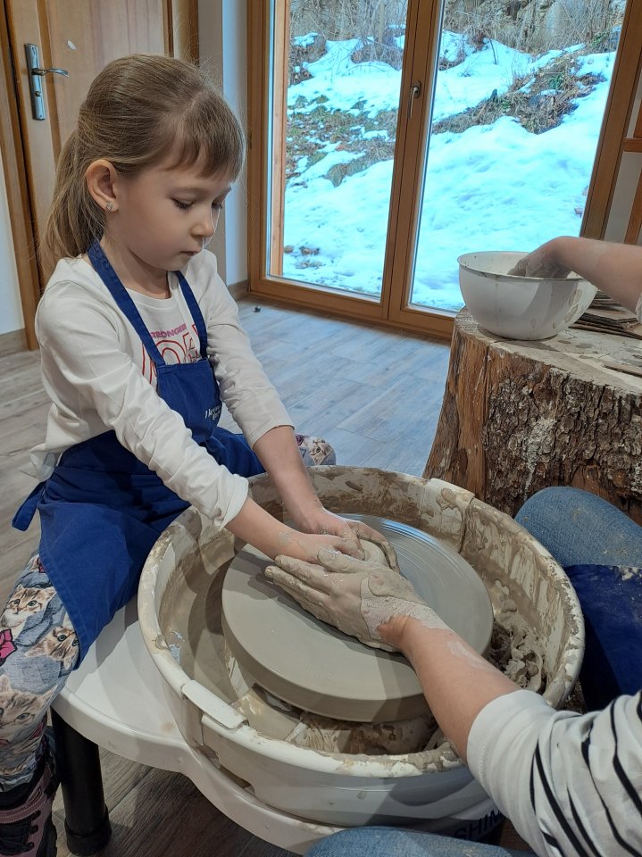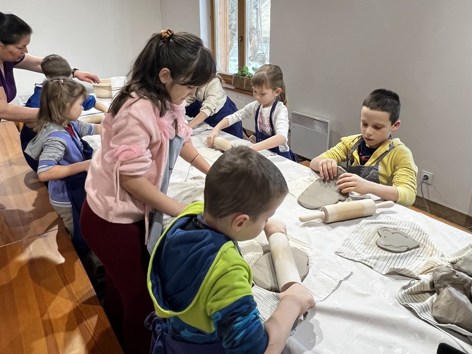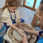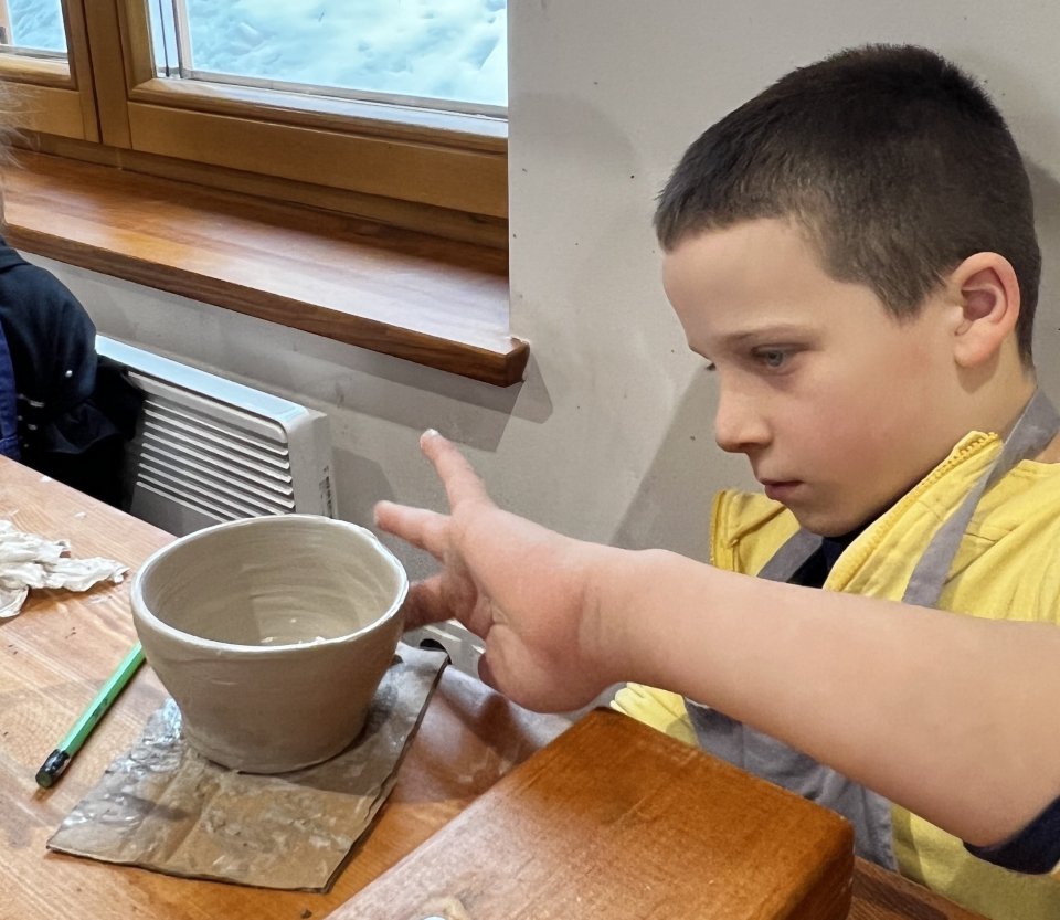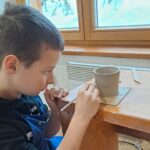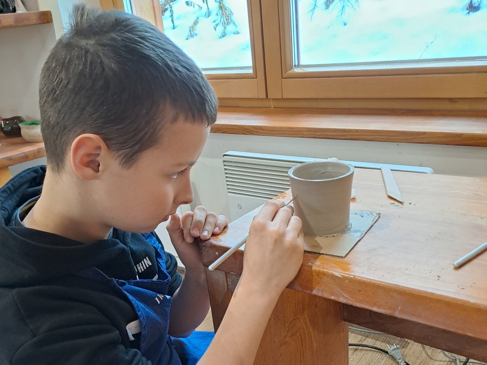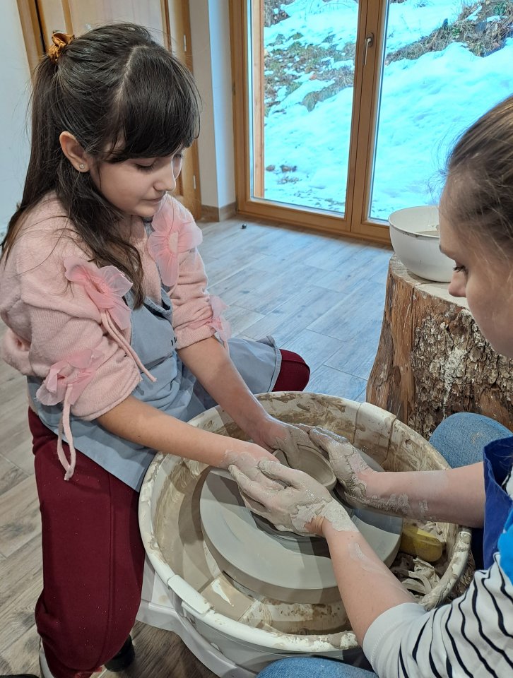 Dzieci uczęszczające na zajęcia feryjne organizowane przez Samorządowe Centrum Kultury spędziły ostatni dzień zajęć w Ośrodku Tradycji Garncarstwa w Chałupkach.