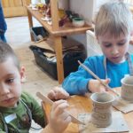 Dzieci w tym dniu doskonaliły swoje artystyczne umiejętności i poszerzały swoją wiedzę na temat tradycji garncarstwa. Pierwszym punktem wycieczki było Muzeum, gdzie dzieci poznały historię tego zanikającego rzemiosła i dowiedziały się jak dawniej tworzono użytkową ceramikę. W Sali ekspozycyjnej zwiedzający mogli obejrzeć przedmioty codziennego użytku, rzeźby sakralne oraz inne wyroby z gliny, stworzone przez słynnych artystów z terenu Miasta i Gminy Morawica.