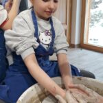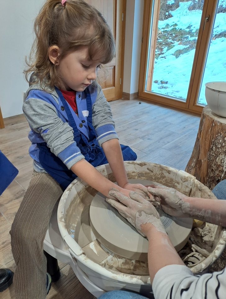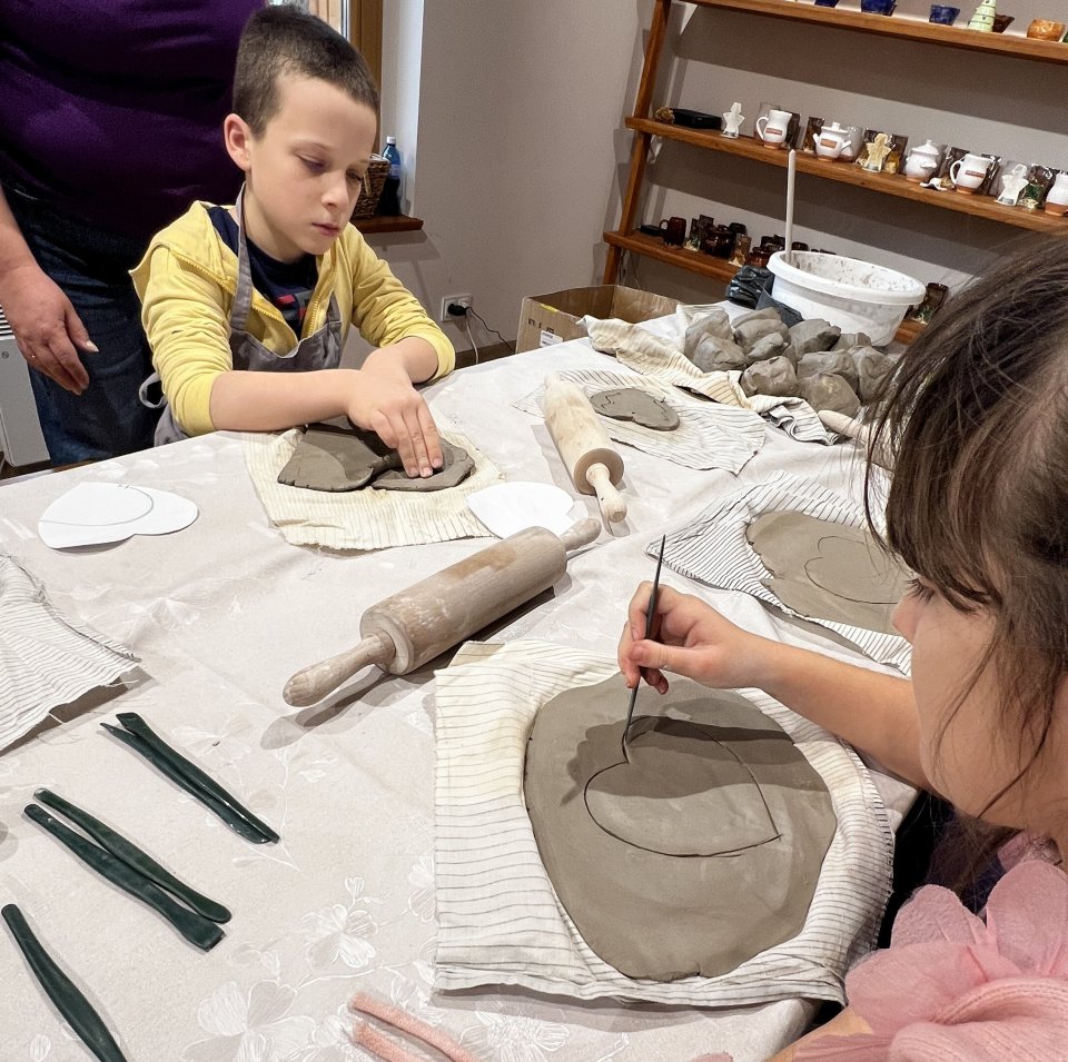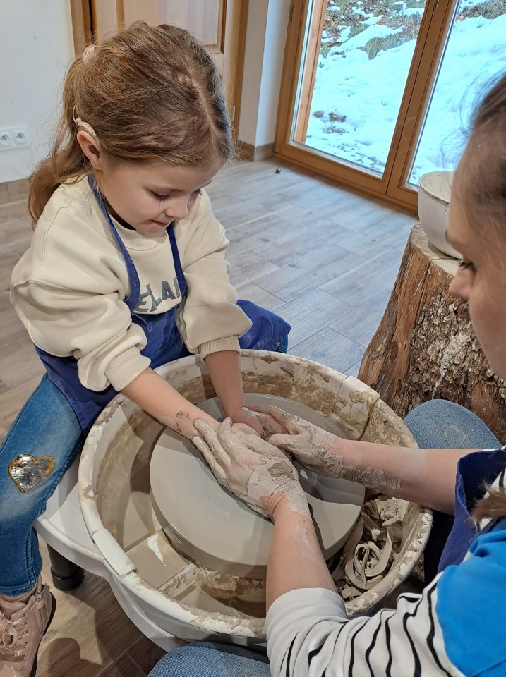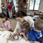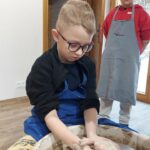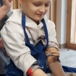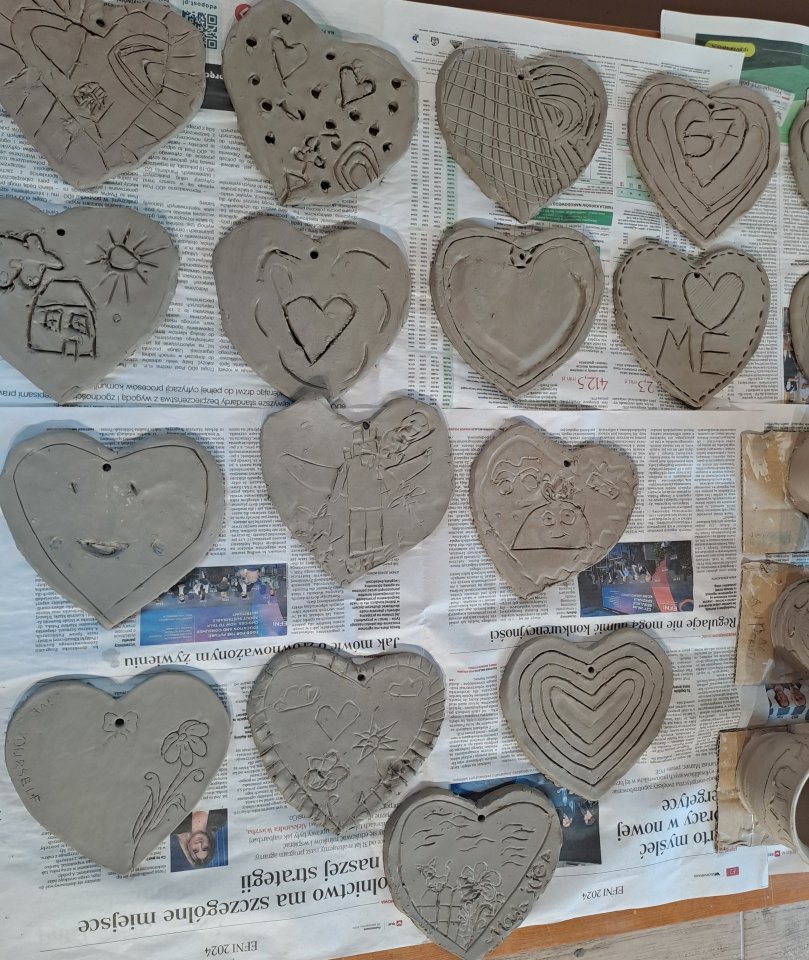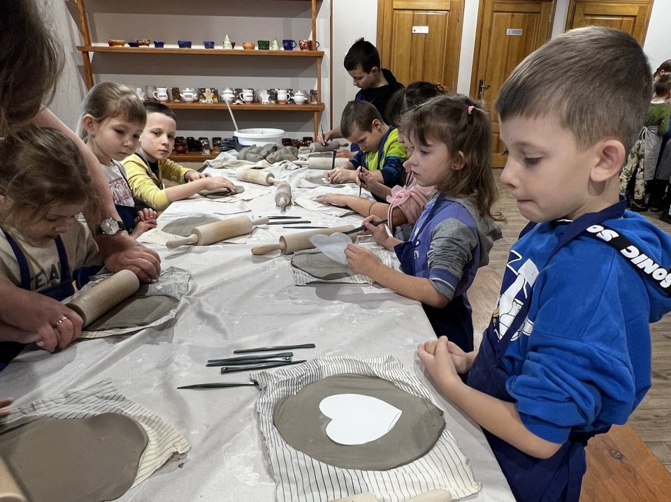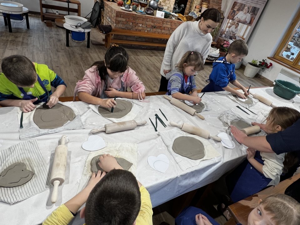 Następnie dzieci udały się do Chaty Garncarskiej, gdzie same spróbowały swoich sił w tym rzemiośle. Pod okiem specjalistek Pani Kingi Sabat i Pani Patrycji Ciszek, mali artyści stworzyli piękne dzieła o tematyce walentynkowej, które po wypaleniu będą mogli zabrać na pamiątkę.
