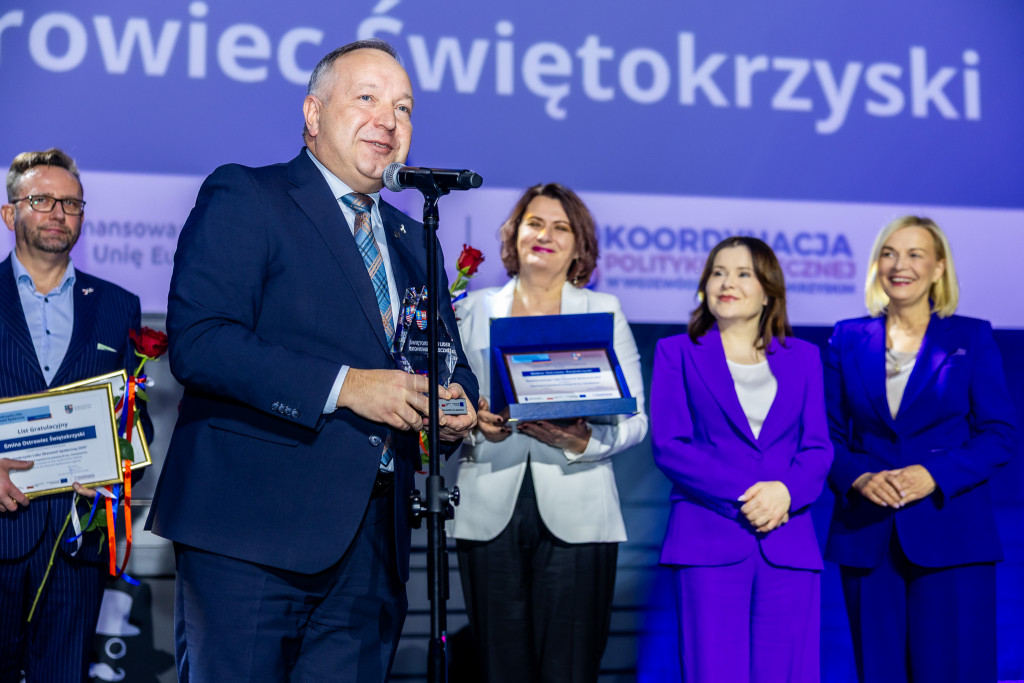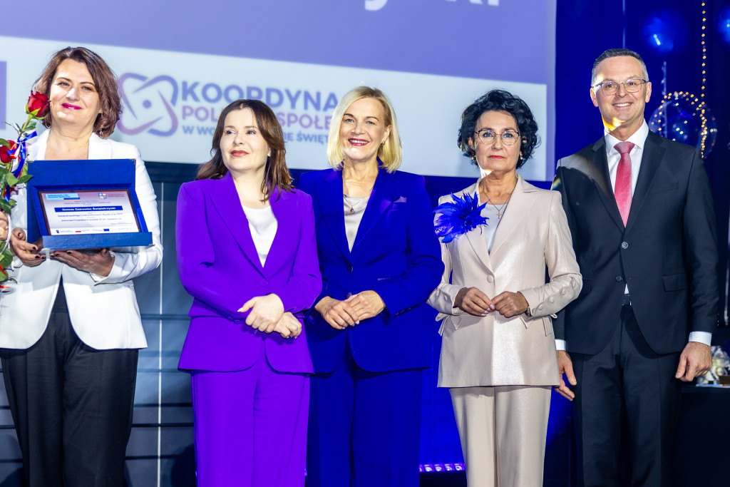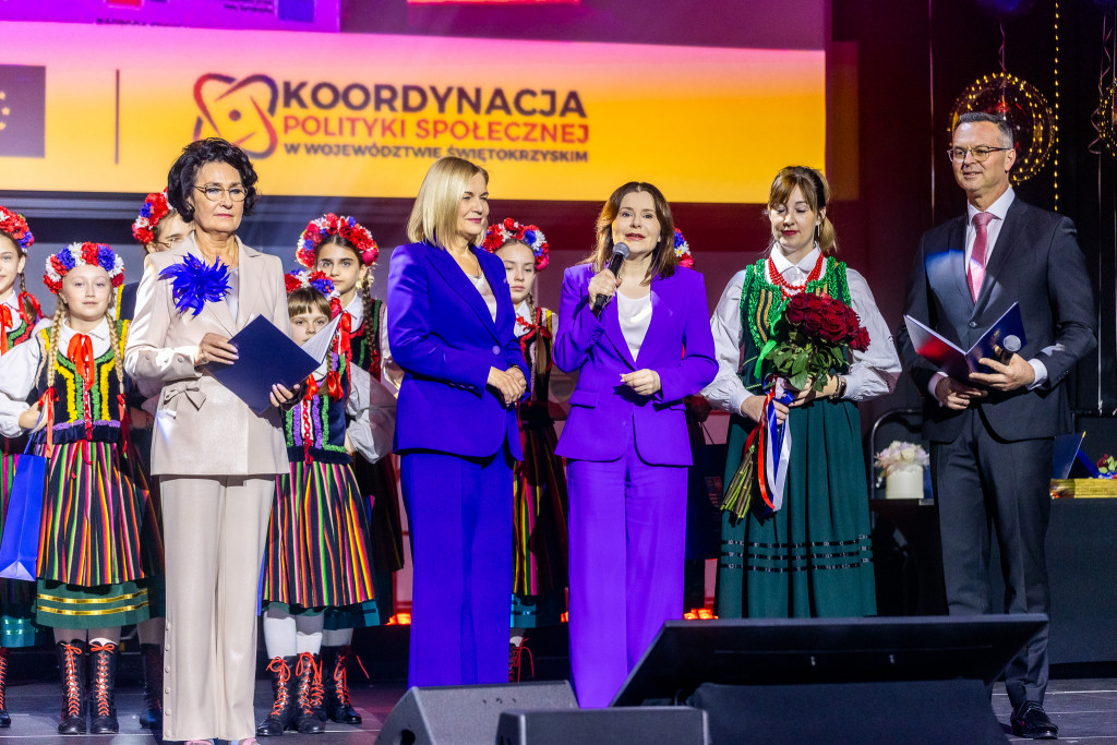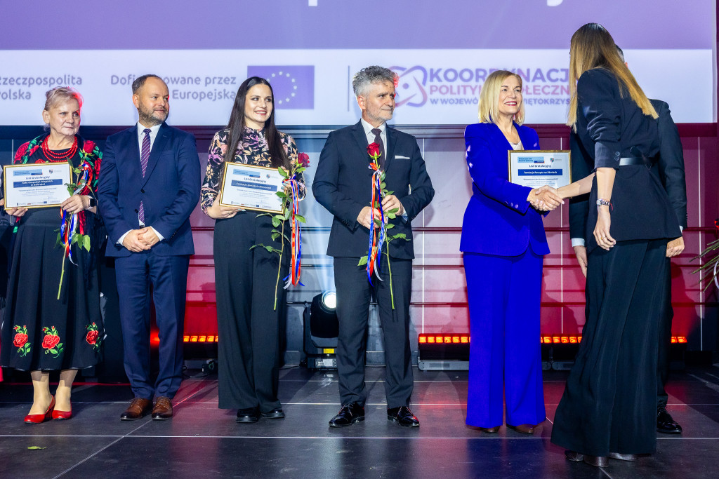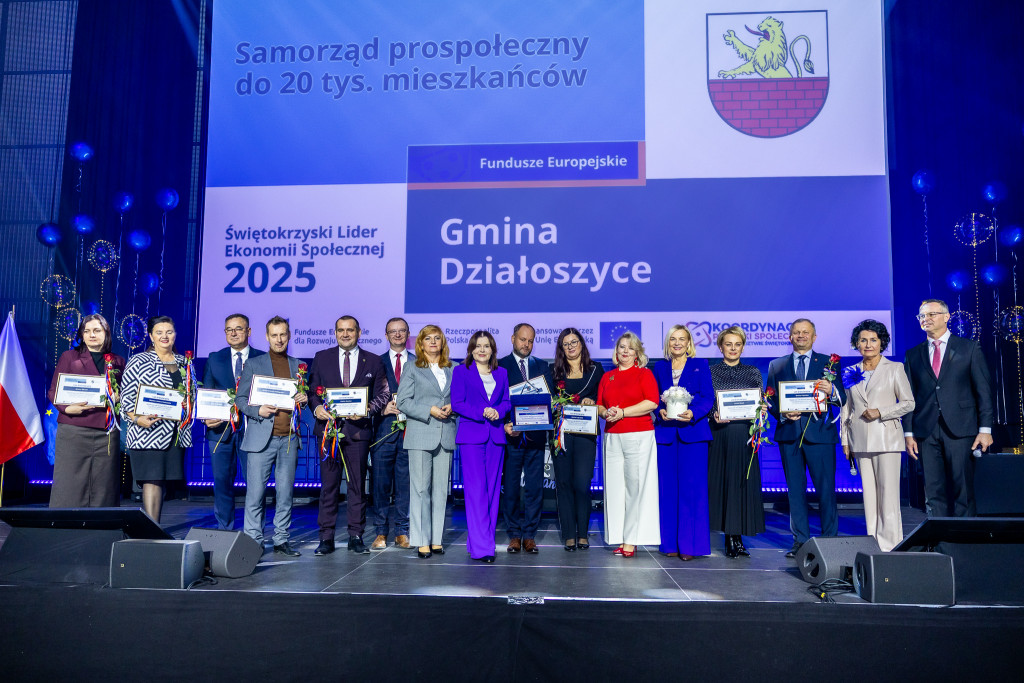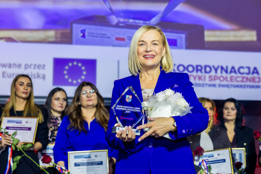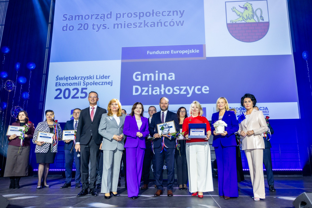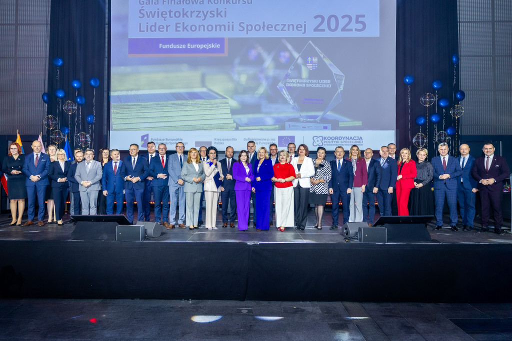 Na Targach Kielce odbyła się uroczysta Gala „Świętokrzyski Lider Ekonomii Społecznej 2025” – wydarzenie, na którym uhonorowano zaangażowane w działania prospołeczne samorządy, firmy i organizacje pozarządowe w regionie. Gospodarzem uroczystości była marszałek Renata Janik, która wraz z członkiem Zarządu Anitą Koniusz, poseł na Sejm Anną Krupką oraz senatorem RP Krzysztofem Słoniem wręczała listy gratulacyjne w poszczególnych kategoriach i statuetki laureatom IX edycji Nagrody. Wydarzenie odbyło się z udziałem radnych Sejmiku: wiceprzewodniczącej Sejmiku Magdaleny Zieleń, Małgorzaty Krzywdy, Grzegorza Cepila,  jak również dyrektor Departamentu Wdrażania Europejskiego Funduszu Społecznego Katarzyny Kubickiej. Galę poprowadziła dyrektor Regionalnego Ośrodka Polityki Społecznej Elżbieta Korus wraz z zastępcą Arkadiuszem Ślipikowskim. Wydarzenie było realizowane w ramach projektu „Koordynacja polityki społecznej w województwie świętokrzyskim” współfinansowanego z Funduszy Europejskich.