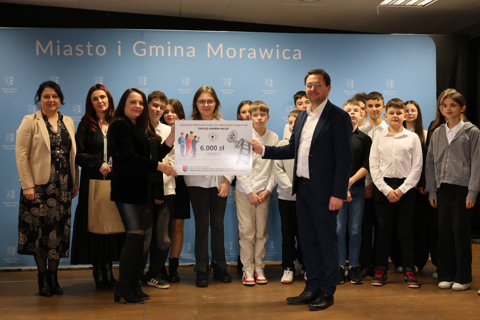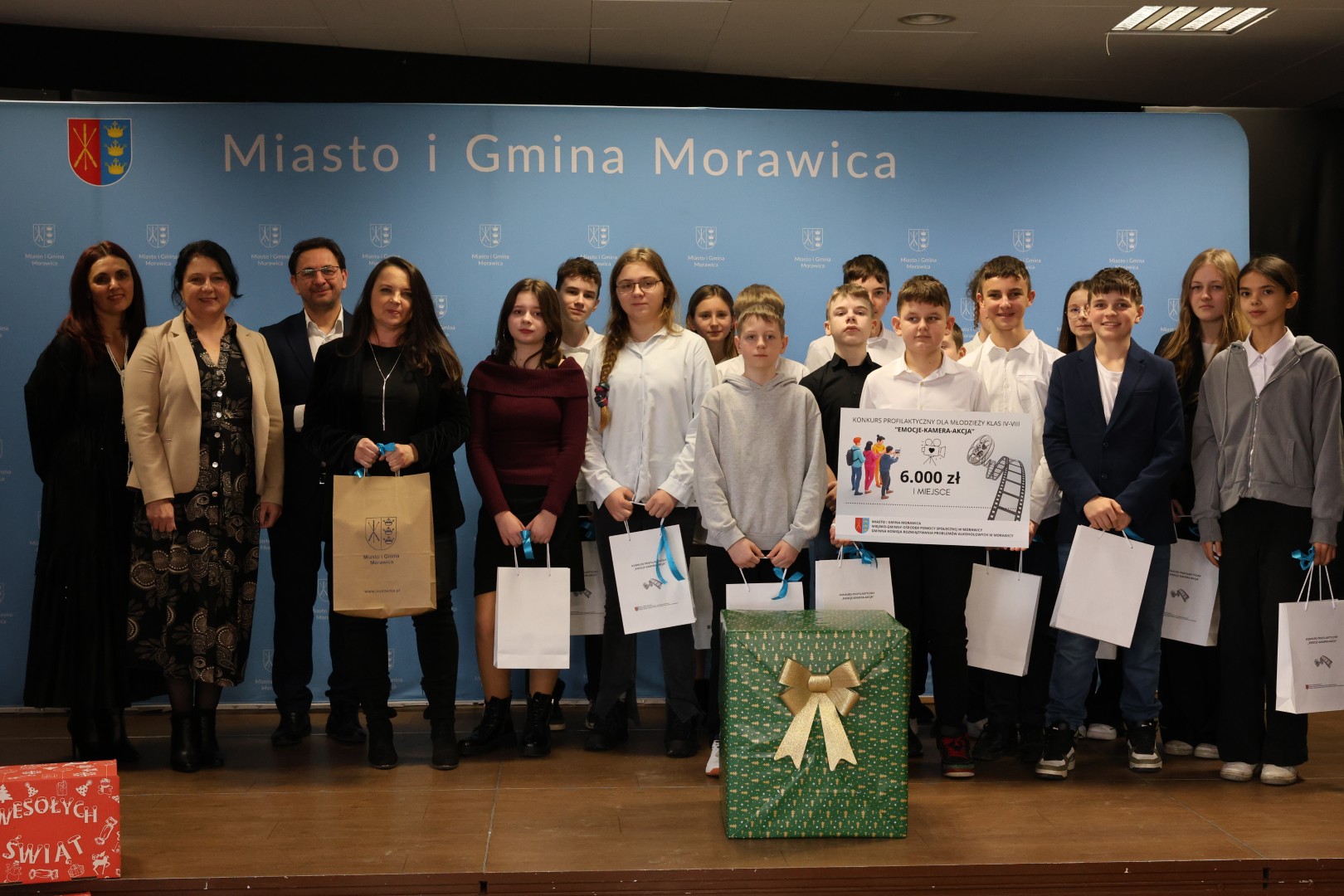 Dziś w sali konferencyjnej Samorządowego Centrum Kultury i Biblioteki w Morawicy odbyło się rozstrzygnięcie konkursu organizowanego przez Miejsko-Gminny Ośrodek Pomocy Społecznej pod nazwą „EMOCJE.KAMERA.AKCJA!”. Zadaniem uczestników było przygotowanie kampanii społecznej w formie filmu poruszającego temat zdrowia psychicznego młodzieży. Wyróżnienie otrzymała klasa IVB ze Szkoły Podstawowej w Morawicy, trzecie miejsce zajęła klasa VA również ze SP w Morawicy, drugie miejsce przyznano klasie VII ze Szkoły Podstawowej w Obicach, a pierwsze miejsce zdobyła klasa VII ze Szkoły Podstawowej w Dębskiej Woli. Serdecznie zachęcamy do obejrzenia fotorelacji z wydarzenia!