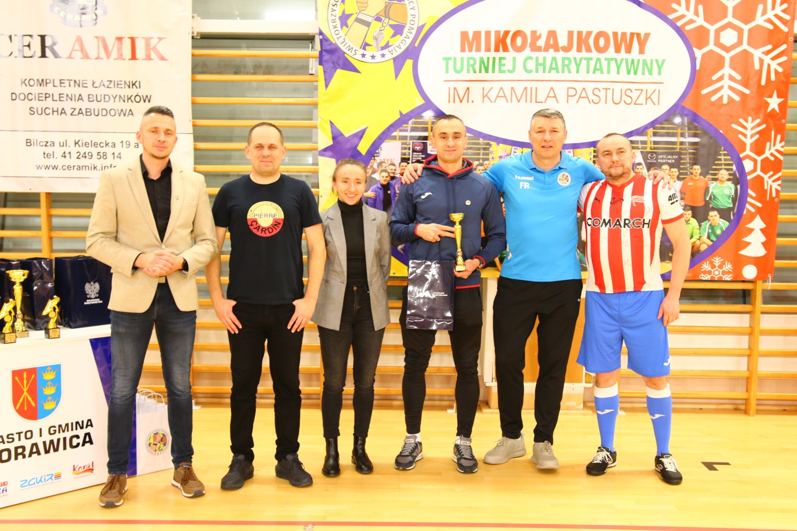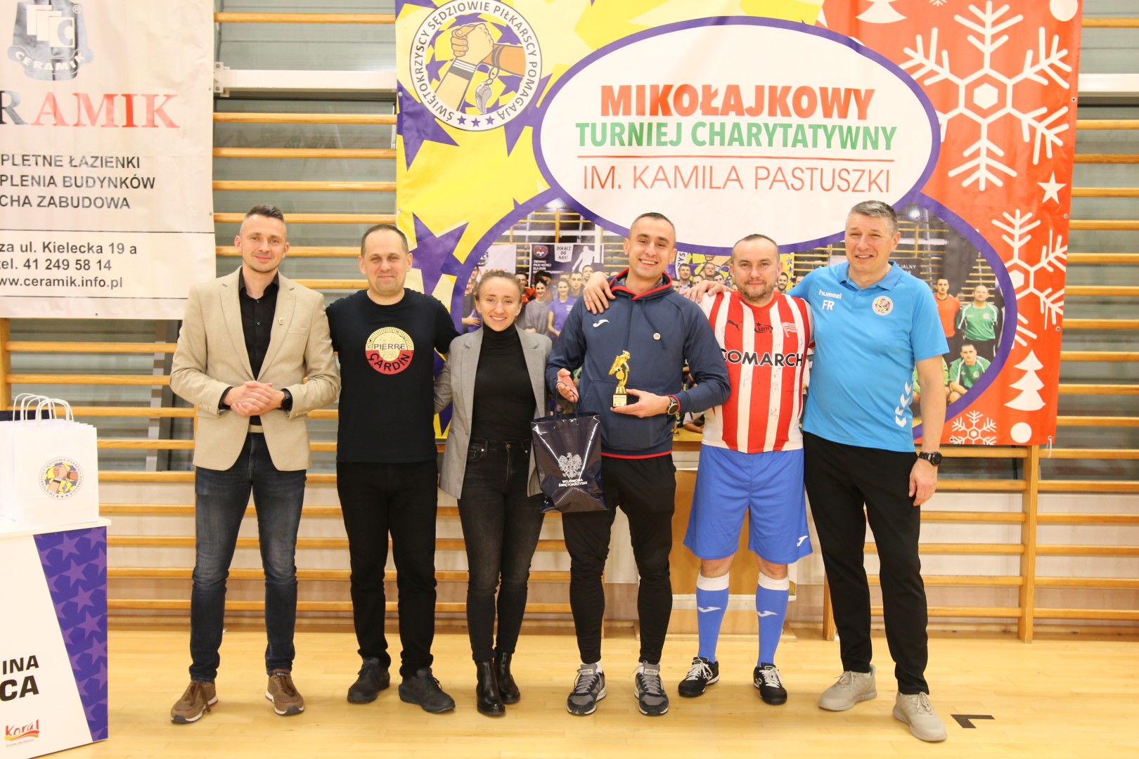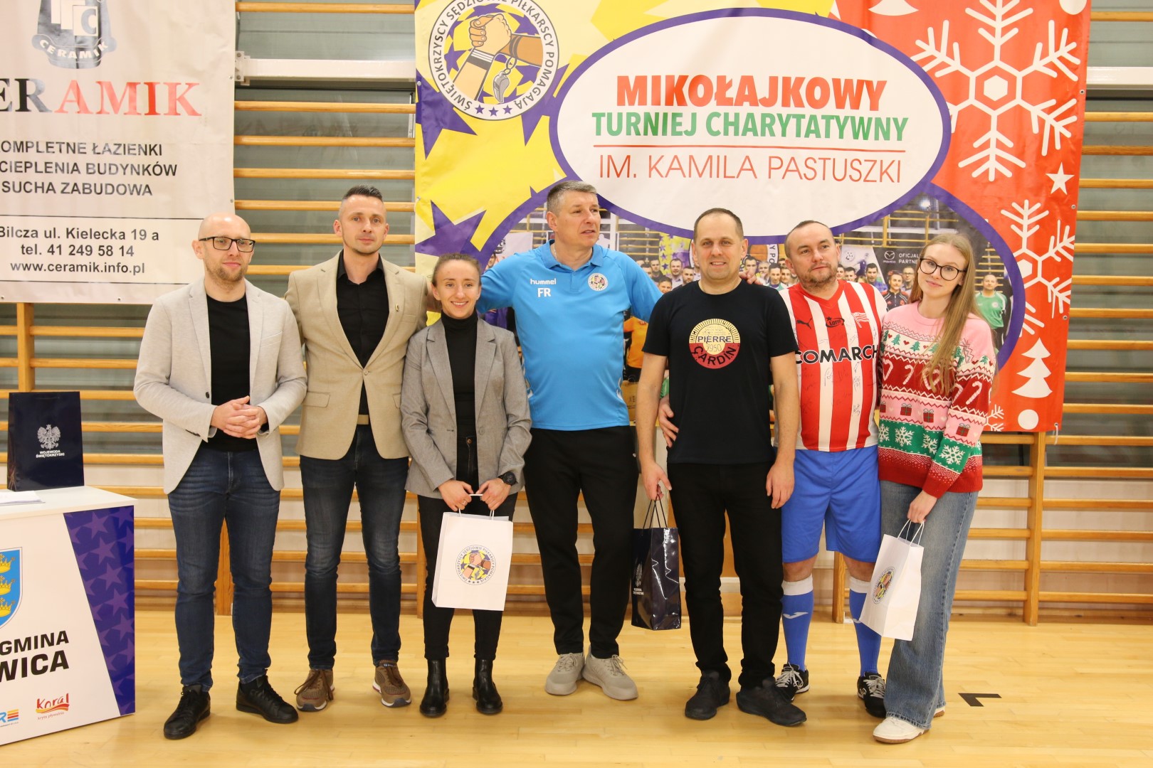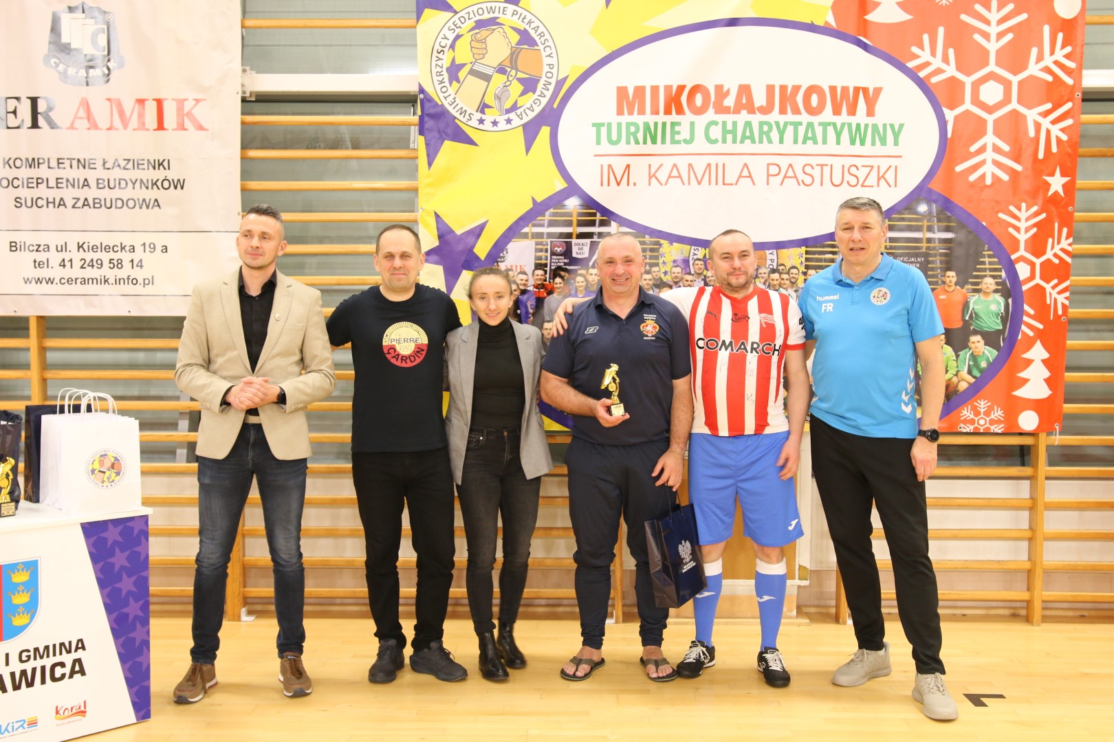 Za nami VIII Mikołajkowy Turniej Charytatywny im. Kamila Pastuszki, zorganizowany przez Stowarzyszenie Świętokrzyscy Sędziowie Piłkarscy Pomagają. Zawody odbyły się 6 grudnia w Hali Sportowej „Bilcza”. Wydarzenie ponownie połączyło sportowe emocje z realnym wsparciem dla potrzebujących. Tegoroczna edycja została rozegrana na rzecz dzieci tragicznie zmarłego trenera Alitu Ożarów – Damiana Jędrzejewskiego. Poniżej prezentujemy galerię zdjęć z zawodów.