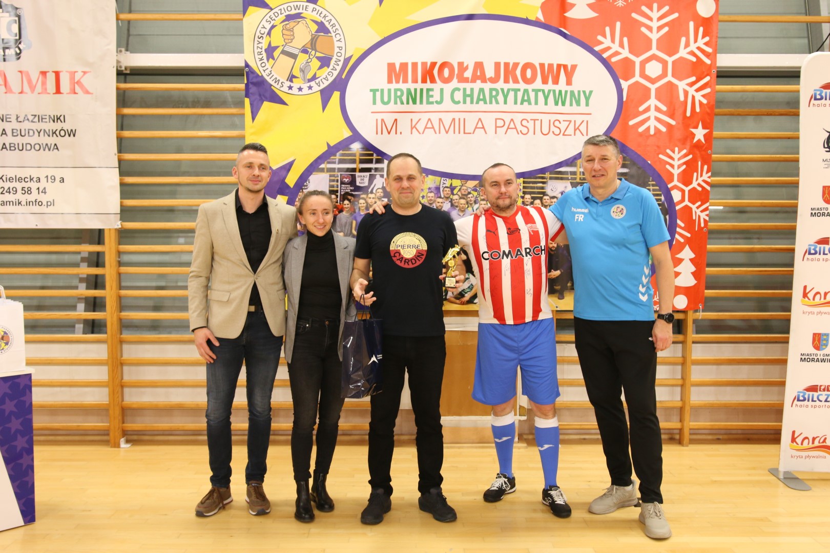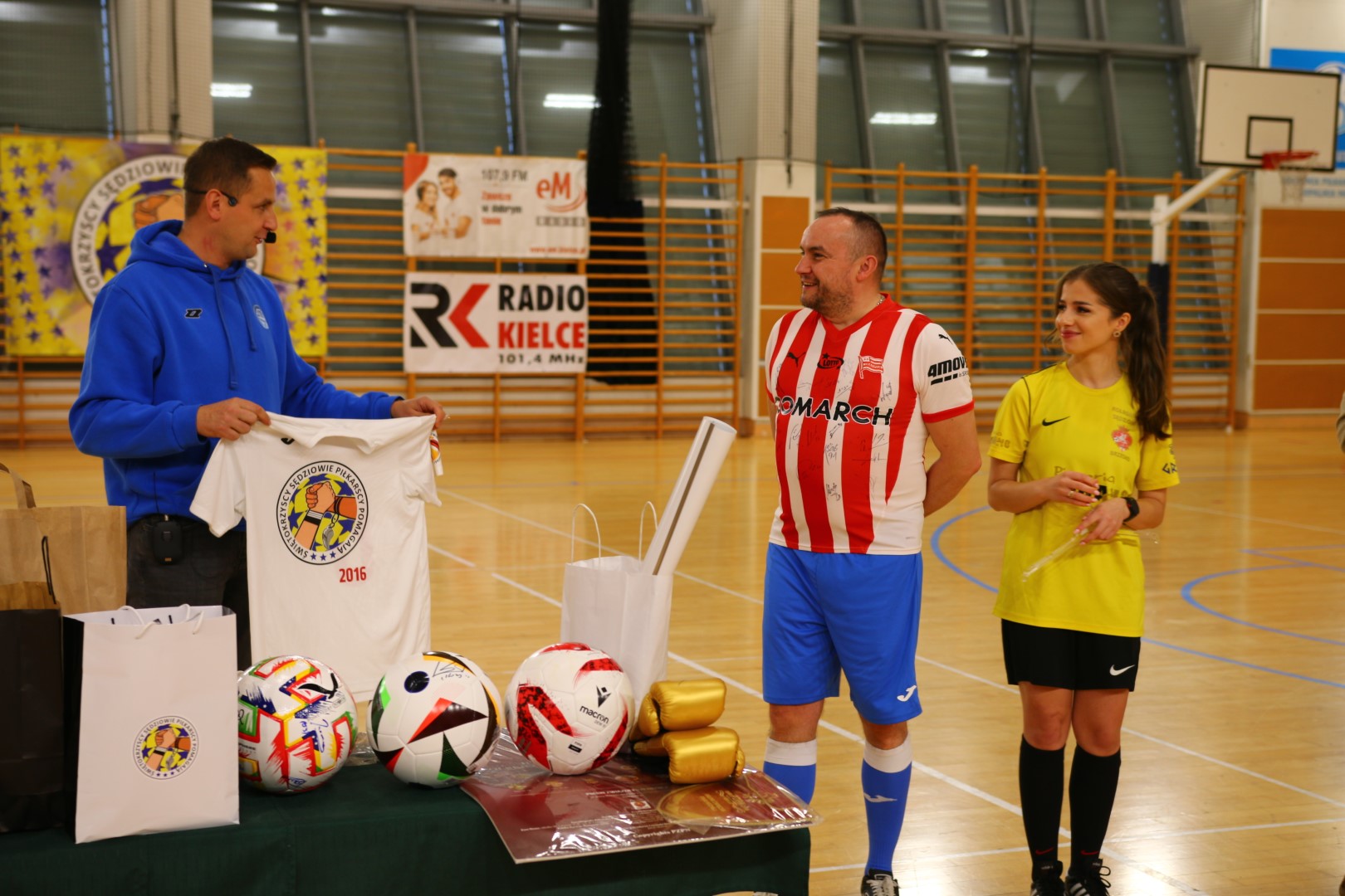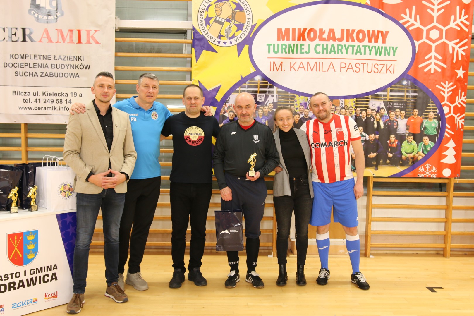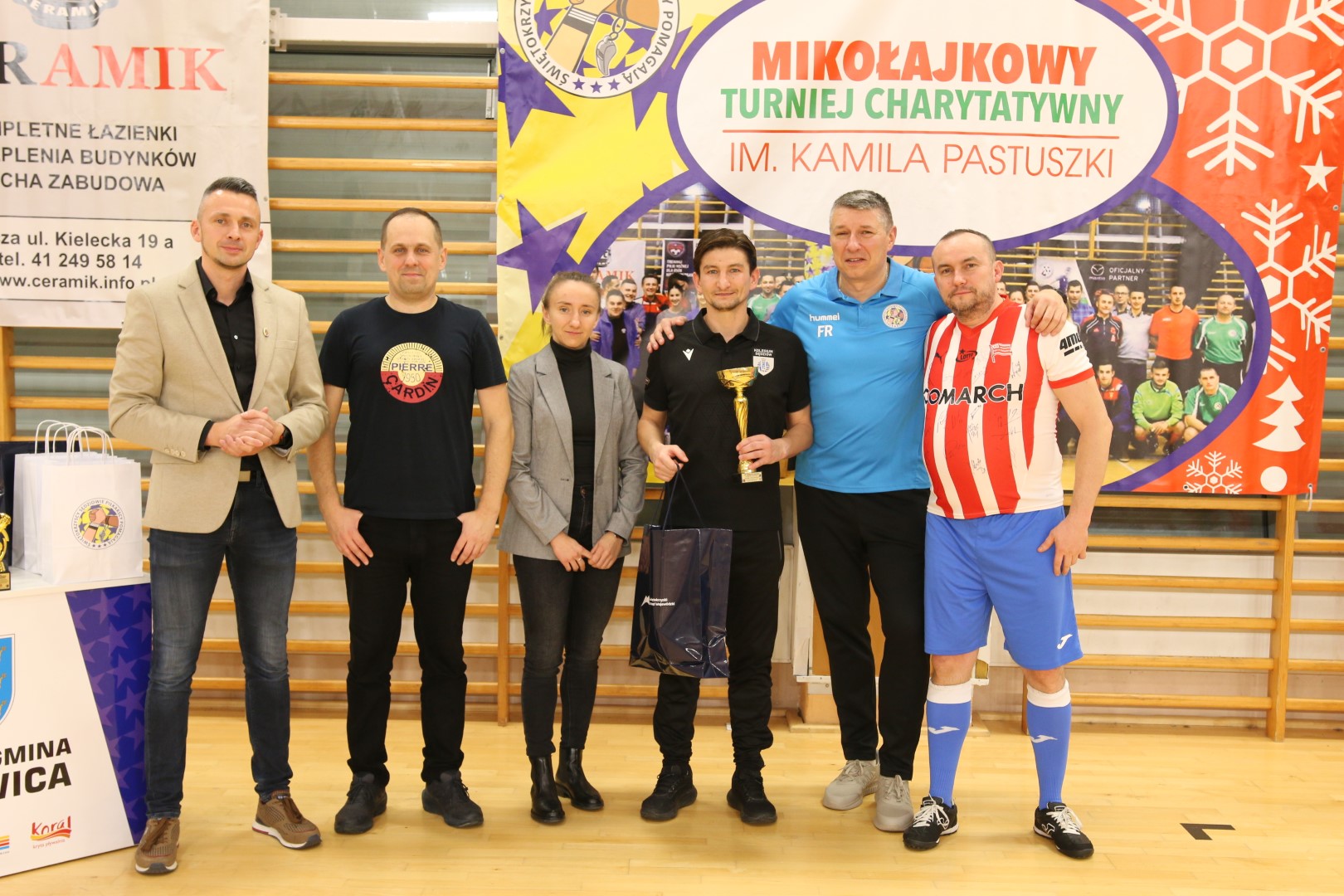 Za nami VIII Mikołajkowy Turniej Charytatywny im. Kamila Pastuszki, zorganizowany przez Stowarzyszenie Świętokrzyscy Sędziowie Piłkarscy Pomagają. Zawody odbyły się 6 grudnia w Hali Sportowej „Bilcza”. Wydarzenie ponownie połączyło sportowe emocje z realnym wsparciem dla potrzebujących. Tegoroczna edycja została rozegrana na rzecz dzieci tragicznie zmarłego trenera Alitu Ożarów – Damiana Jędrzejewskiego. Poniżej prezentujemy galerię zdjęć z zawodów.