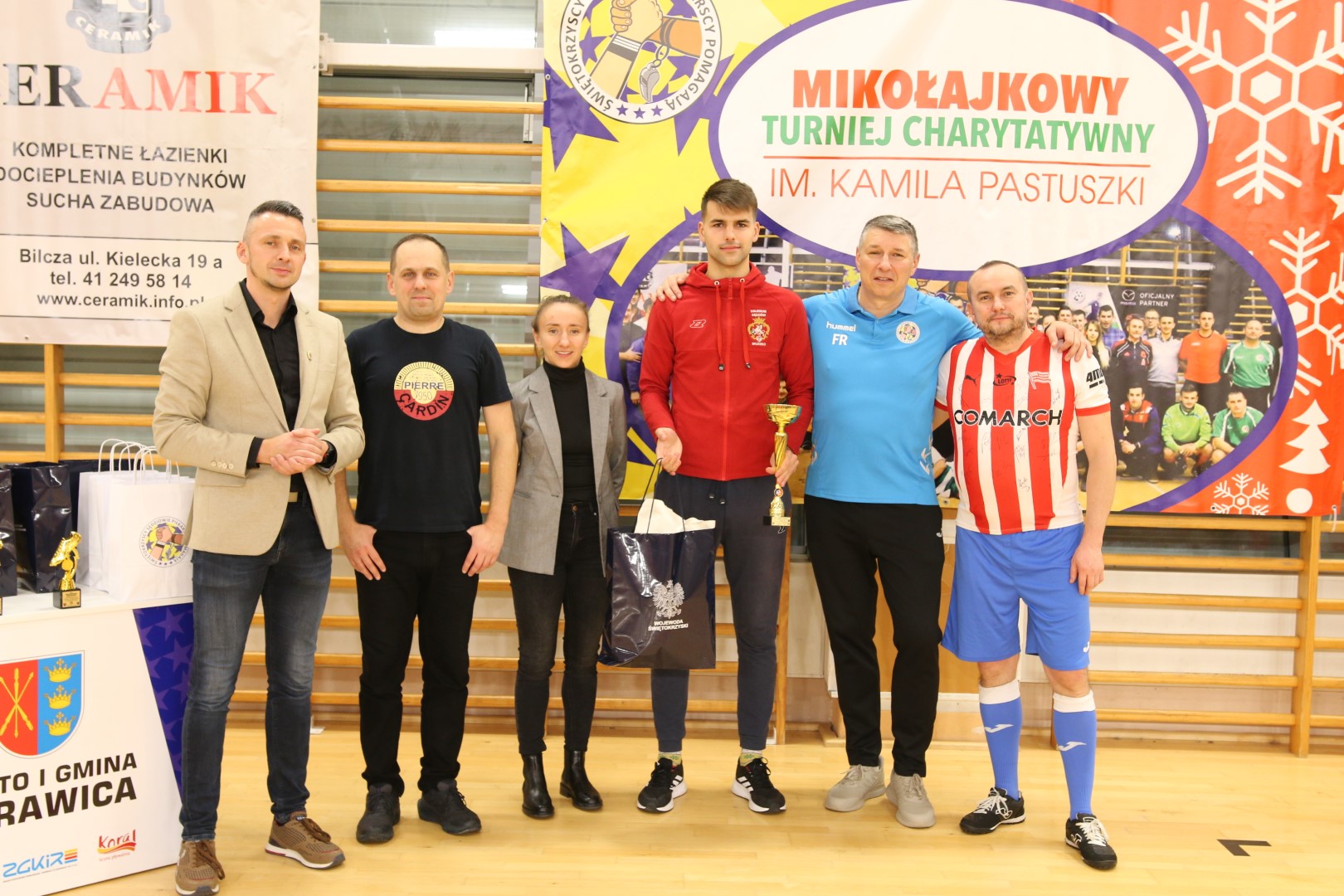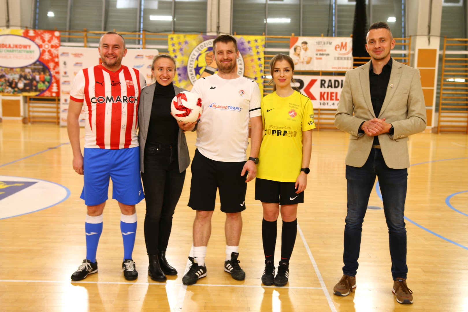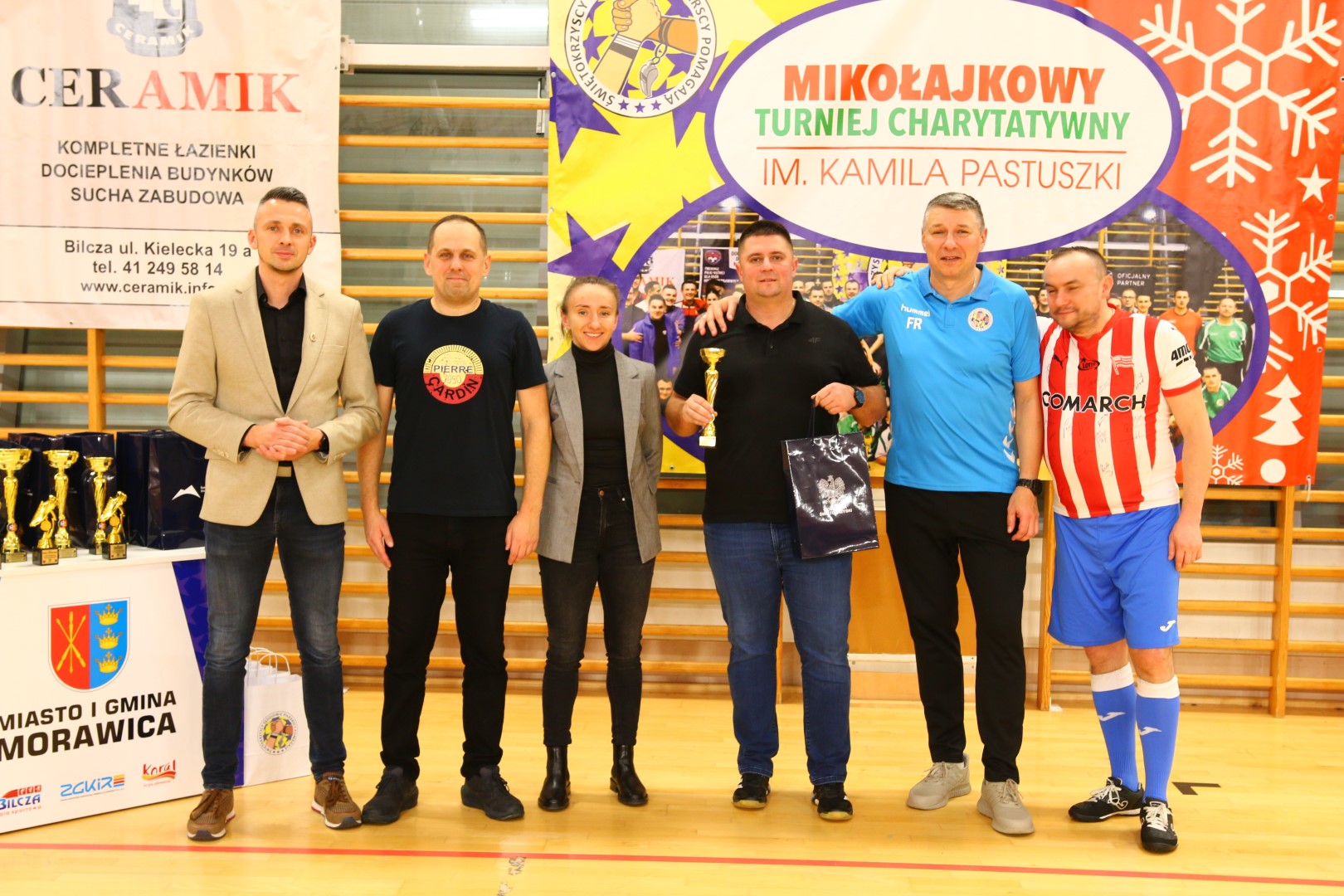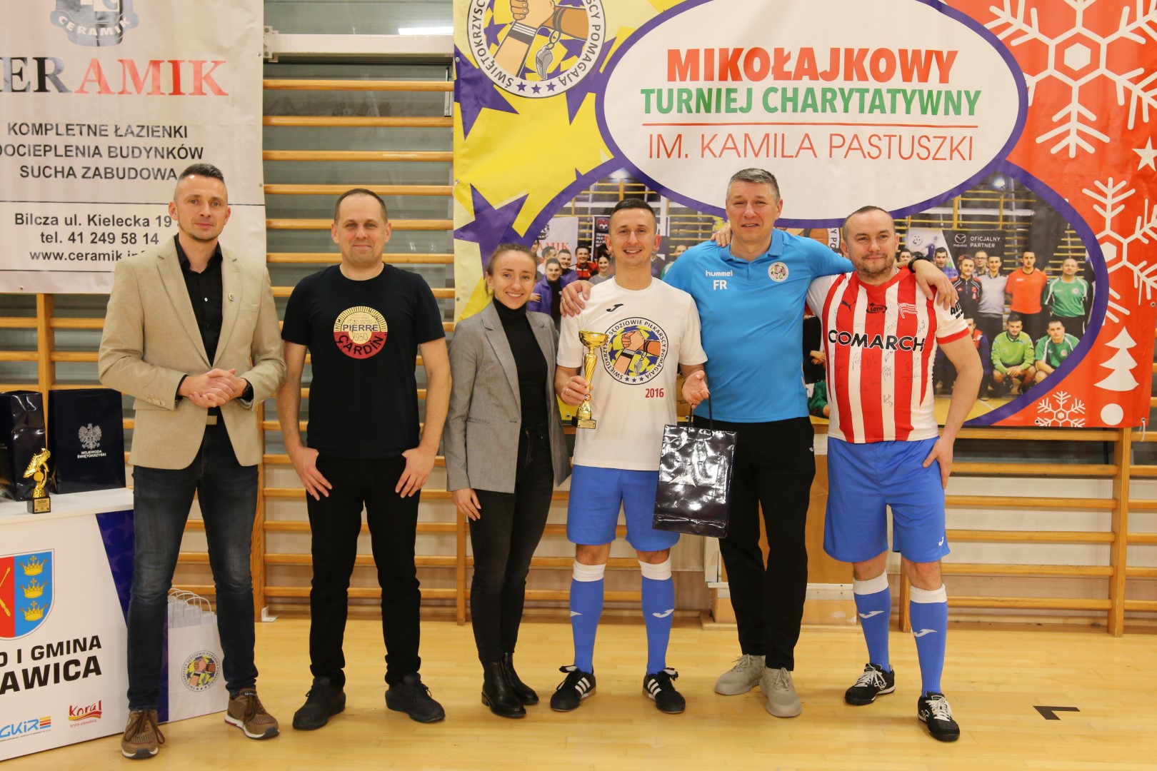 Za nami VIII Mikołajkowy Turniej Charytatywny im. Kamila Pastuszki, zorganizowany przez Stowarzyszenie Świętokrzyscy Sędziowie Piłkarscy Pomagają. Zawody odbyły się 6 grudnia w Hali Sportowej „Bilcza”. Wydarzenie ponownie połączyło sportowe emocje z realnym wsparciem dla potrzebujących. Tegoroczna edycja została rozegrana na rzecz dzieci tragicznie zmarłego trenera Alitu Ożarów – Damiana Jędrzejewskiego. Poniżej prezentujemy galerię zdjęć z zawodów.