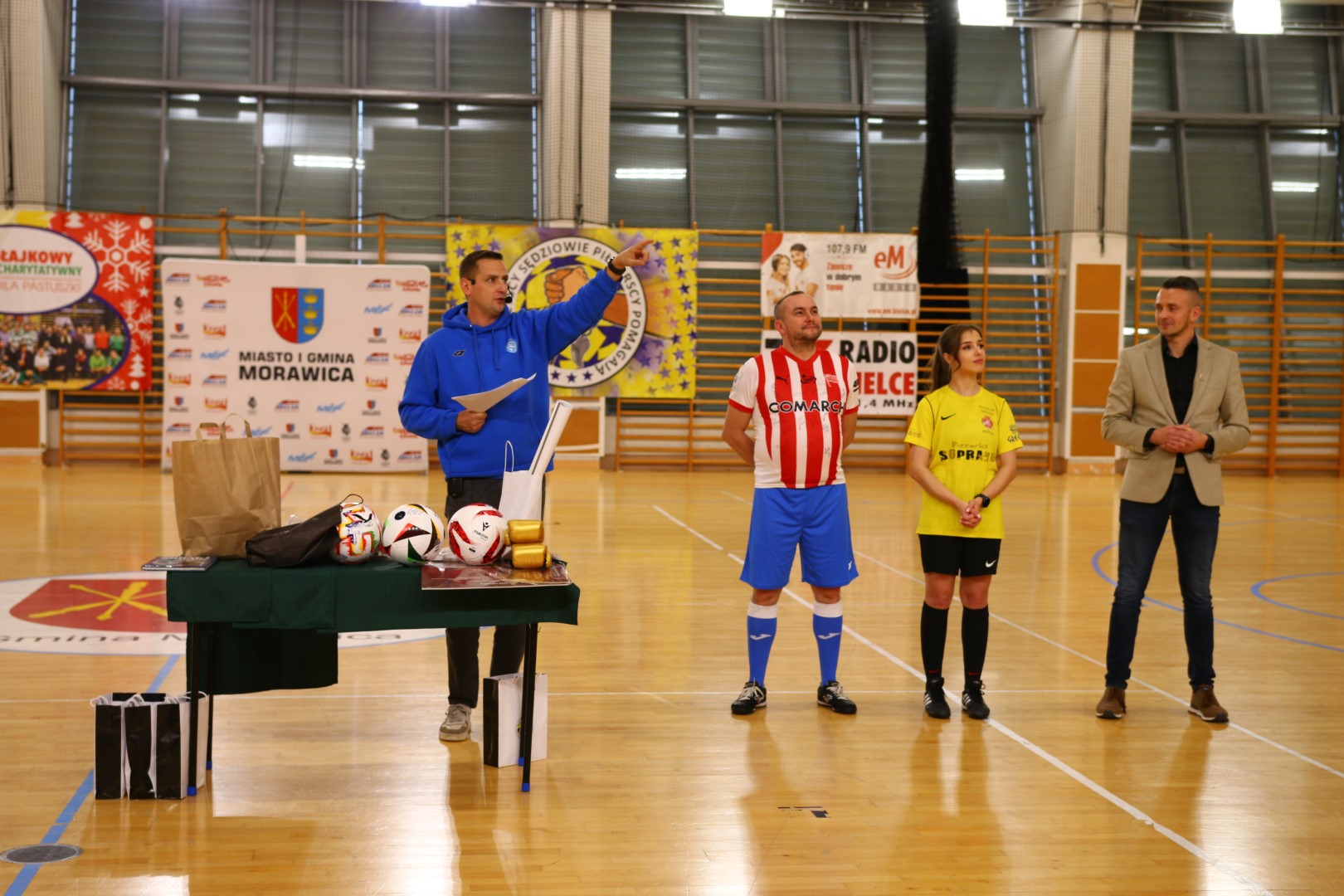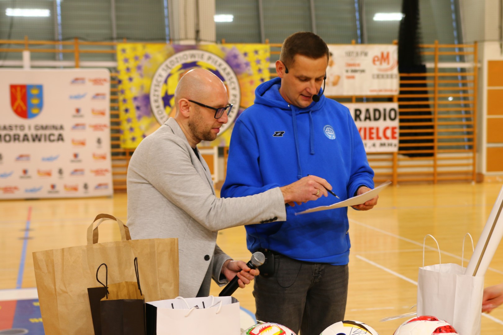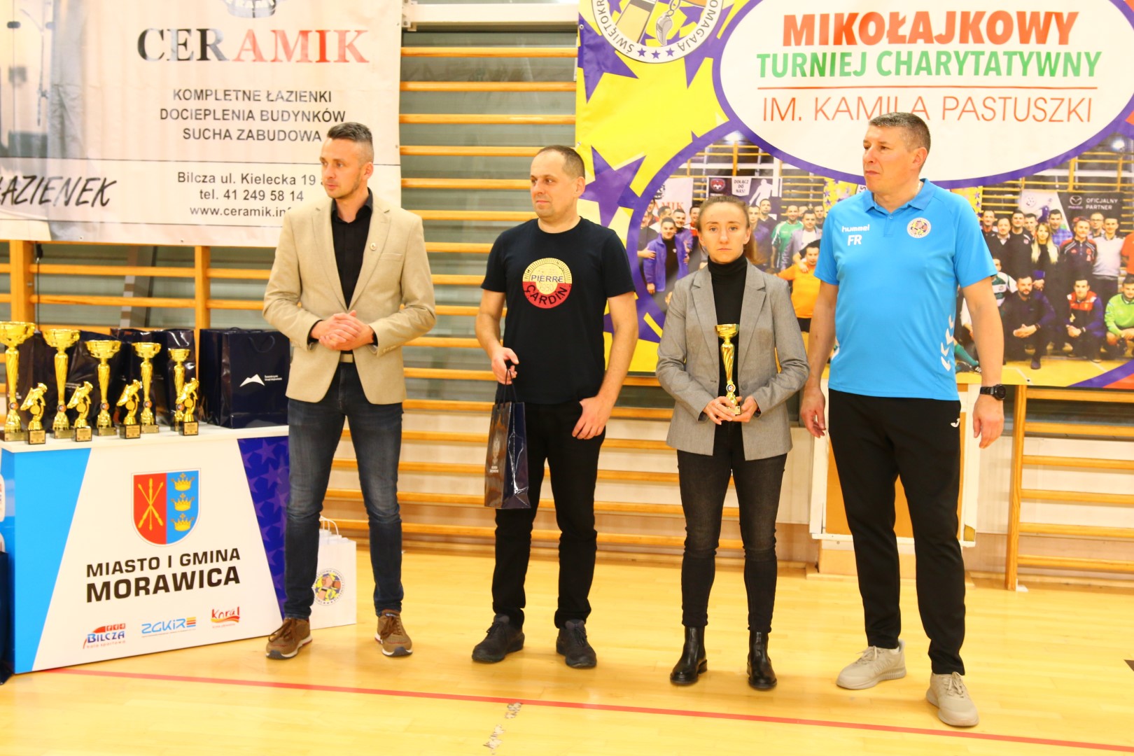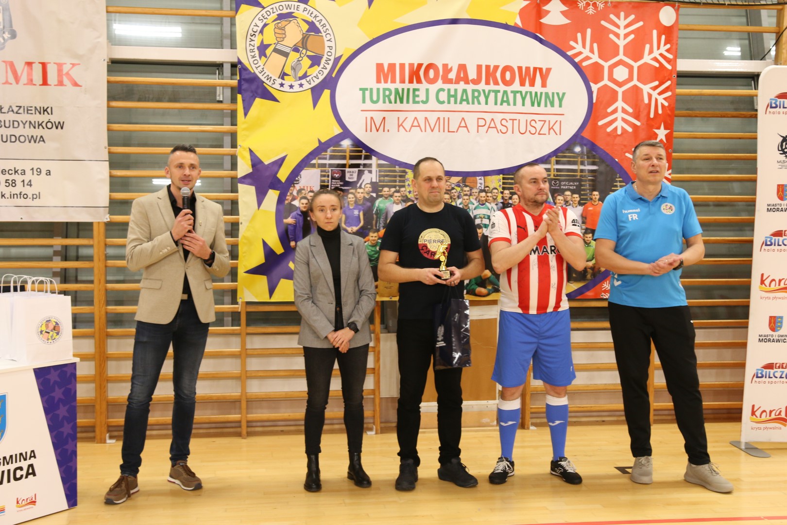Za nami VIII Mikołajkowy Turniej Charytatywny im. Kamila Pastuszki, zorganizowany przez Stowarzyszenie Świętokrzyscy Sędziowie Piłkarscy Pomagają. Zawody odbyły się 6 grudnia w Hali Sportowej „Bilcza”. Wydarzenie ponownie połączyło sportowe emocje z realnym wsparciem dla potrzebujących. Tegoroczna edycja została rozegrana na rzecz dzieci tragicznie zmarłego trenera Alitu Ożarów – Damiana Jędrzejewskiego. Poniżej prezentujemy galerię zdjęć z zawodów.
