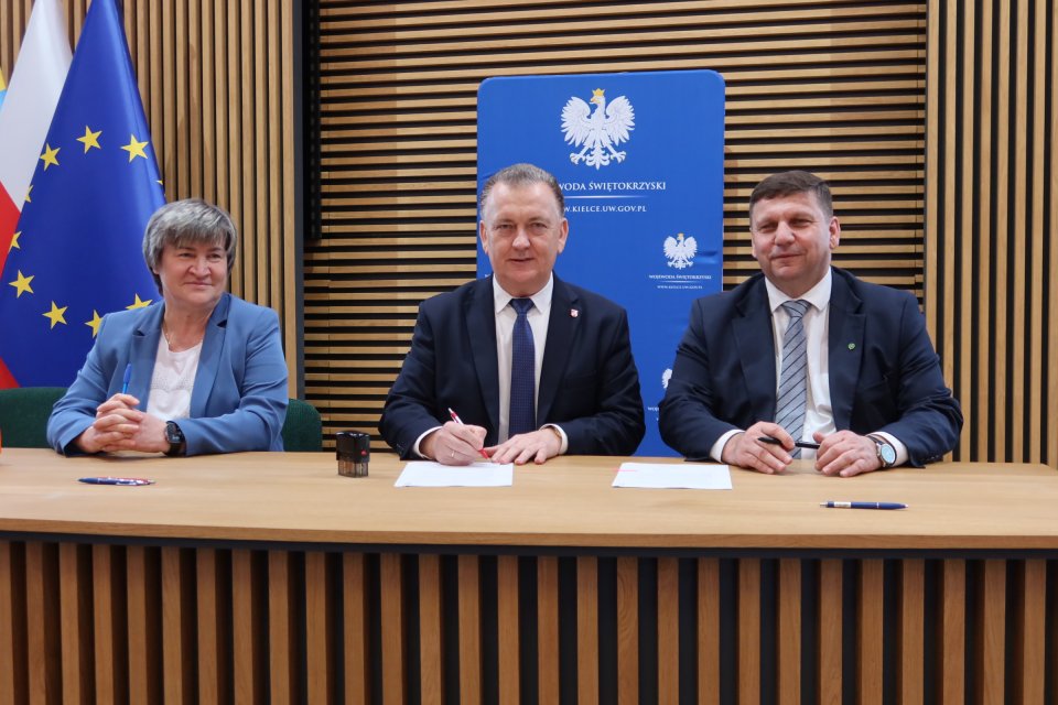 Umowę z wicewojewodą świętokrzyskim Michałem Skotnickim podpisał burmistrz Gminy i Miasta Chęciny Robert Jaworski wraz ze skarbnik Gminy i Miasta Chęciny Jadwigą Sinkiewicz. Pozyskane środki pochodzą z Funduszu Solidarnościowego.