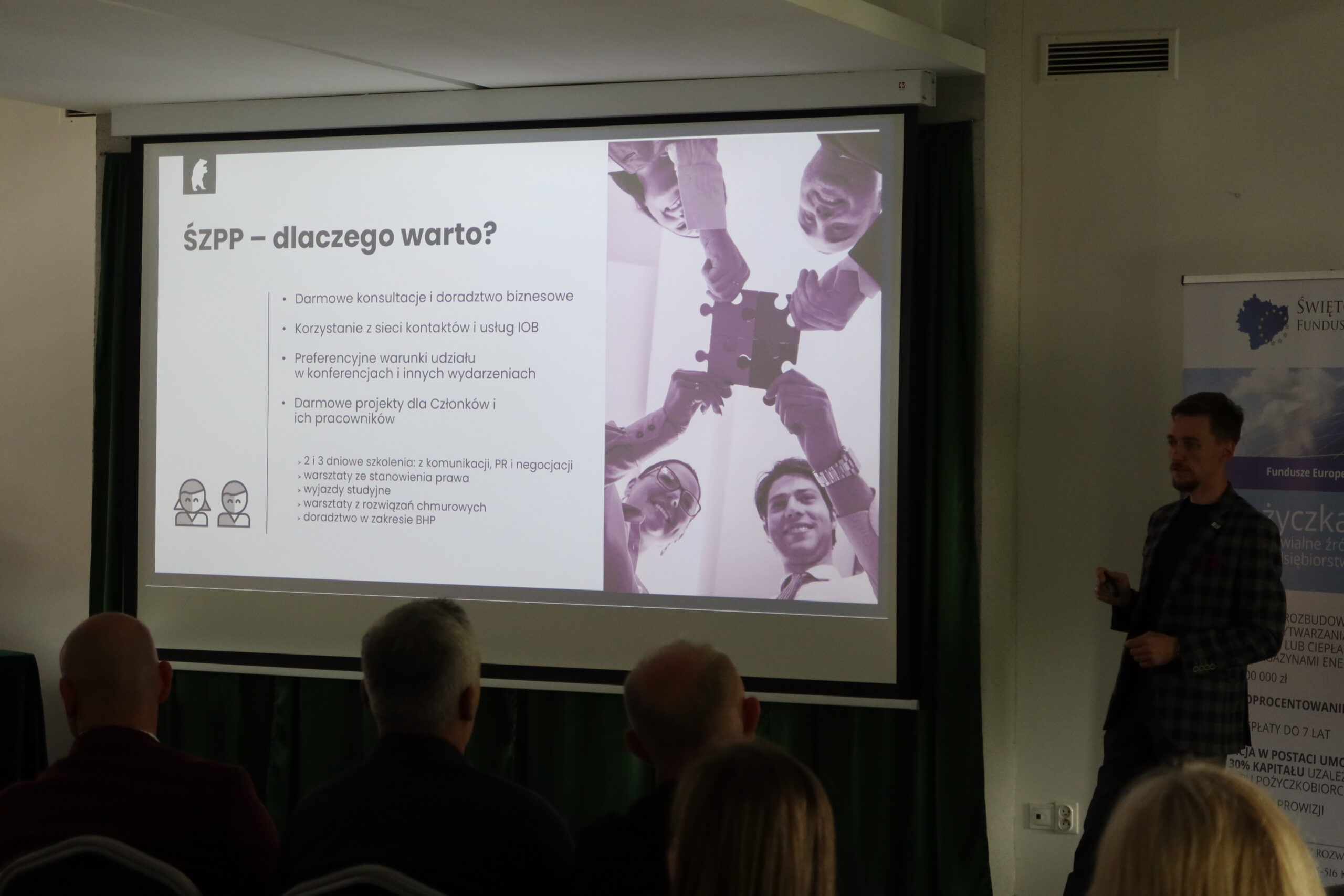 Głos zabrał także Łukasz Bilski, reprezentujący Świętokrzyski Związek Przedsiębiorców i Pracodawców. – Jestem pod ogromnym wrażeniem frekwencji i zainteresowania tym spotkaniem. Gratuluję pani burmistrz tak skutecznej integracji z lokalnym środowiskiem przedsiębiorców. Zachęcam Państwa do skorzystania z oferty naszego Związku, pomagamy nie tylko w pozyskiwaniu środków zewnętrznych, ale również integrujemy środowisko biznesowe i wspieramy jego interesy – mówi Łukasz Bilski ze Świętokrzyskiego Związku Przedsiębiorców i Pracodawców.