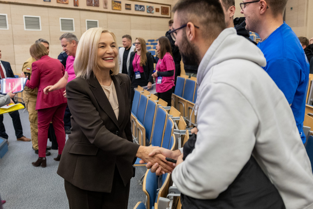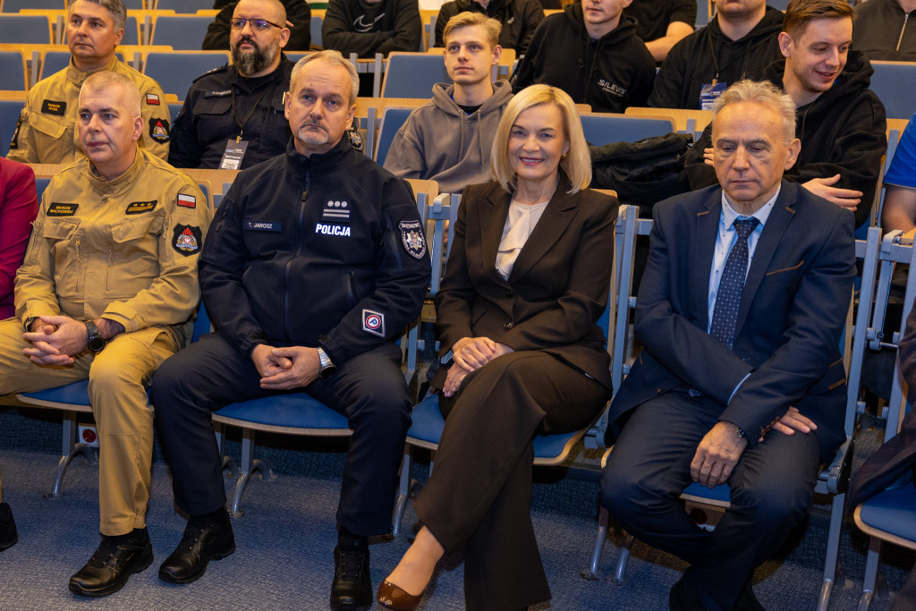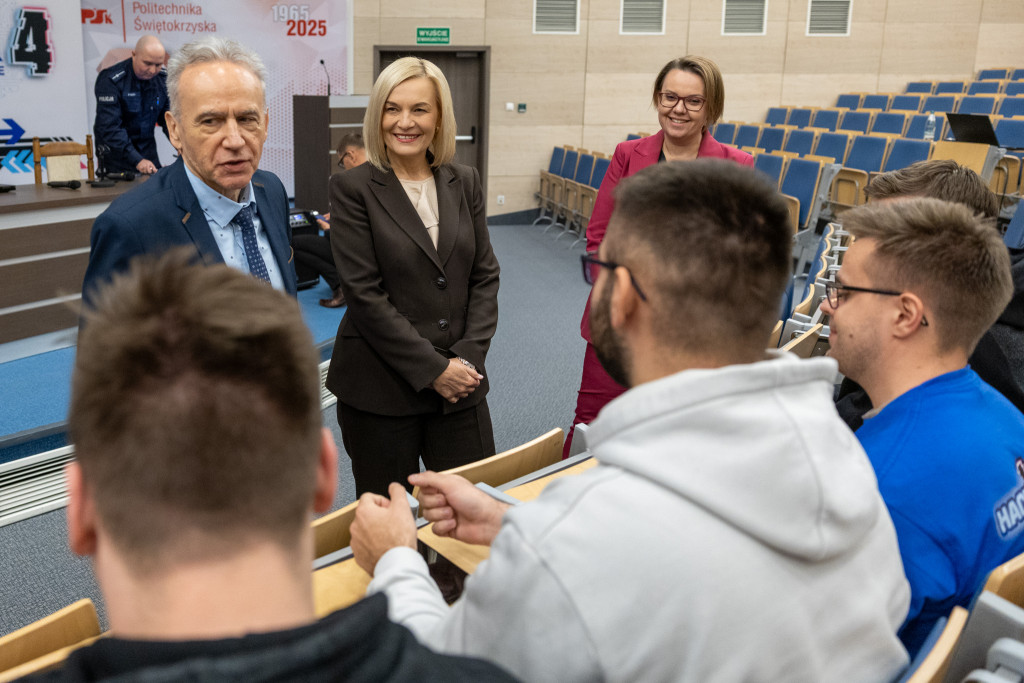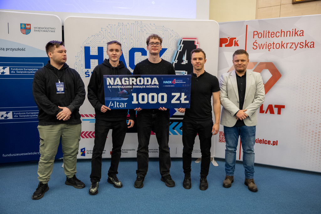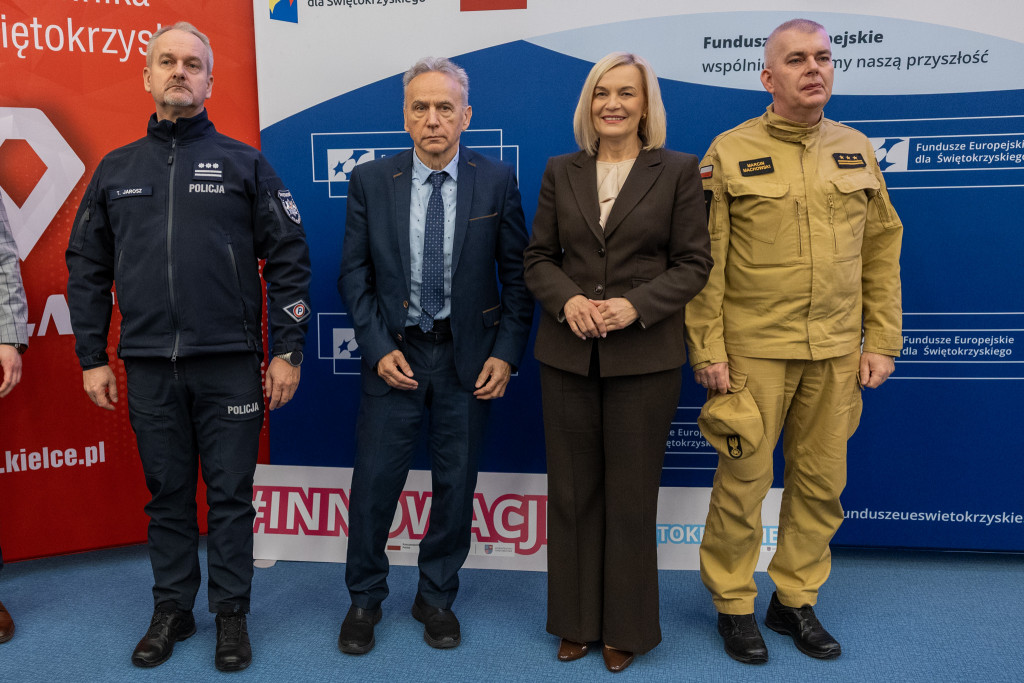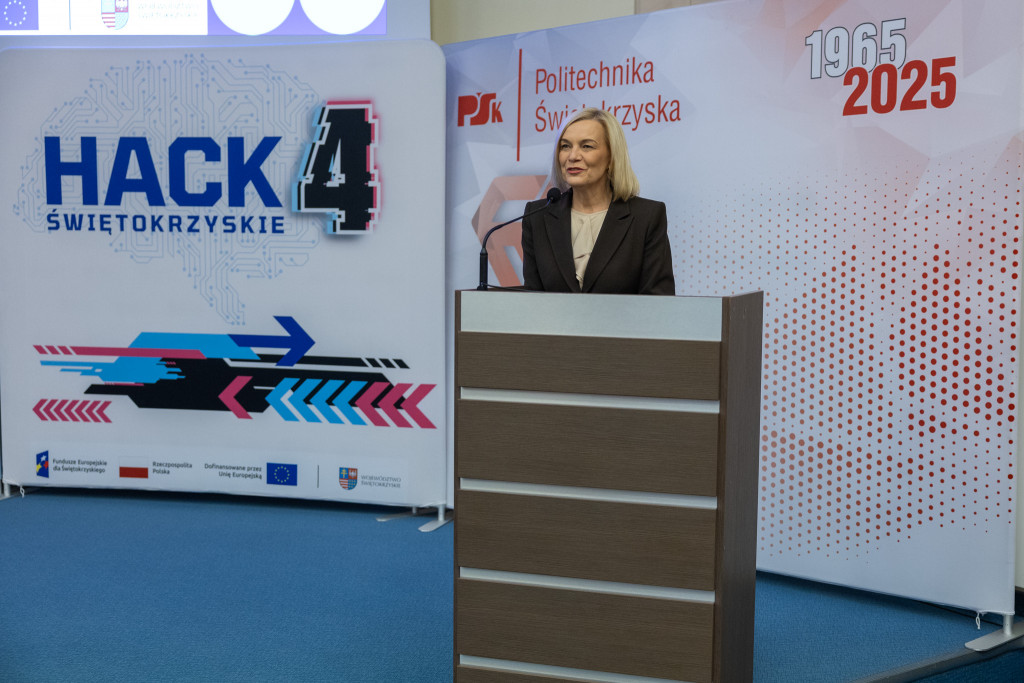 Po całonocnym maratonie programowania, drużyny zakończyły prace, a jury ogłosiło laureatów pierwszej edycji „Hack4Defence Świętokrzyskie”. Dziesięć zespołów złożonych ze studentów rywalizowało na Politechnice Świętokrzyskiej, tworząc innowacyjne aplikacje reagujące na kluczowe scenariusze zagrożeń – od pożaru i powodzi, po ataki hakerskie i incydenty z drona. Najlepsze drużyny odebrały zasłużone nagrody, które wręczyła marszałek Renata Janik. Organizowany przez Urząd Marszałkowski – we współpracy z kluczowymi służbami (Policja, PSP, CBZC) oraz partnerami technologicznymi – konkurs udowodnił, że świętokrzyskie ma potencjał w zakresie nowych technologii, które przyczynią się do zwiększenia bezpieczeństwa regionu. W wydarzeniu wzięli udział także zastępca dyrektora Departamentu Rozwoju Regionalnego Joanna Rudawska, rektor Politechniki Świętokrzyskiej prof. Zbigniew Koruba oraz przedstawiciele służb mundurowych: Komendy Wojewódzki Policji w Kielcach oraz Komendy Wojewódzkiej Państwowej Straży Pożarnej w Kielcach.