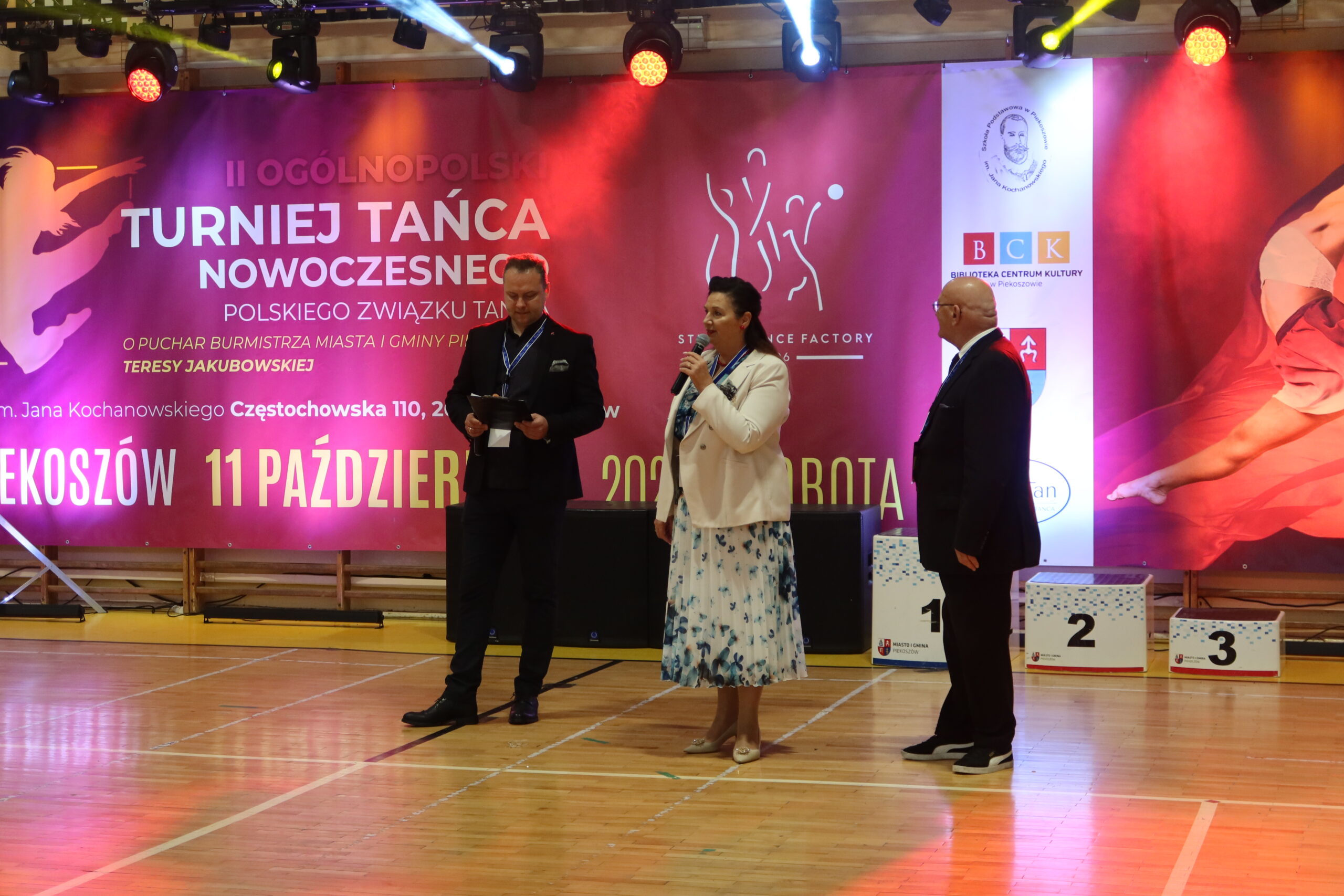 Podczas uroczystego otwarcia i wręczenia nagród burmistrz Piekoszowa Teresa Jakubowska podkreśliła znaczenie wydarzenia zarówno dla młodych tancerzy, jak i całej lokalnej społeczności. – W naszej gminie stawiamy na wszechstronny rozwój dzieci i młodzieży, także ten sportowy. Jeszcze nie tak dawno trudno było sobie wyobrazić, że w Piekoszowie będą odbywać się ogólnopolskie turnieje taneczne, a dziś już po raz drugi gościmy setki utalentowanych tancerzy z całej Polski. Po ubiegłorocznym sukcesie pierwszej edycji i tegorocznym potwierdzam, że to wydarzenie na stałe wpisało się w kalendarz najważniejszych wydarzeń kulturalno-sportowych naszej gminy. Cieszy mnie, że młodzież ma takie pasje i że możemy wspólnie tworzyć przestrzeń do ich rozwoju. Jestem też niezwykle dumna, że formacja z Piekoszowa, przygotowywana przez trenerkę Joannę Maciejczyk, już wkrótce będzie reprezentować Polskę podczas Mistrzostw Świata. To ogromny powód do radości dla nas wszystkich – powiedziała burmistrz Teresa Jakubowska.