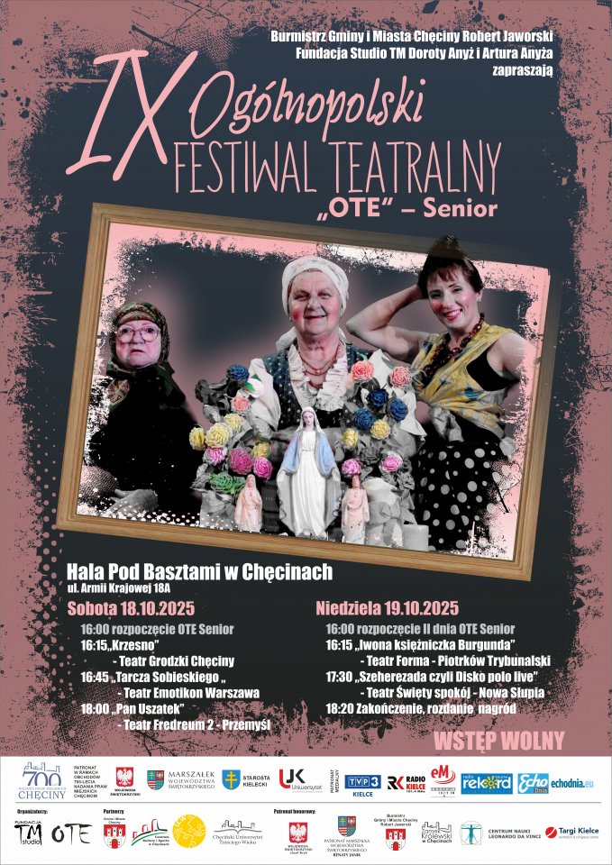Strona głównaKulturaIX Ogólnopolski Festiwal Teatralny ˝OTE – Senior˝ w Chęcinach! Kultura IX Ogólnopolski Festiwal Teatralny ˝OTE – Senior˝ w Chęcinach! CKinfo.pl 17 października 2025 FacebookTwitterWhatsAppTelegram Zobacz CKinfo.pl - 14 października 2025Świętokrzyskie w Biegu! Delegacja regionu na Polish Run 2025 w Brukseli! CKinfo.pl - 17 października 2025Posiedzenie Komisji Rolnictwa i Ochrony Środowiska CKinfo.pl - 17 października 2025Spacer Śladami Żydów w Chęcinach – X edycja CKinfo.pl - 14 października 2025Akcja profilaktyczna z okazji Światowego Dnia Walki z Rakiem Piersi CKinfo.pl - 14 października 2025Podpisano umowę na remont drogi wojewódzkiej w powiecie staszowskim CKinfo.pl - 17 października 2025Wykryto kolejne ogniska afrykańskiego pomoru świń (ASF) u dzików na terenie województwa świętokrzyskiego. Agnieszka Olech - 14 października 2025Czujniki czadu trafiły do mieszkańców gminy. Druhowie z Rykoszyna zadbali też o pierwszą pomoc [WIDEO] GminaGmina ChęcinyMiejscowośćChęcinyŹRÓDŁOGmina i Miasto Checiny TagichęcinyFestiwal teatralnykulturaOTE Seniorseniorzysztukateatrwydarzenia Udział FacebookTwitterWhatsAppTelegram Poprzedni artykułDzień Edukacji Narodowej w Gminie ChęcinyNastępny artykułLiterackie Chęciny — podróże, emocje i wyobraźnia. Trzy, fascynujące spotkania z pisarzami, którzy inspirują do odkrywania świata na nowo Aktualności GospodarkaCKinfo.pl - 17 października 2025Wsparcie osób niepełnosprawnych W Starostwie Powiatowym w Kielcach odbyło się uroczyste podpisanie umów wspierających rehabilitację zawodową osób z niepełnosprawnościami,... Gospodarka Zmiana organizacji ruchu- Remont drogi wewnętrznej dz. nr ewid. 94/1, 94/2, 133/19 Podzamcze Gaj- km 0+180 – 1+279˝. CKinfo.pl - 17 października 2025 Aktualności ZBIÓRKA ODPADÓW WIELKOGABARYTOWYCH CKinfo.pl - 17 października 2025 Aktualności zmiana organizacji ruchu w Nowinach CKinfo.pl - 17 października 2025 Aktualności ZAWIADOMIENIE CKinfo.pl - 17 października 2025 Polecamy Słowa, które tworzą obrazy. Spotkanie z wyjątkową poezją mieszkanek Gminy i Miasta Chęciny Kultura CKinfo.pl - 17 października 2025 Spacer Śladami Żydów w Chęcinach – X edycja Kultura CKinfo.pl - 17 października 2025 Po zmroku historia znów ożyła! VIII edycja Nocnego Zwiedzania Zamku za nami Kultura CKinfo.pl - 17 października 2025 Pierwsze zajęcia ceramiczne i plastyczne w Samorządowym Centrum Kultury i Bibliotece w Morawicy Kultura CKinfo.pl - 17 października 2025