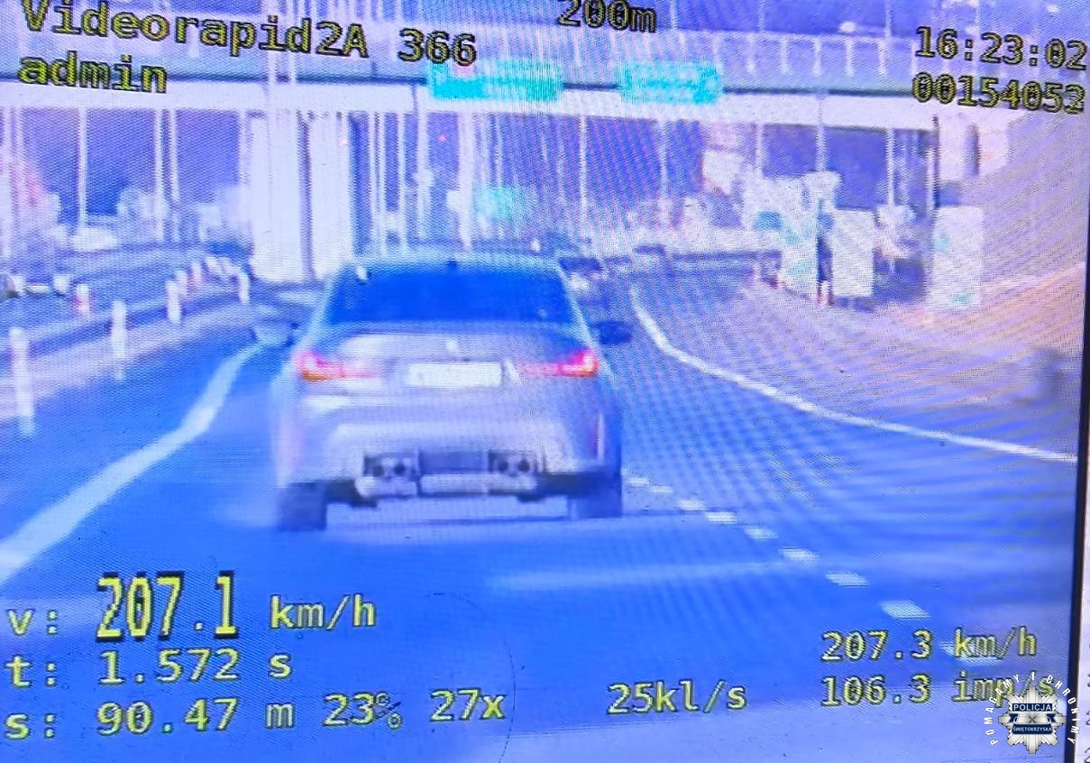 Tego samego dnia tuż po godzinie 16:00 na trasie ekspresowej S7 w miejscowości Jędrzejów policjanci zwrócili uwagę na samochód marki BMW. Mundurowi natychmiast ruszyli za pojazdem. Jak się okazało policyjny wideorejestrator odnotował prędkość 208 km/h w miejscu, gdzie kierowca maksymalnie powinien jechać 120 km/h. Po jego zatrzymaniu okazało się, że za kierownicą osobówki siedzi 49-letni mieszkaniec województwa mazowieckiego. Na mężczyznę policjanci nałożyli mandat karny w wysokości 2500 złotych oraz 15 punktów karnych.