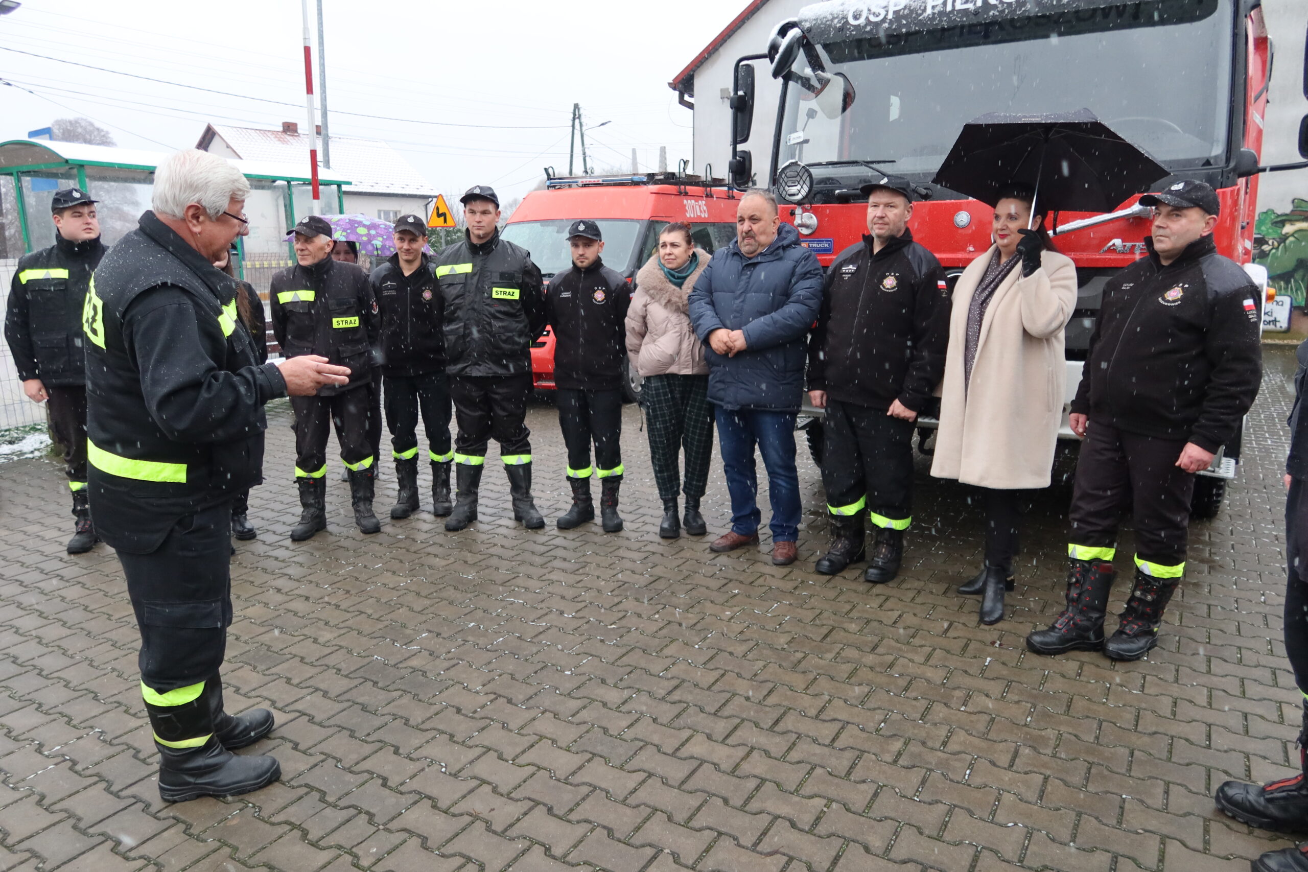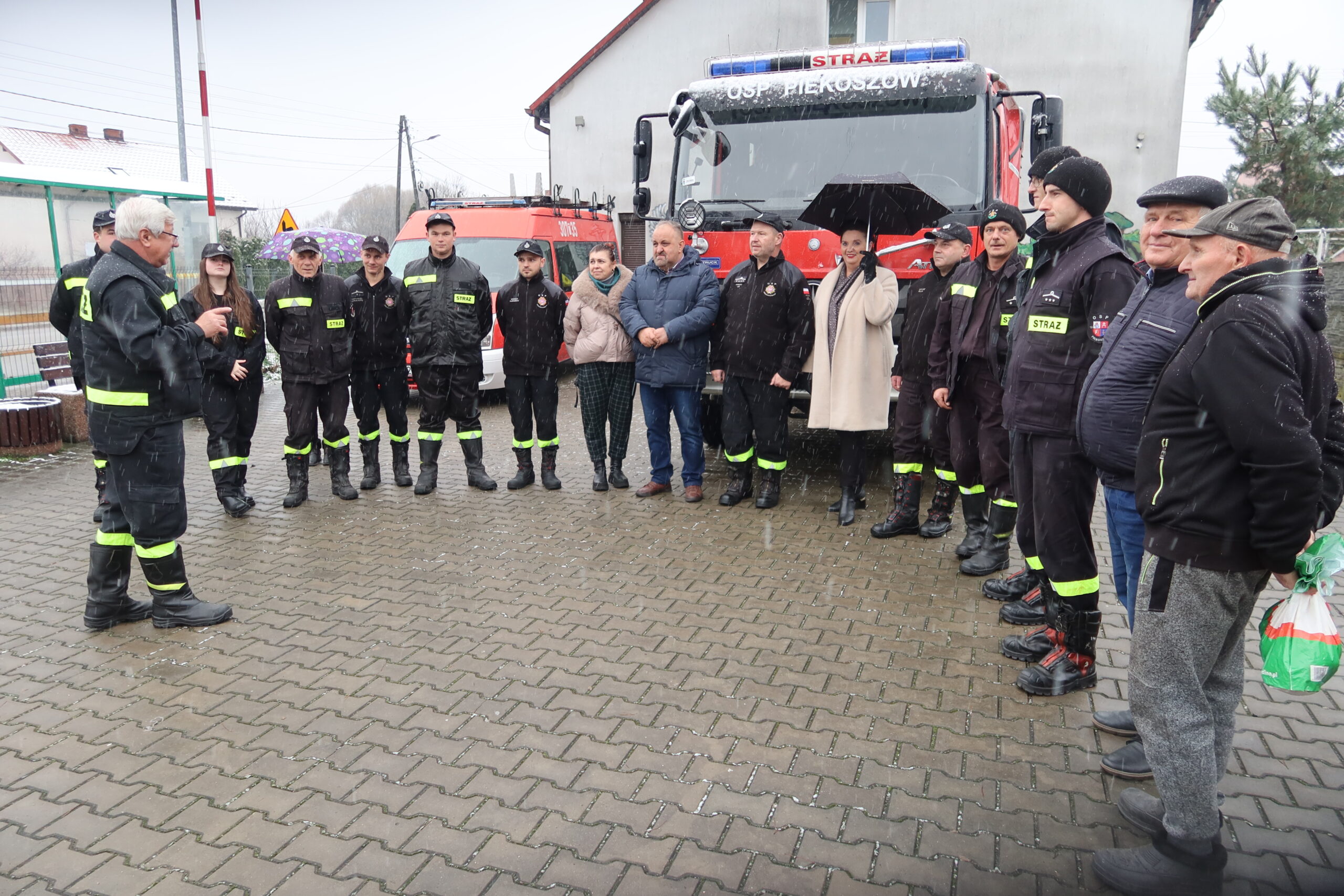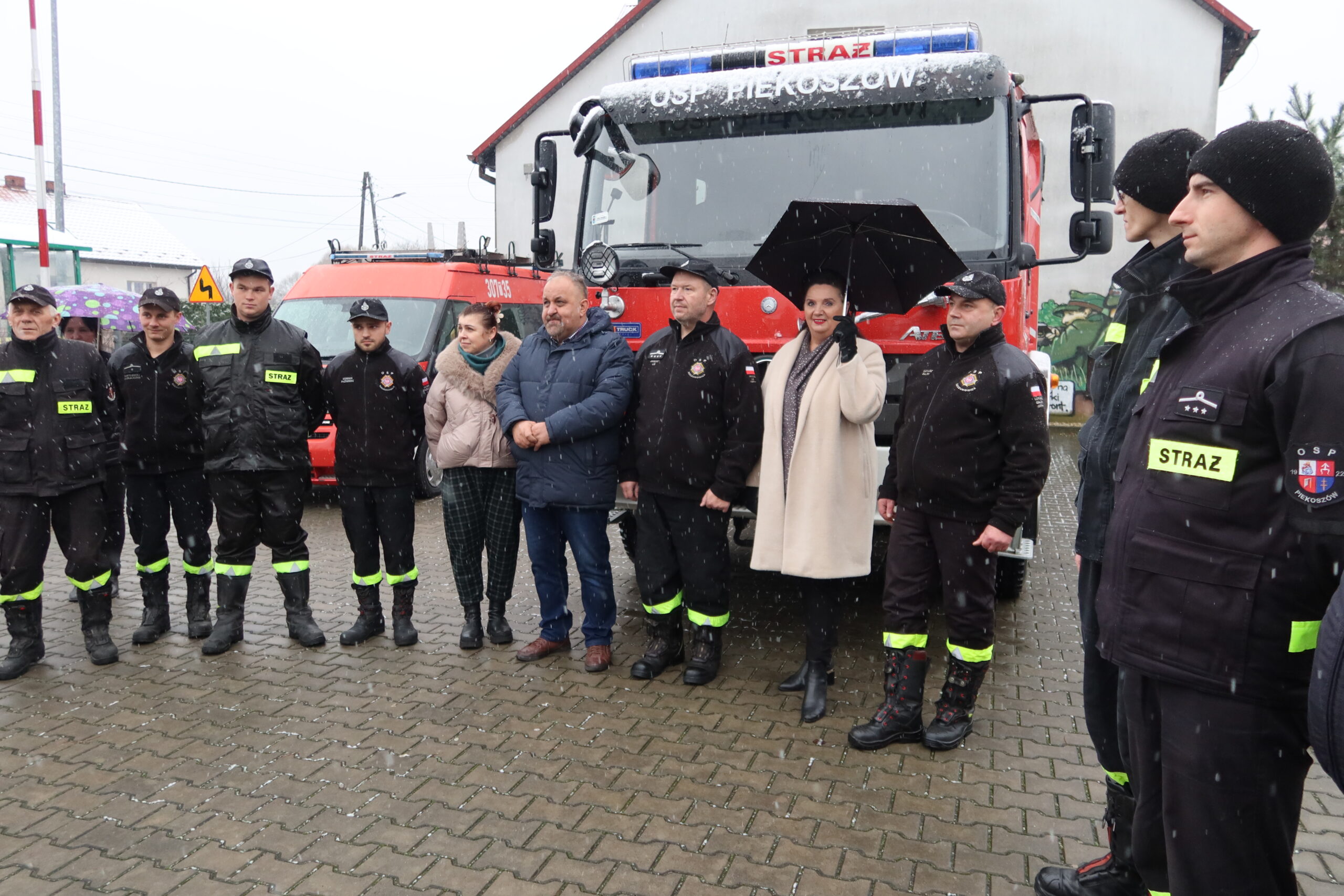 Podczas oficjalnego przekazania naczelnik OSP Piekoszów Piotr Sorbian wręczył dowód rejestracyjny prezesowi OSP Szczukowice Januszowi Lisowi, natomiast kluczyki do pojazdu przekazał zastępca naczelnika OSP Piekoszów Tomasz Smolarczyk na ręce naczelnika OSP Szczukowice Łukasza Gajka.