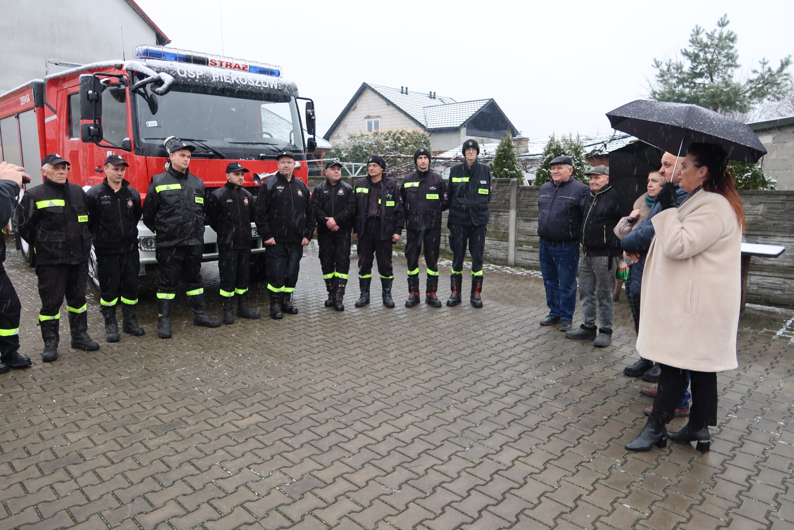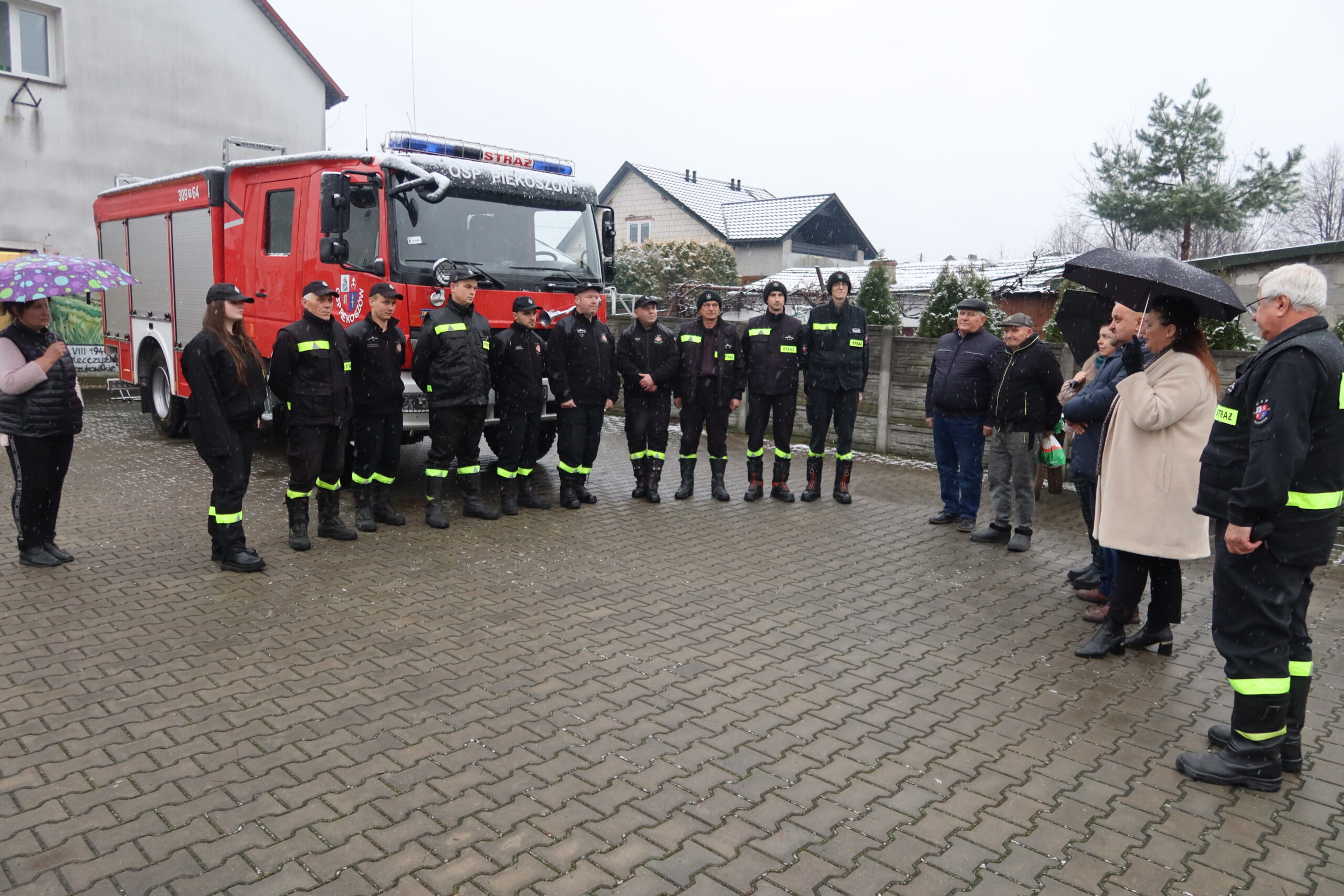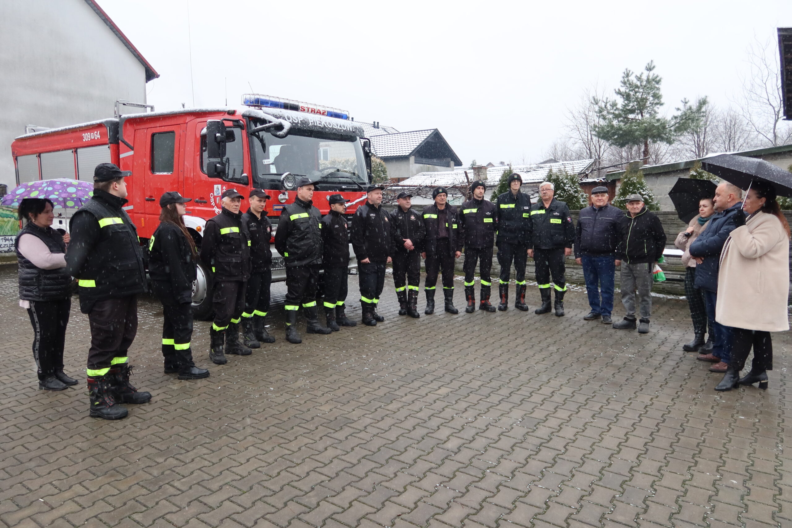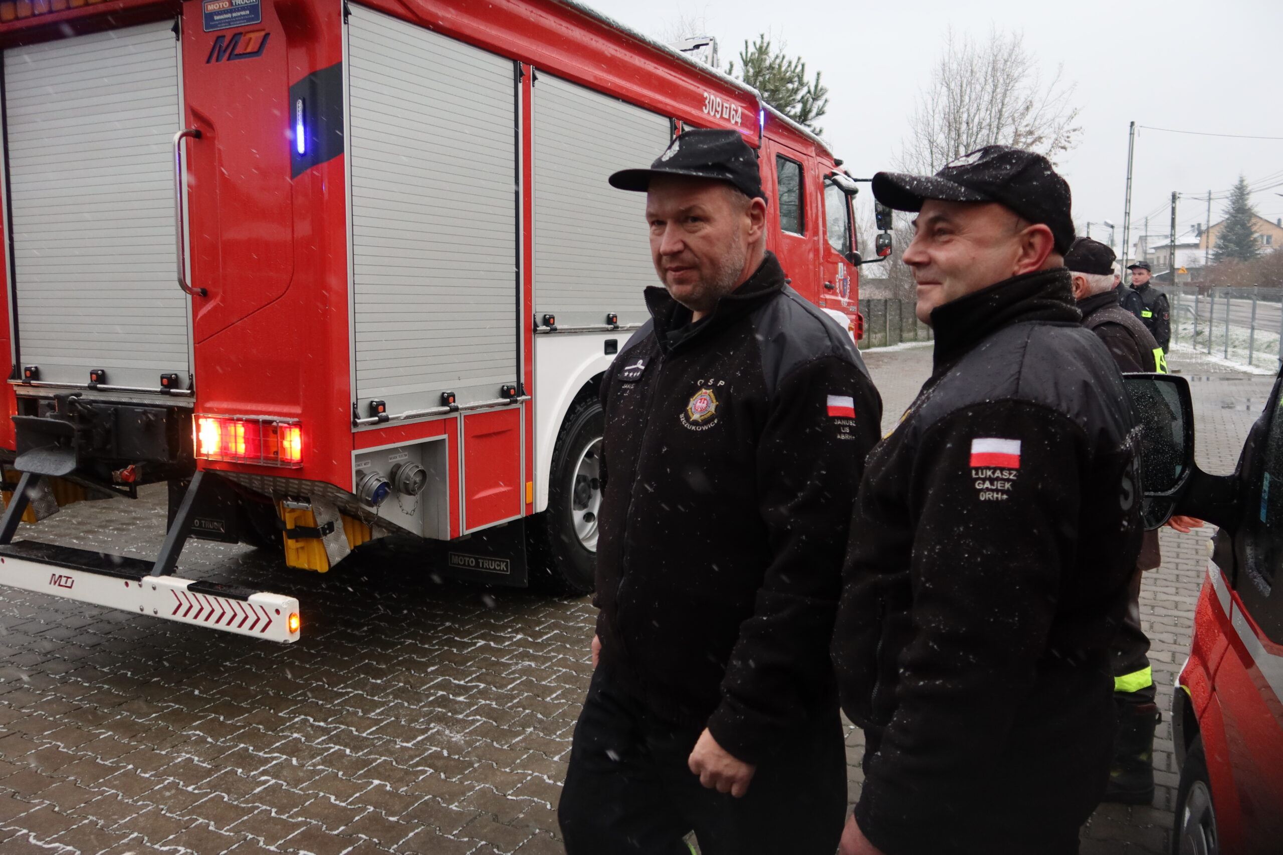 Podczas oficjalnego przekazania naczelnik OSP Piekoszów Piotr Sorbian wręczył dowód rejestracyjny prezesowi OSP Szczukowice Januszowi Lisowi, natomiast kluczyki do pojazdu przekazał zastępca naczelnika OSP Piekoszów Tomasz Smolarczyk na ręce naczelnika OSP Szczukowice Łukasza Gajka.